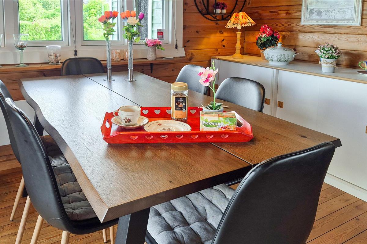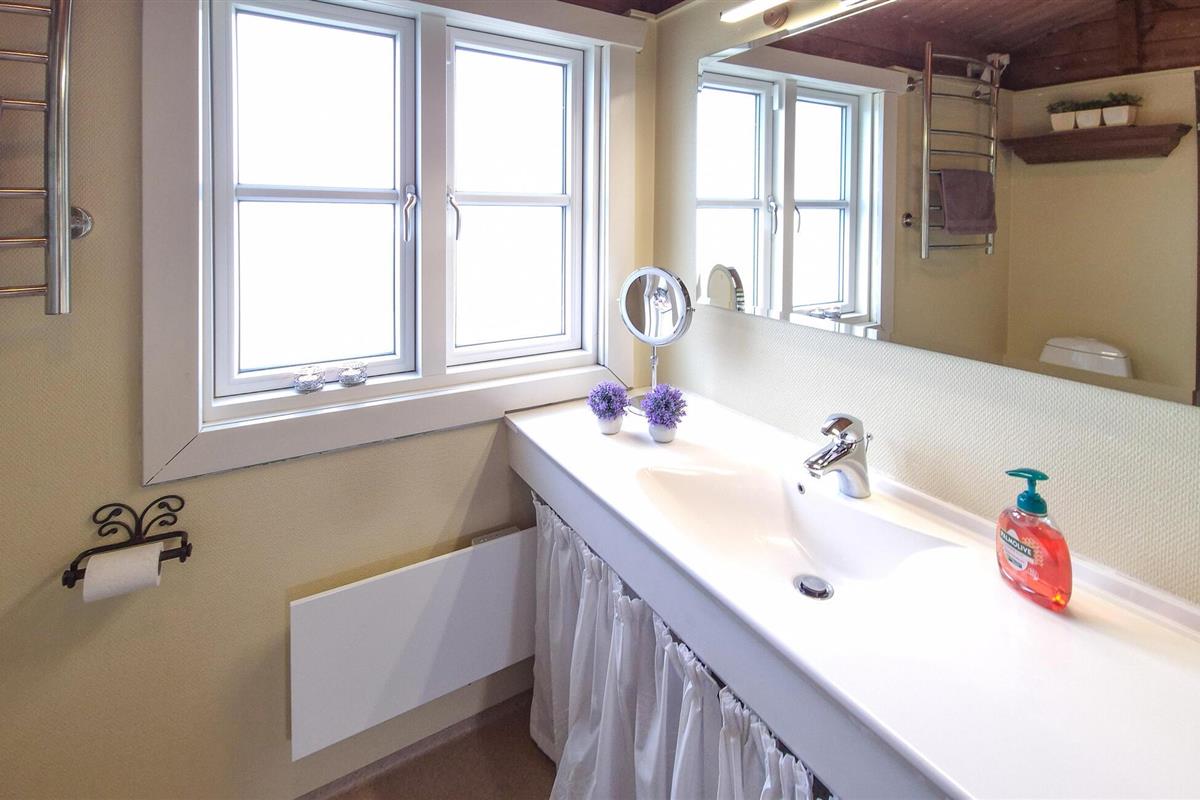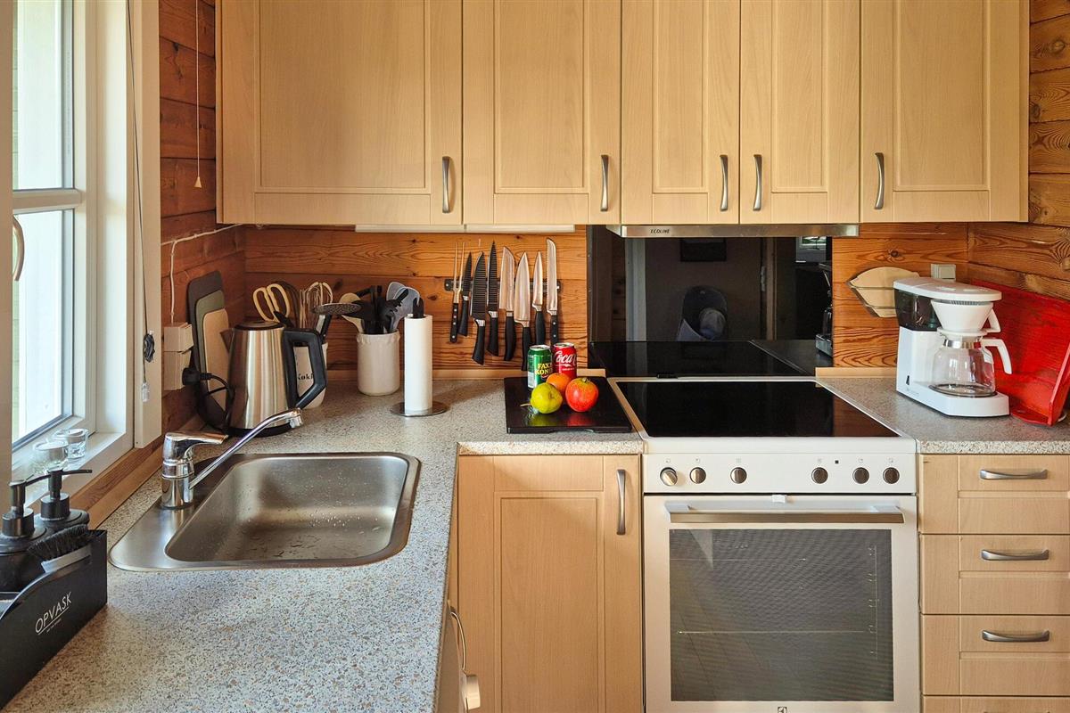 Verheug u op een verblijf in dit vakantiehuis in een prachtige omgeving niet ver van het fjord. Het huis is licht en zeer mooi ingericht met houten lambrisering op de muren en het plafond, en u kunt zich hier helemaal thuis voelen. In de woonkamer kunt u samen eten aan de eettafel met uitzicht op het kleine landgoed of 's avonds spelletjes spelen in de zithoek. Vanuit de woonkamer heeft u toegang tot het deels overdekte terras met uitzicht op het fjord en een barbecue, waar u bij zonnig weer lekker kunt ontbijten en 's avonds de dag kunt afsluiten.