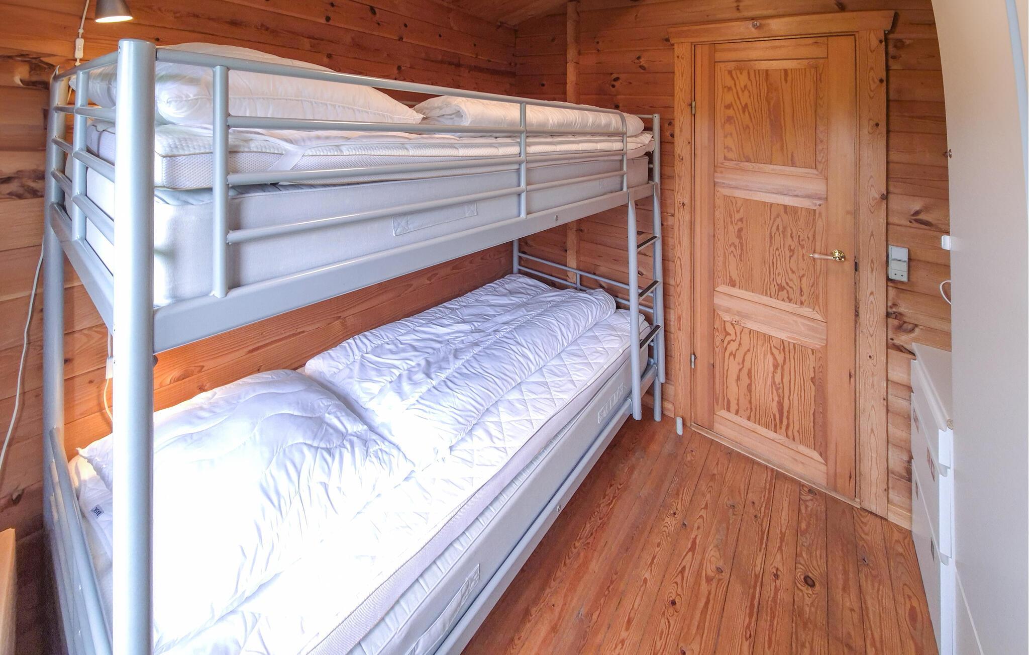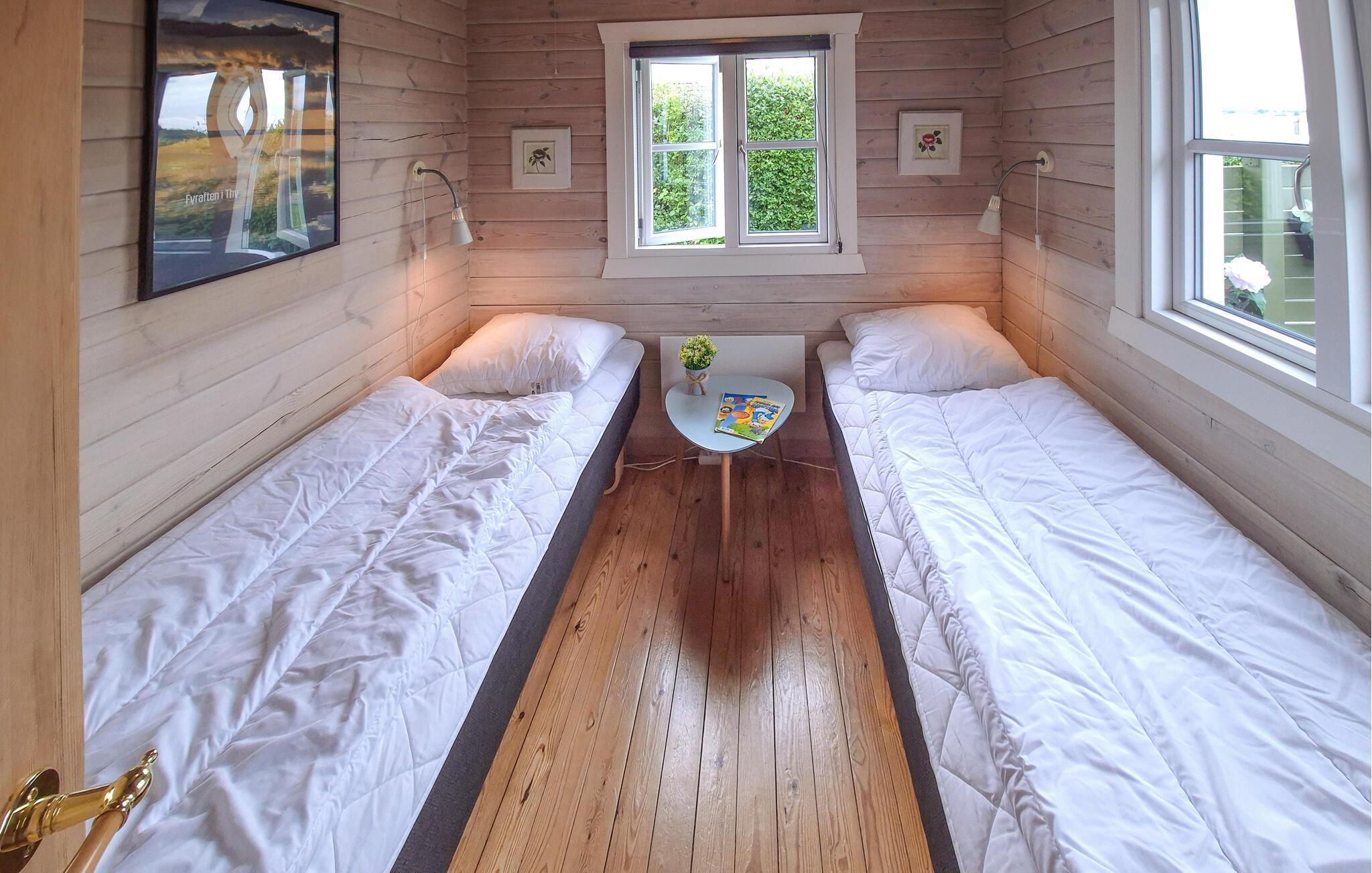 Dit vakantiehuis is zowel geschikt voor een fijne vakantie in de winter als in de zomer. Als u hier in de zomer verblijft, bent u dicht bij het strand, en als u hier in de winter verblijft, kunt u het uzelf comfortabel maken in dit houten huis na een wandeling langs de fjord en uzelf verwarmen bij de open haard.