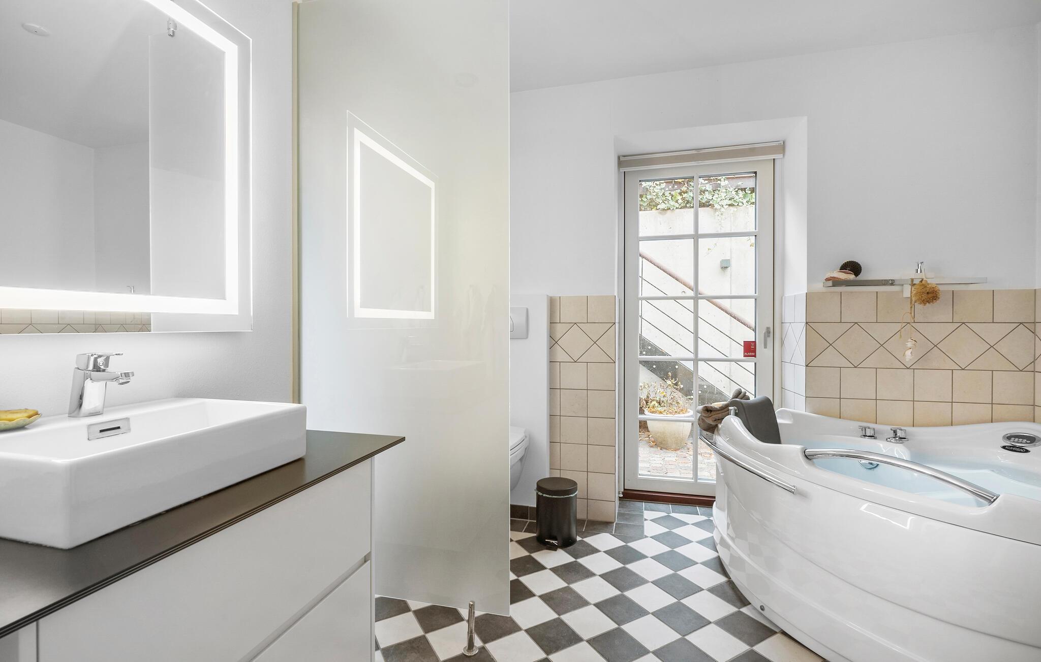 Badkamer (nr. 1) - Toilet: warm en koud water. Douche en ligbad
