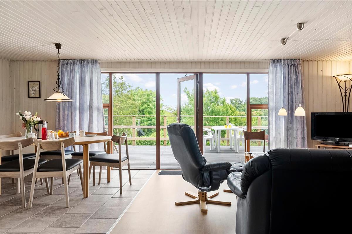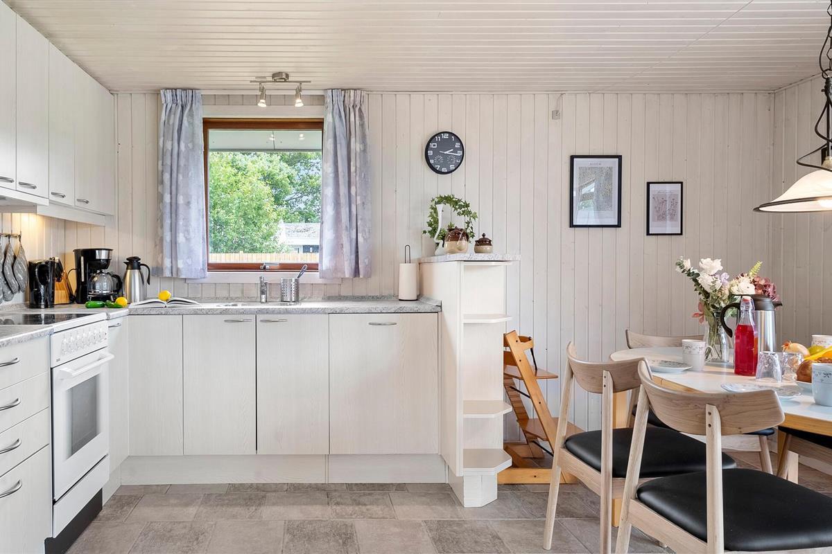 Dit huis, prachtig gelegen aan de Limfjord, nodigt uit tot een heerlijke onderbreking van het dagelijks leven. Ramen van vloer tot plafond, warm hout en een houtkachel creëren een gezellige sfeer waarin je tot rust kunt komen. Leun achterover op de comfortabele bank en blader door een goed boek of kom samen voor een avondje televisie. Bereid je favoriete gerechten in de moderne keuken en serveer ze met een glas wijn.