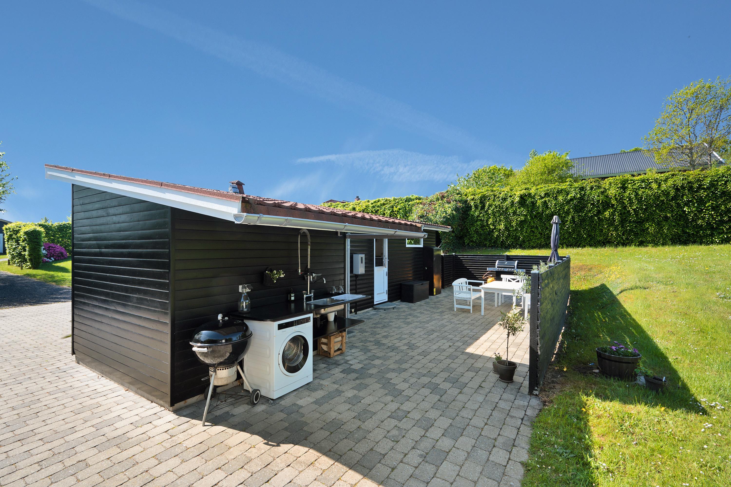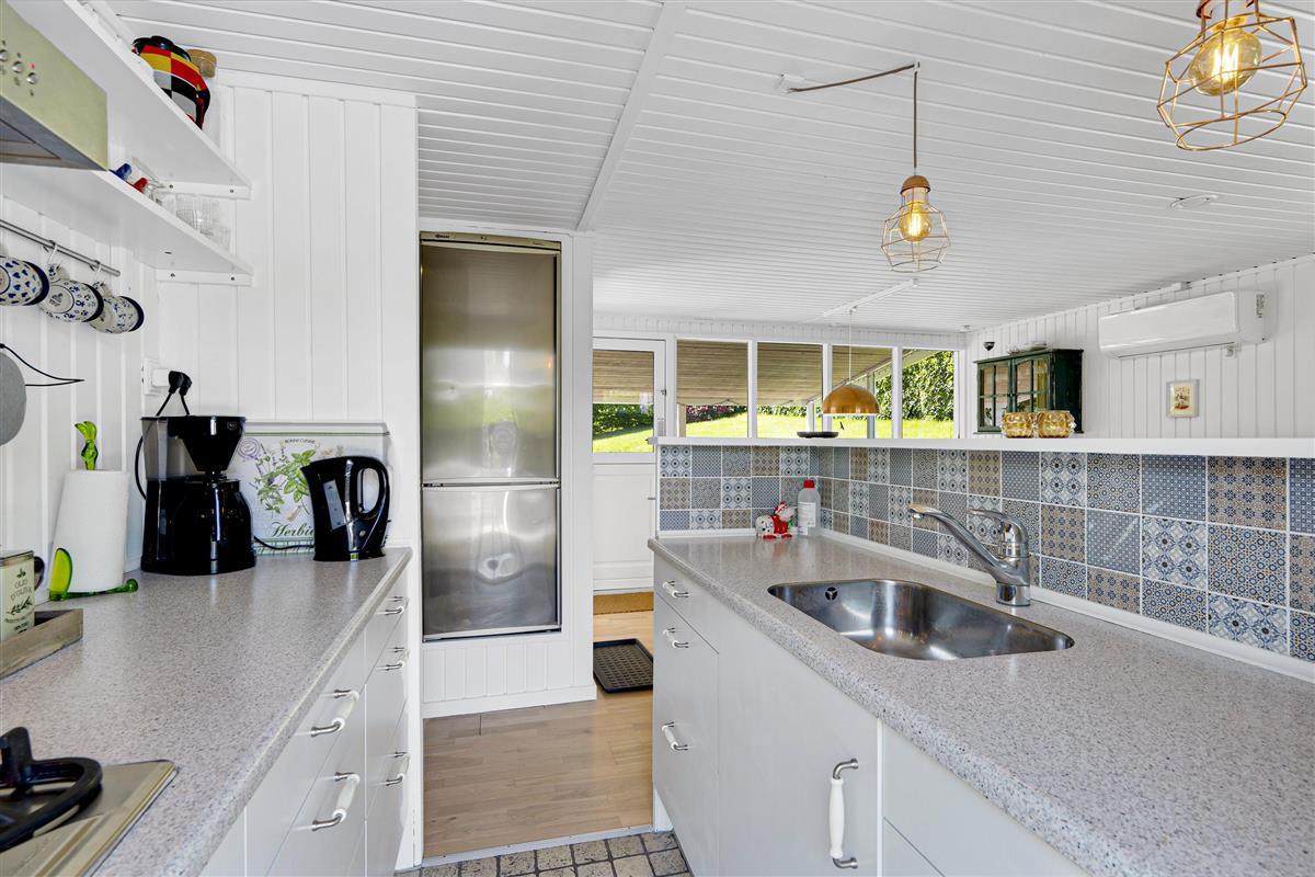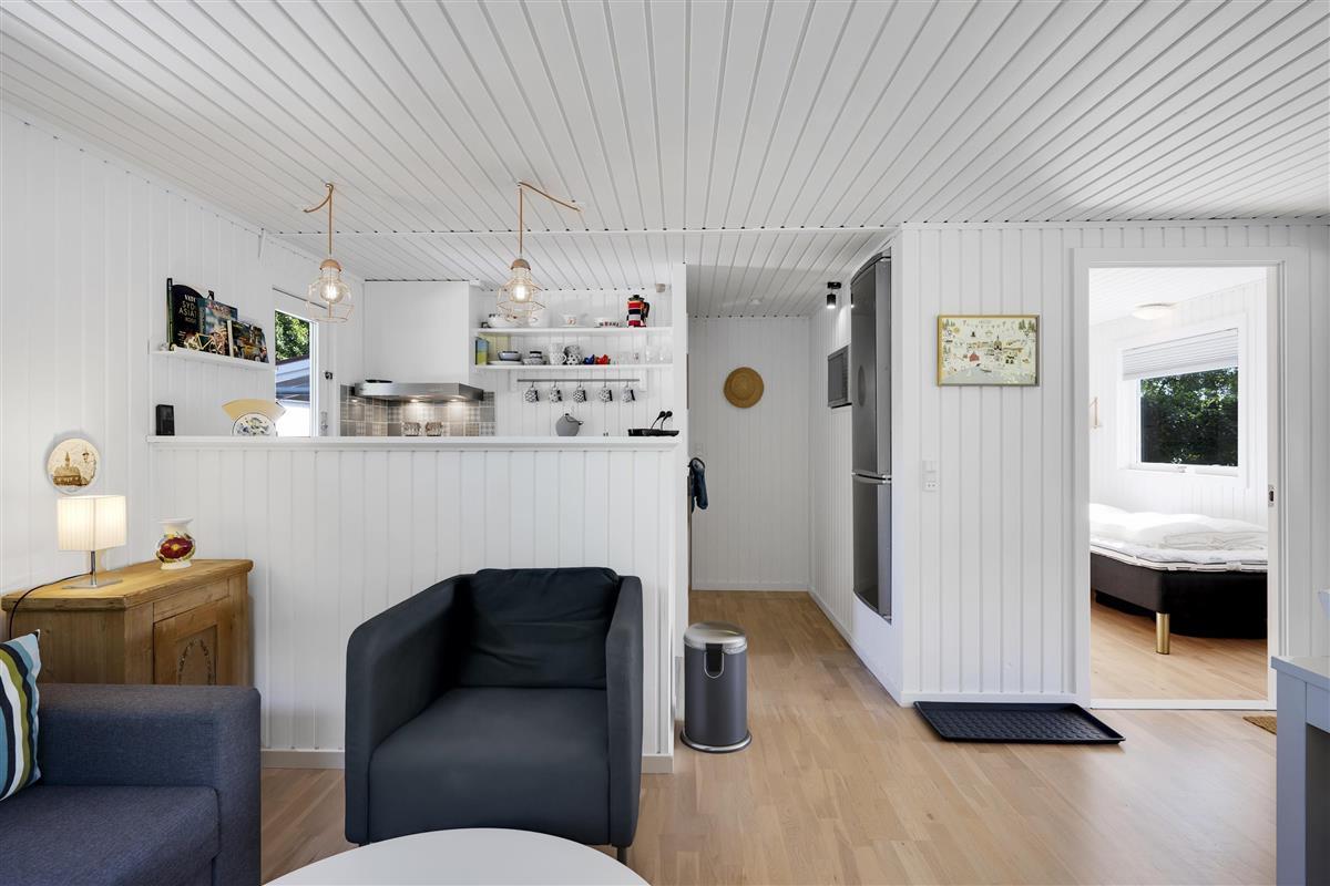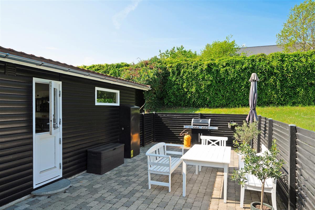 This small but well-appointed and renovated holiday home is located on a natural plot a few hundred meters from Holme Beach. Here, you'll find a beach house in traditional style with genuine coziness and atmosphere. The house features a lovely, covered terrace/conservatory as well as a large, secluded tiled terrace with good garden furniture, sun loungers, parasol, large gas grill, and a covered fish cleaning area.