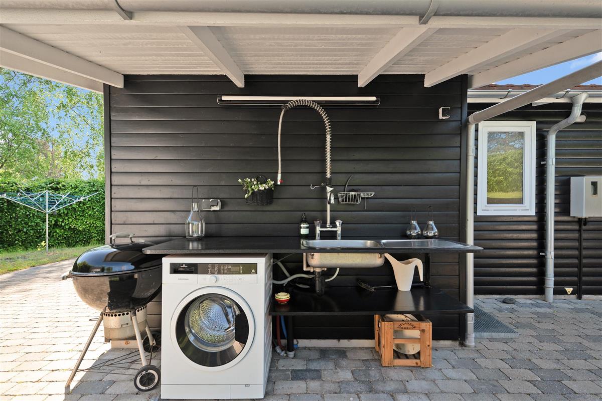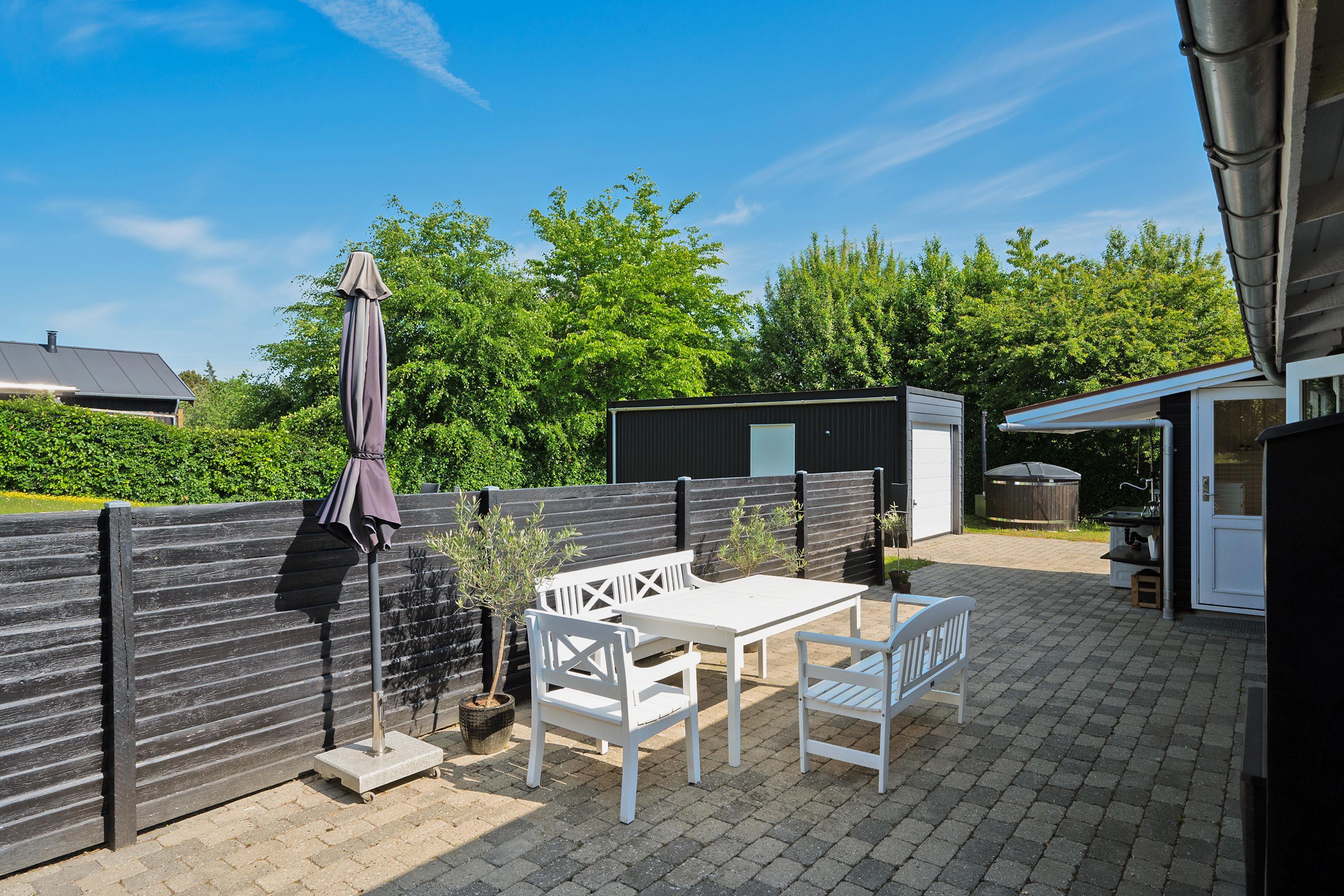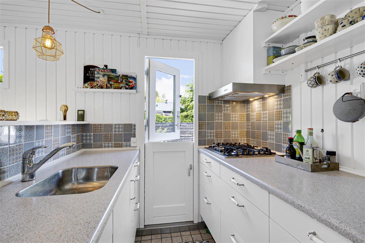 This small but well-appointed and renovated holiday home is located on a natural plot a few hundred meters from Holme Beach. Here, you'll find a beach house in traditional style with genuine coziness and atmosphere. The house features a lovely, covered terrace/conservatory as well as a large, secluded tiled terrace with good garden furniture, sun loungers, parasol, large gas grill, and a covered fish cleaning area.