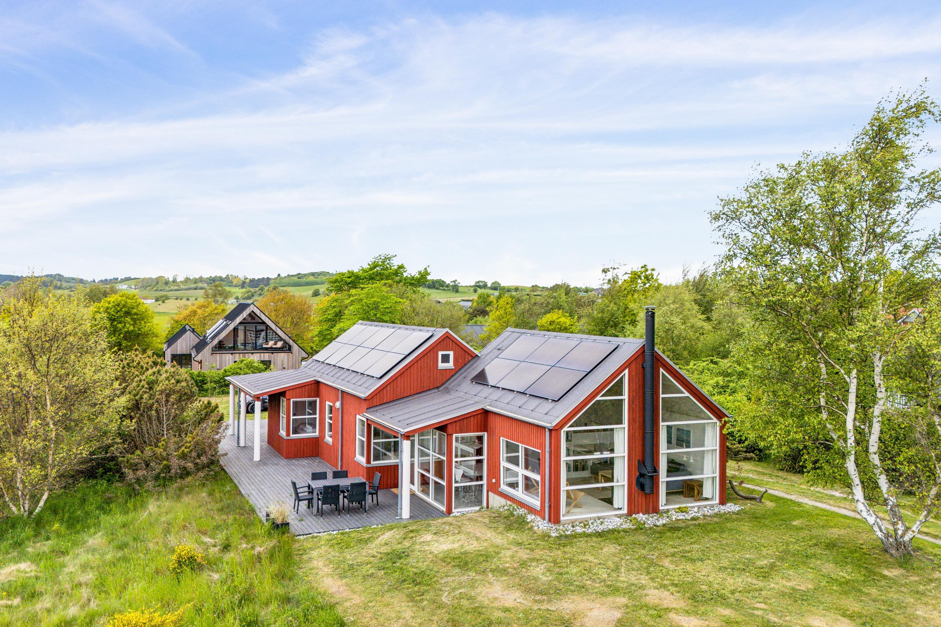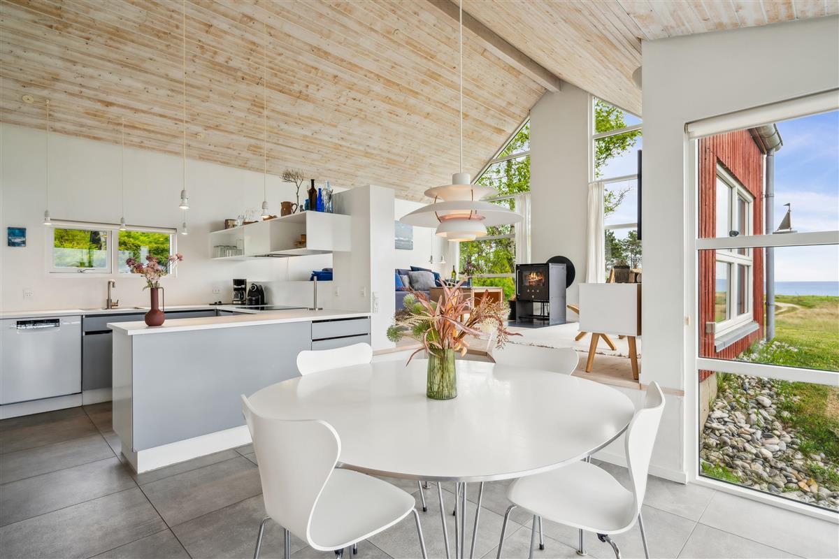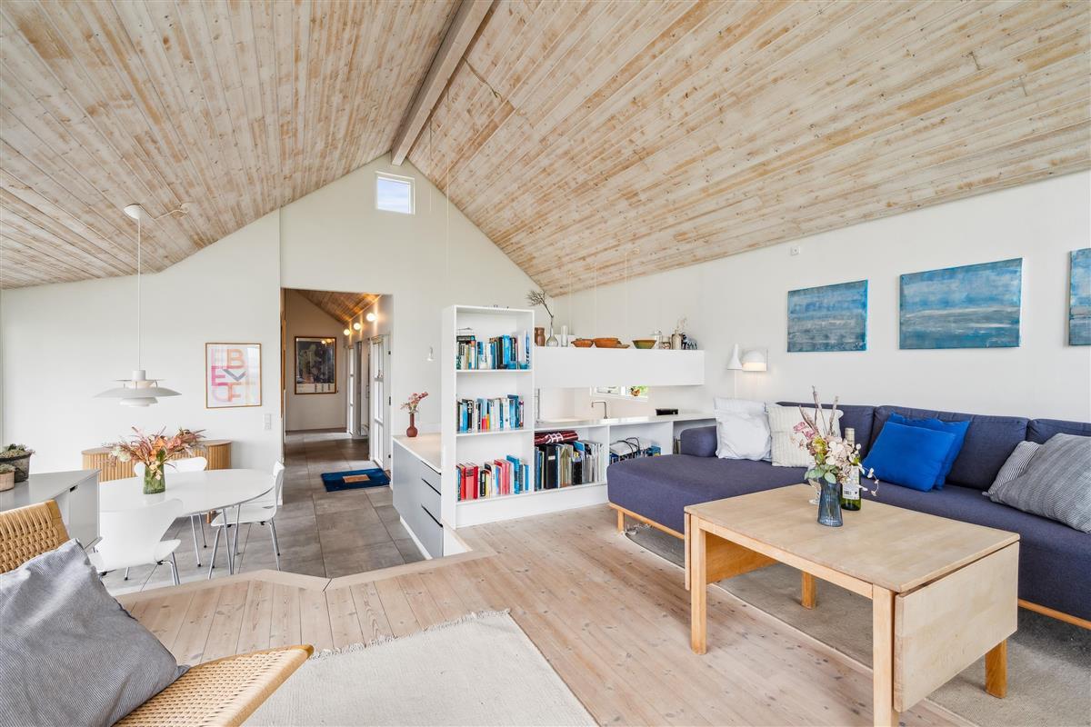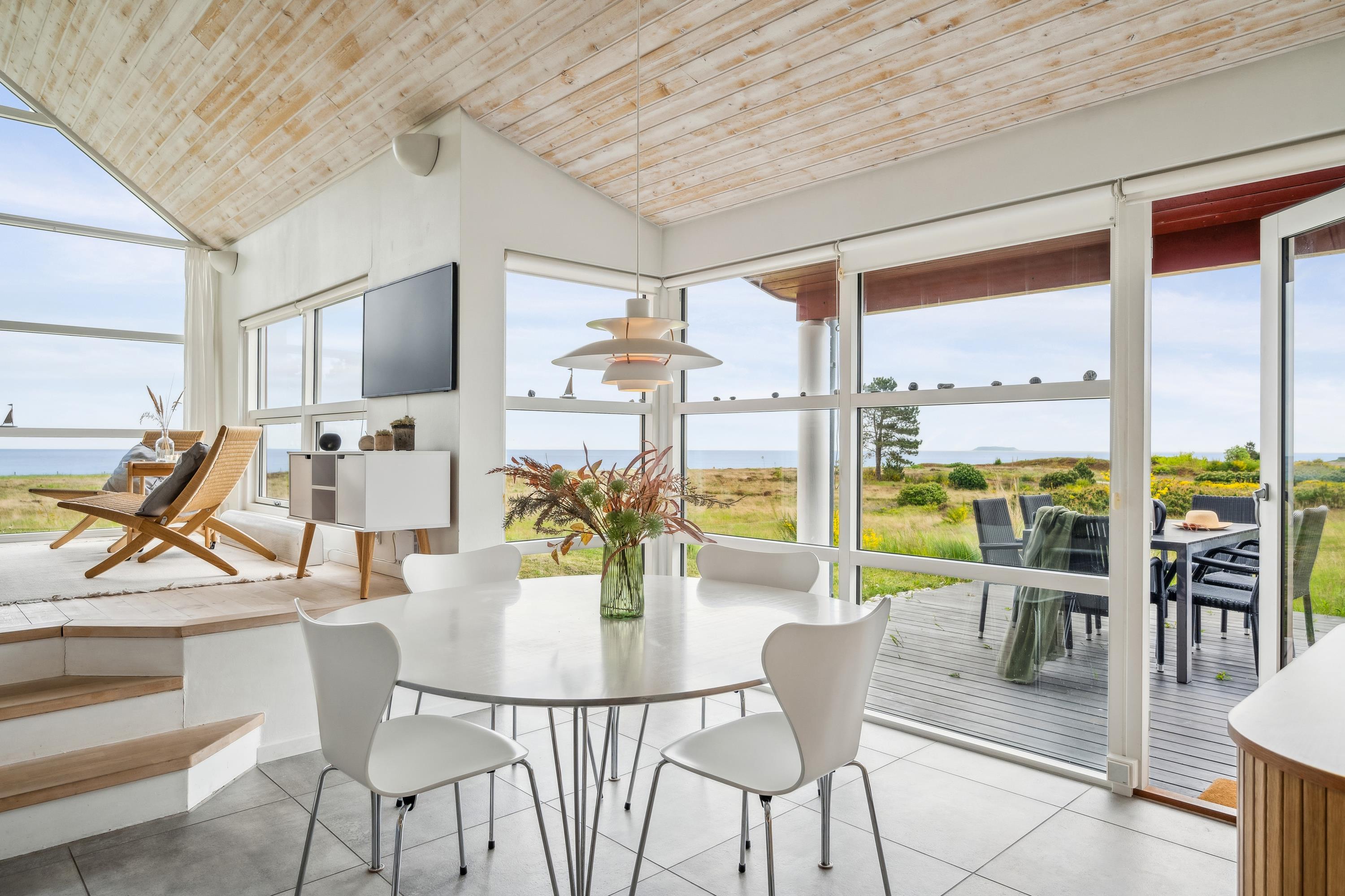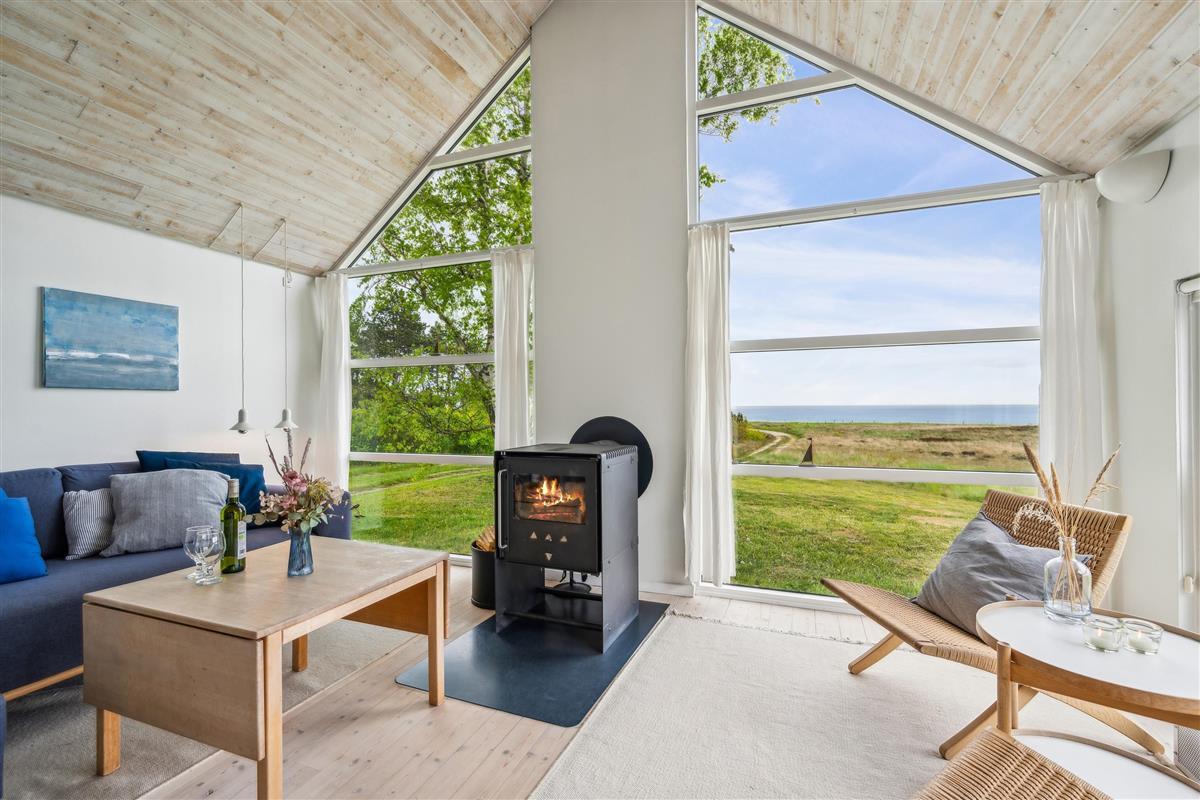 A truly delightful summer house located in the first row from the sea with panoramic views of the Kattegat on a secluded and spacious natural plot in undisturbed surroundings. Partially covered terrace with garden furniture and grill. The house is furnished with a bright, friendly, and tasteful décor on staggered levels with stairs from the kitchen to the living room. From the living room, there is a view of the sea. Cozy living room with wood-burning stove, satellite TV, and stereo system with CD. Lovely, spacious kitchen with ceramic stove, refrigerator with a small freezer, and dishwasher. Beautiful bathroom with shower, underfloor heating, sauna, and washing machine. The house's sleeping accommodations are distributed among 3 bedrooms: 2 with double beds and 1 with bunk beds. For the little holiday guests, a high chair is available. Note: The house has a charging station for electric cars.