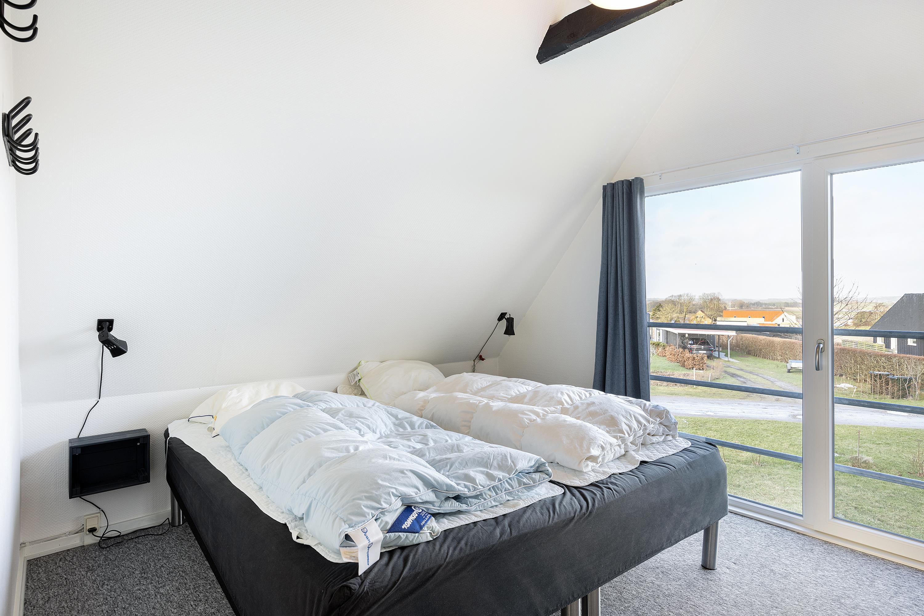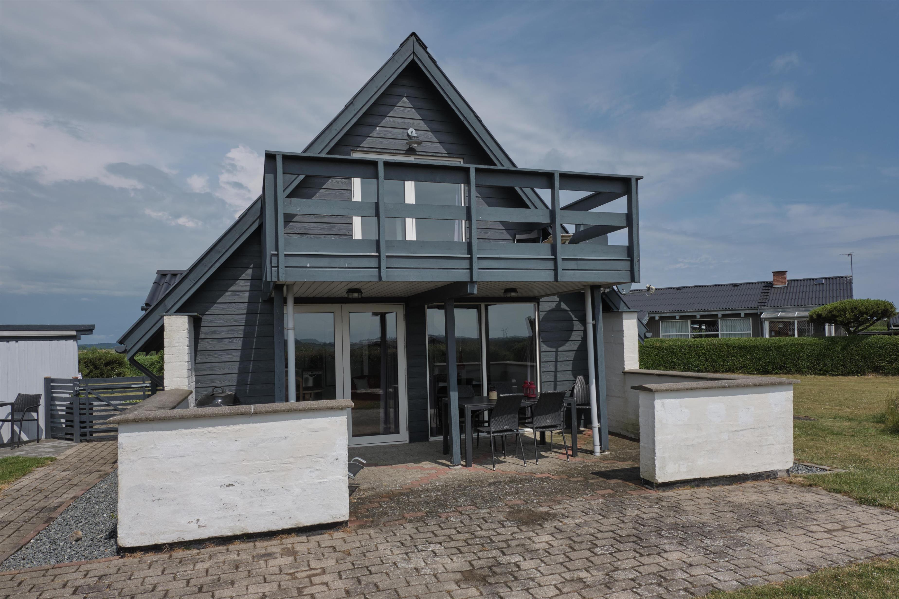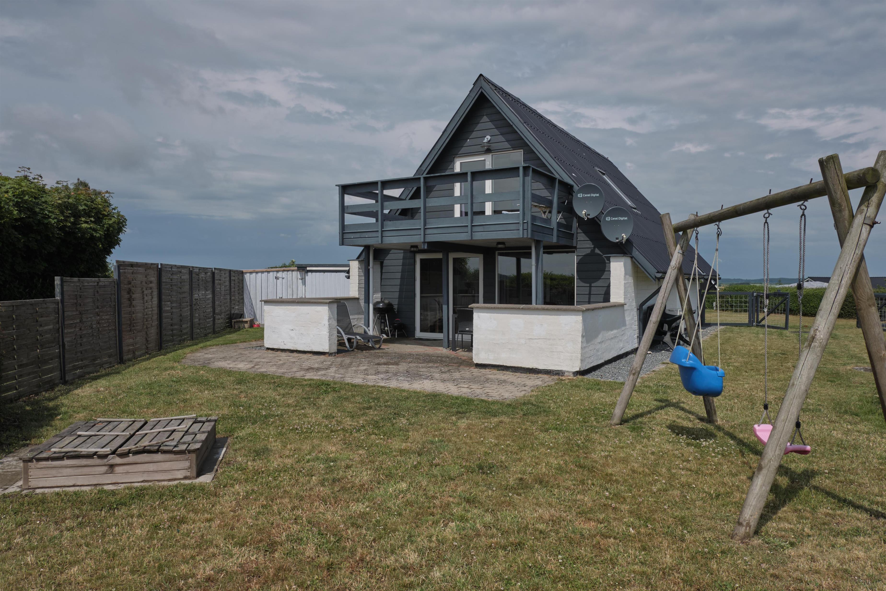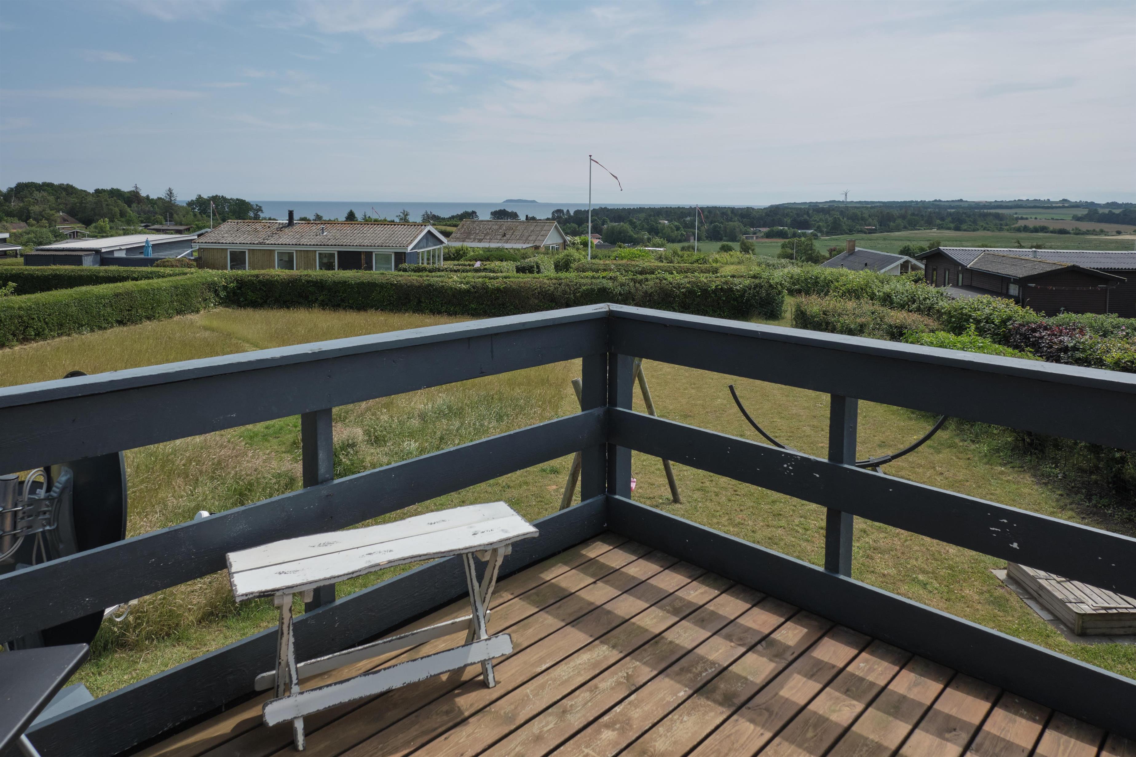 On a partially enclosed natural lot with a wonderful view over the Kattegat, Hjelm, and Boeslum, this lovely older well-maintained holiday home is situated in 2 floors with a partially covered terrace with garden furniture and a grill, as well as a balcony on the 1st floor. Cozy living room with satellite TV and radio. Lovely functional kitchen with ceramic stove, refrigerator with small freezer, microwave, and dishwasher. Good bathroom with shower cubicle, underfloor heating, and sauna as well as washing machine and tumble dryer. The sleeping accommodations of the house are distributed across 4 rooms: 3 with double beds and 1 with single beds. For the little holiday guests, there is a high chair.