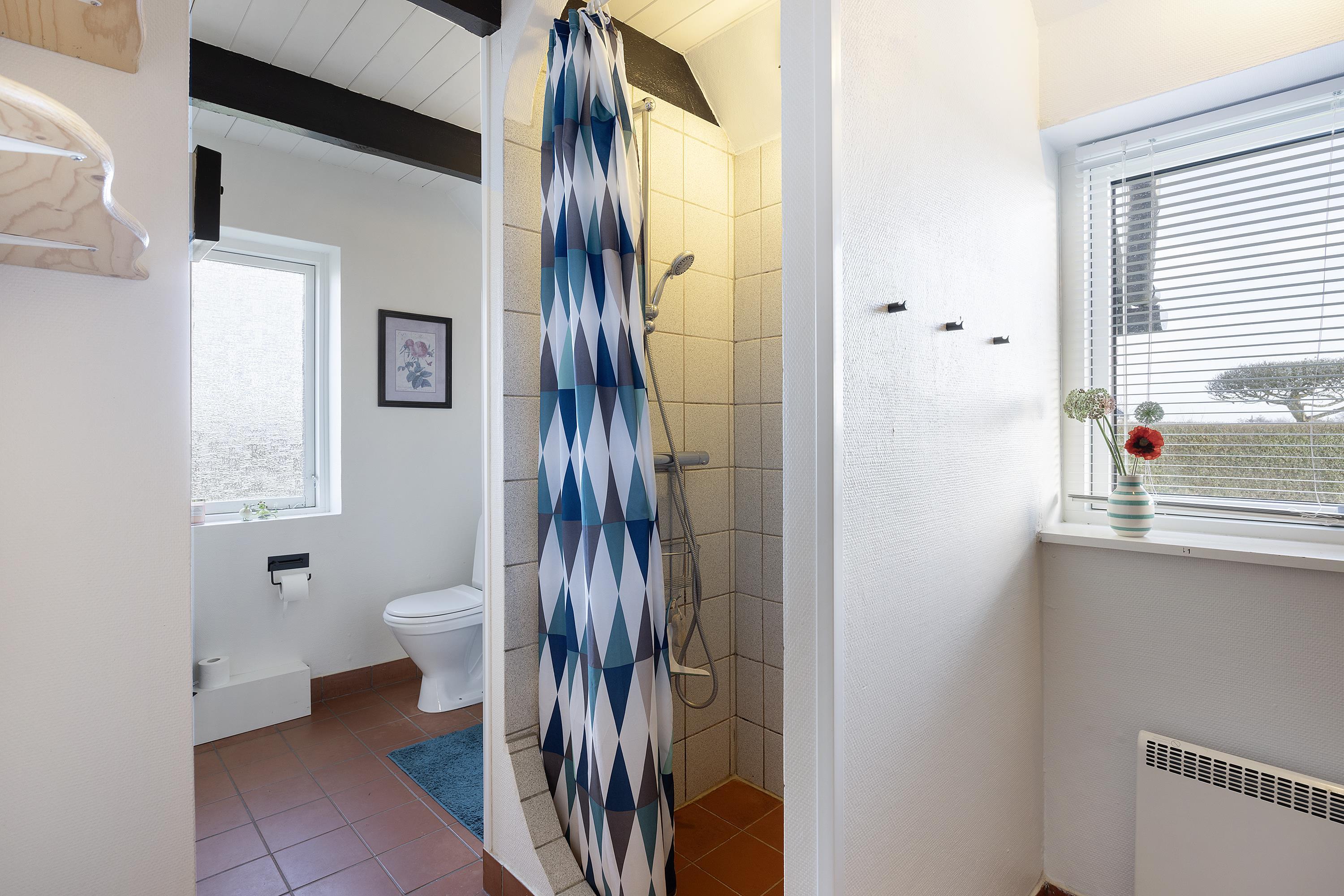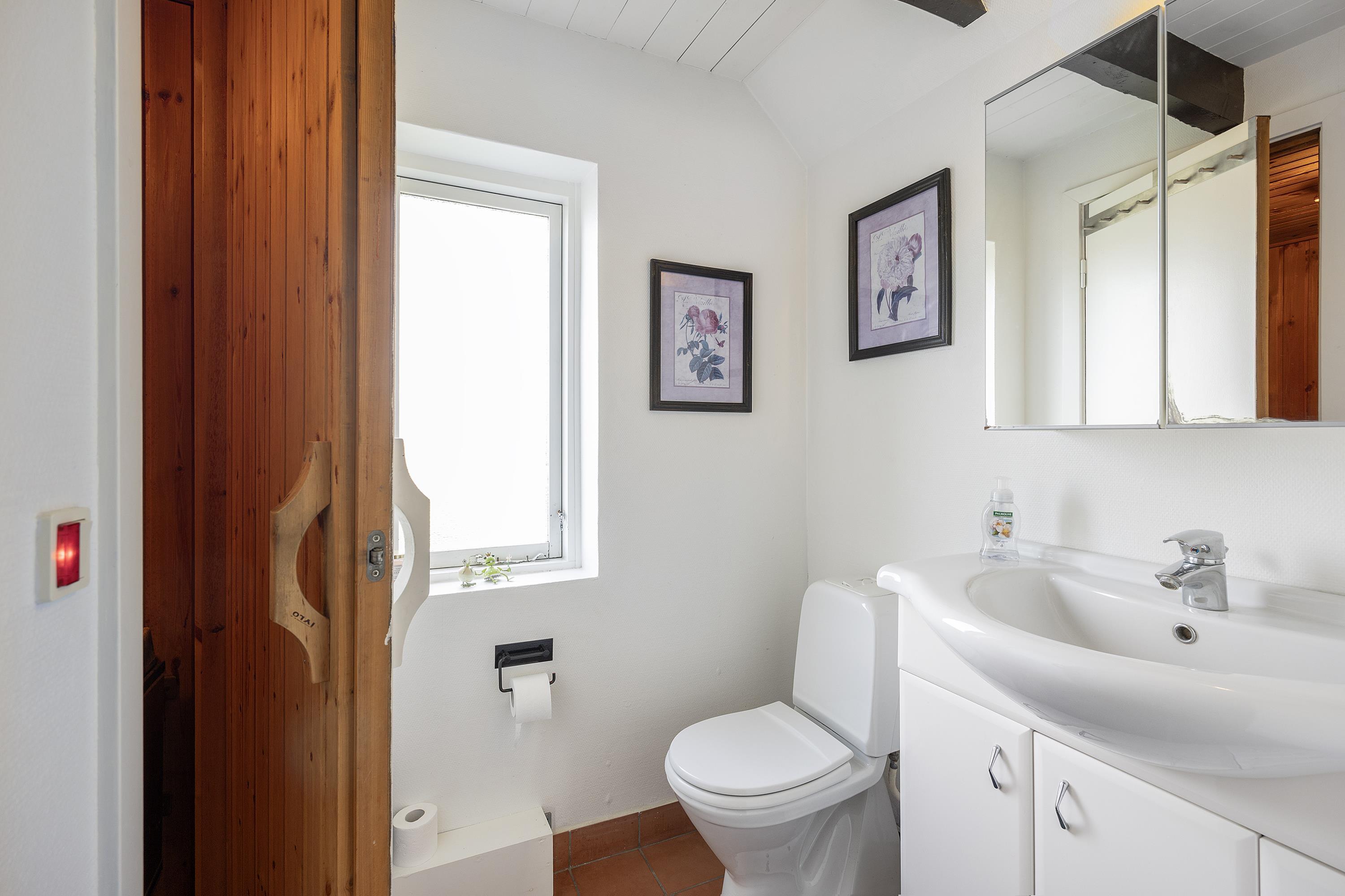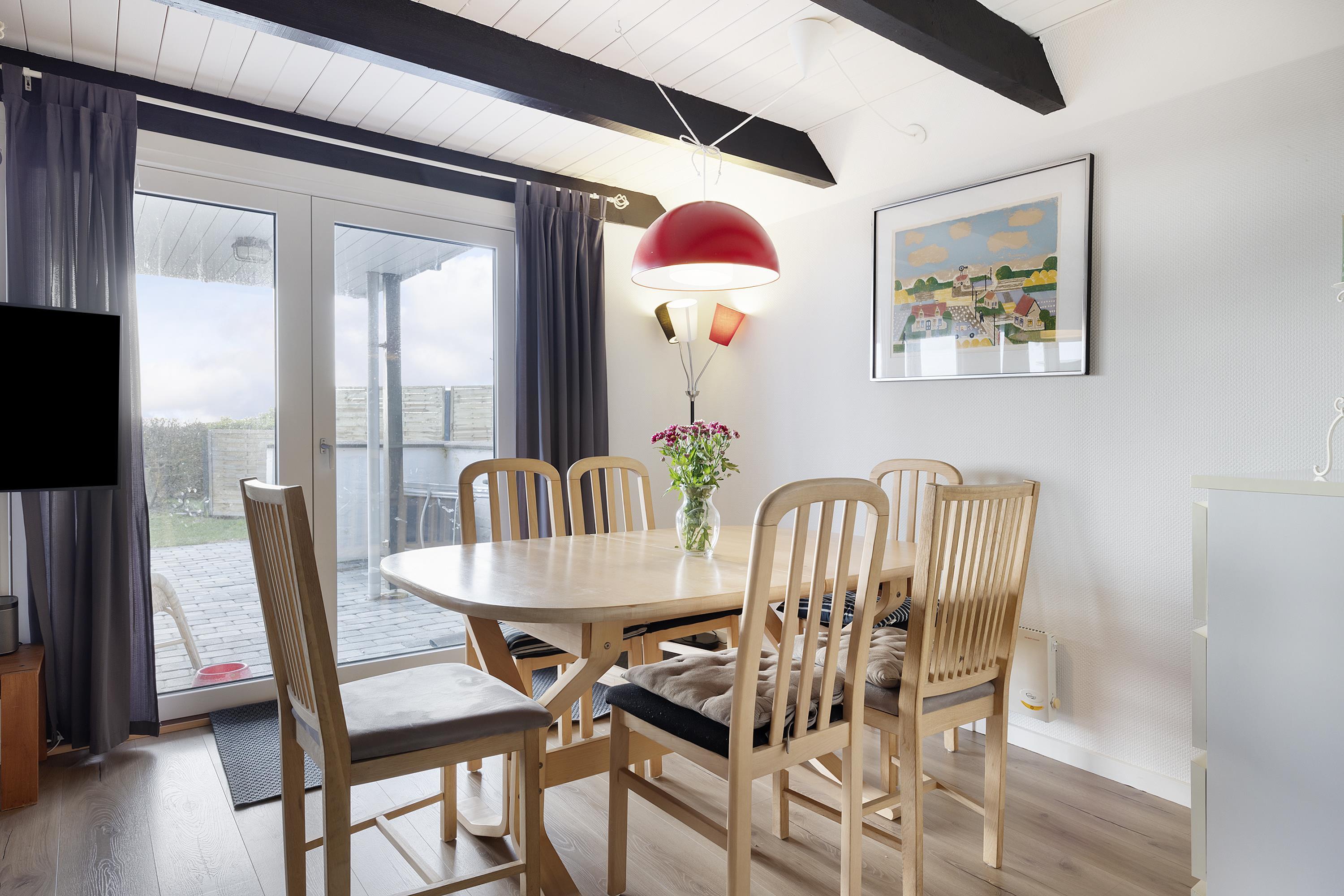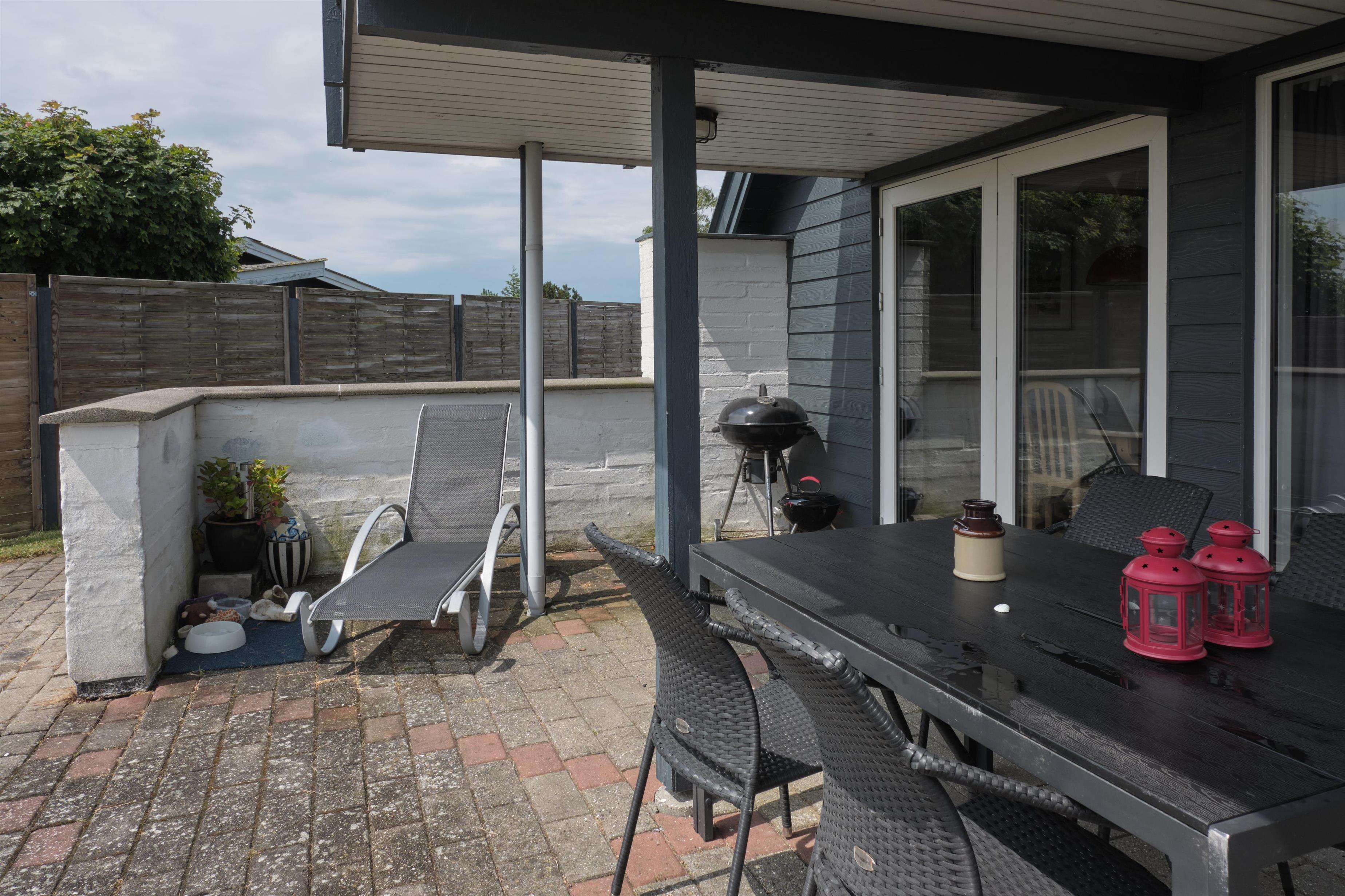 On a partially enclosed natural lot with a wonderful view over the Kattegat, Hjelm, and Boeslum, this lovely older well-maintained holiday home is situated in 2 floors with a partially covered terrace with garden furniture and a grill, as well as a balcony on the 1st floor. Cozy living room with satellite TV and radio. Lovely functional kitchen with ceramic stove, refrigerator with small freezer, microwave, and dishwasher. Good bathroom with shower cubicle, underfloor heating, and sauna as well as washing machine and tumble dryer. The sleeping accommodations of the house are distributed across 4 rooms: 3 with double beds and 1 with single beds. For the little holiday guests, there is a high chair.