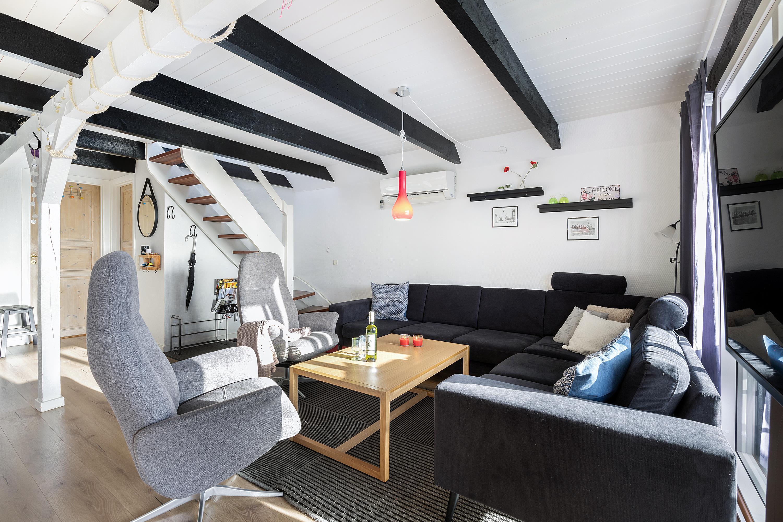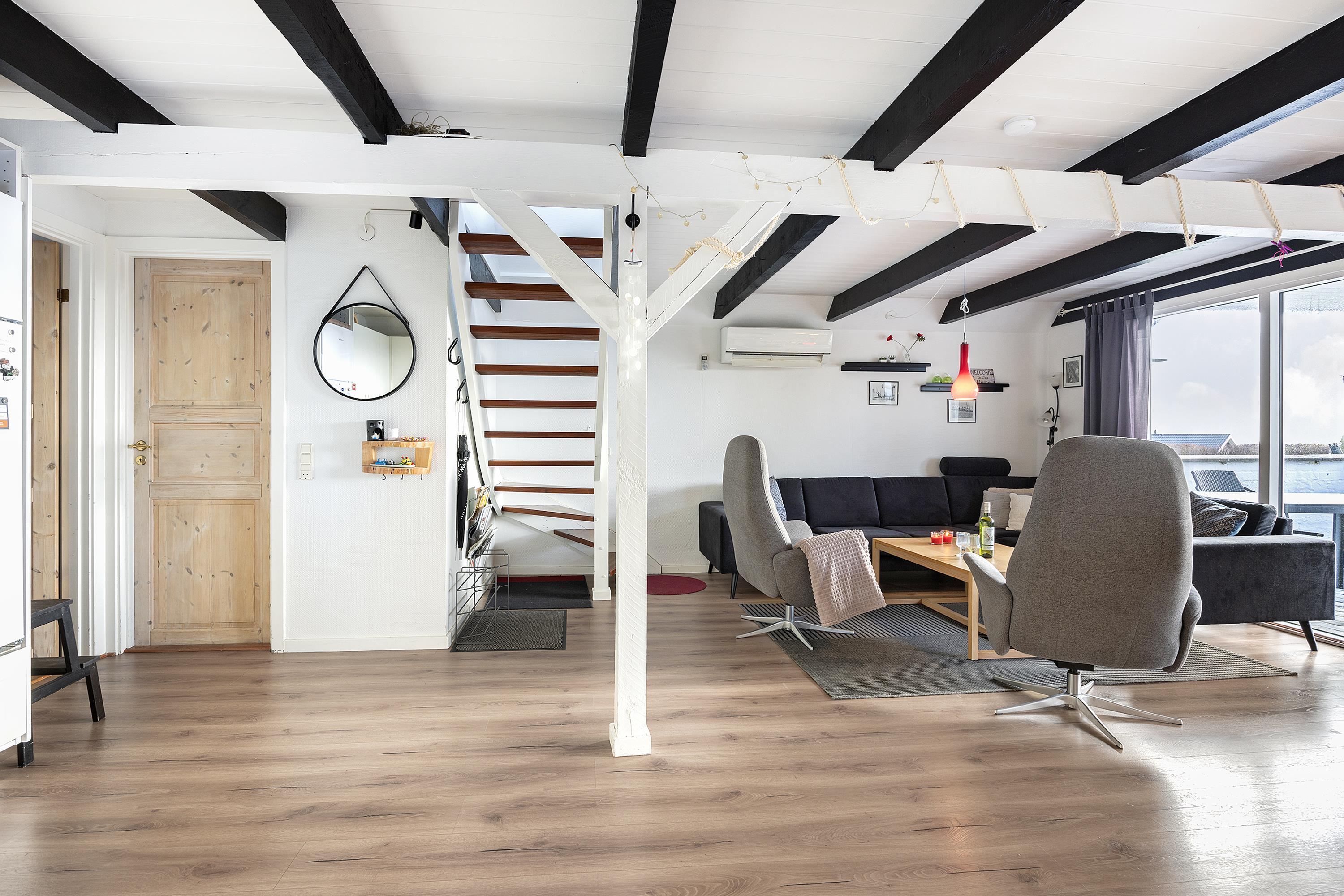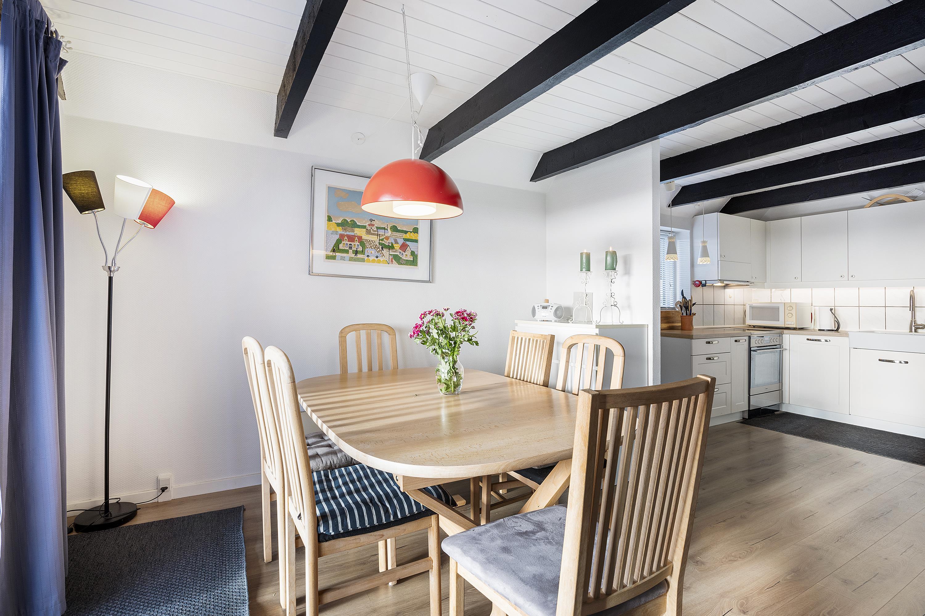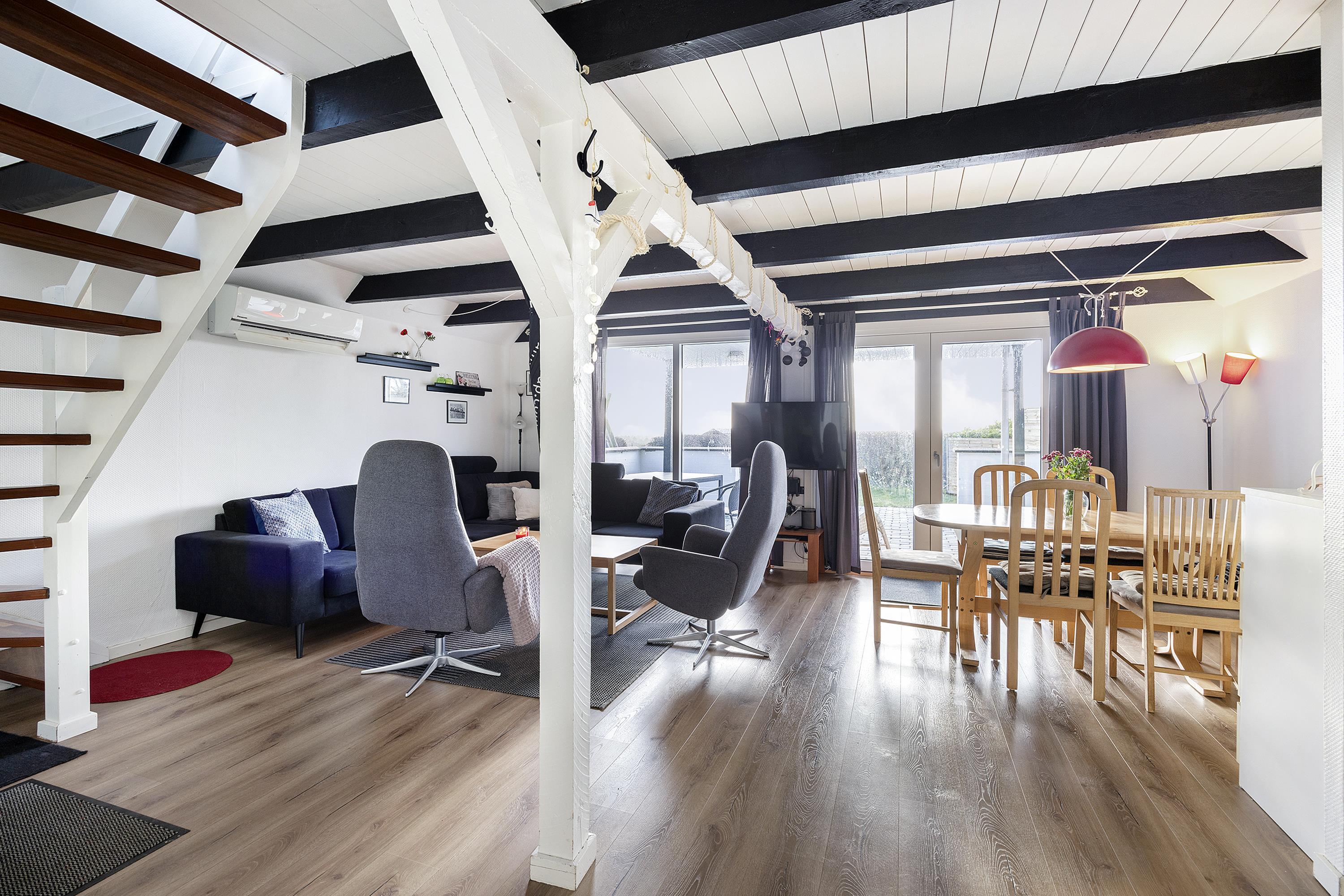 On a partially enclosed natural lot with a wonderful view over the Kattegat, Hjelm, and Boeslum, this lovely older well-maintained holiday home is situated in 2 floors with a partially covered terrace with garden furniture and a grill, as well as a balcony on the 1st floor. Cozy living room with satellite TV and radio. Lovely functional kitchen with ceramic stove, refrigerator with small freezer, microwave, and dishwasher. Good bathroom with shower cubicle, underfloor heating, and sauna as well as washing machine and tumble dryer. The sleeping accommodations of the house are distributed across 4 rooms: 3 with double beds and 1 with single beds. For the little holiday guests, there is a high chair.
