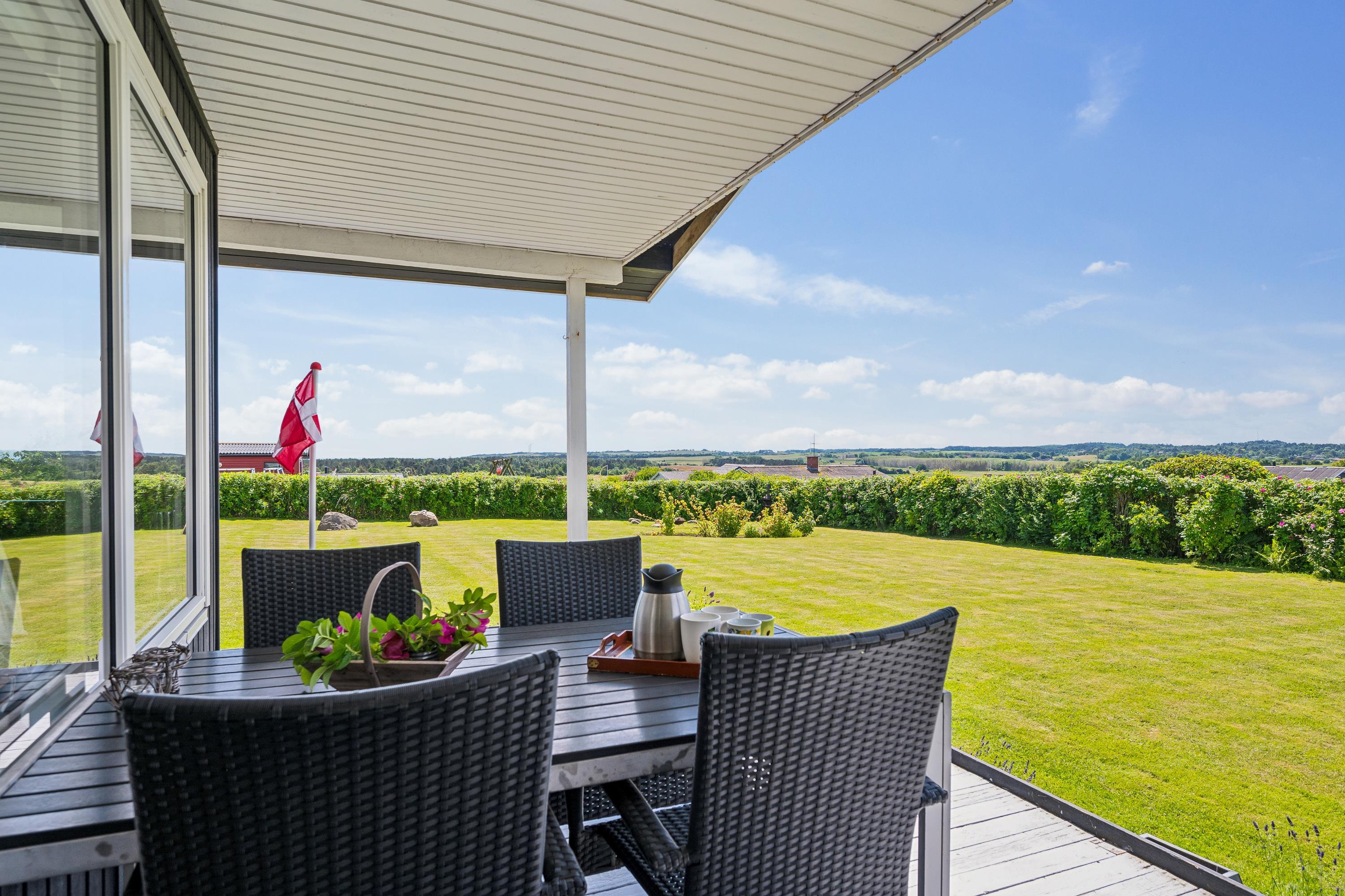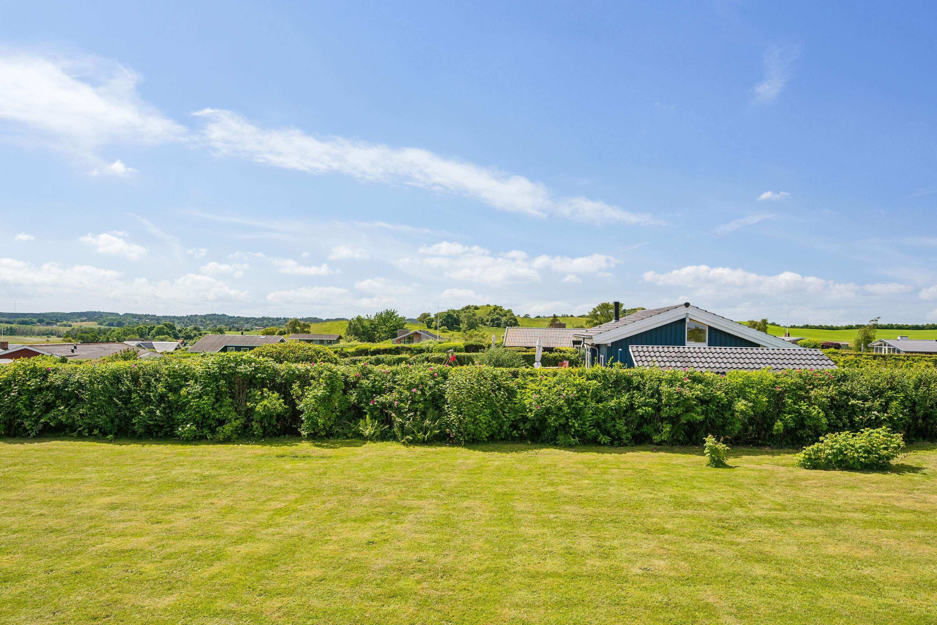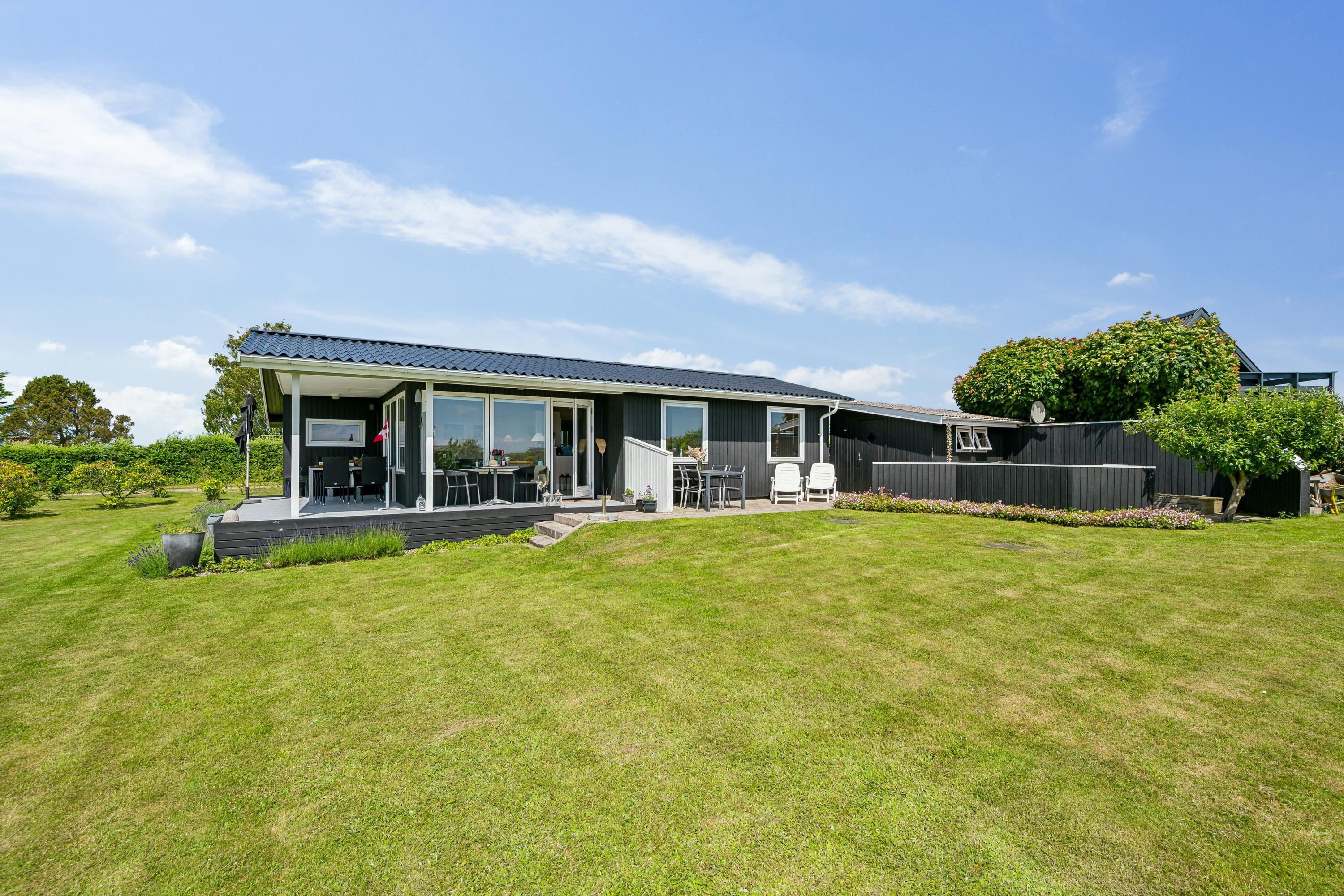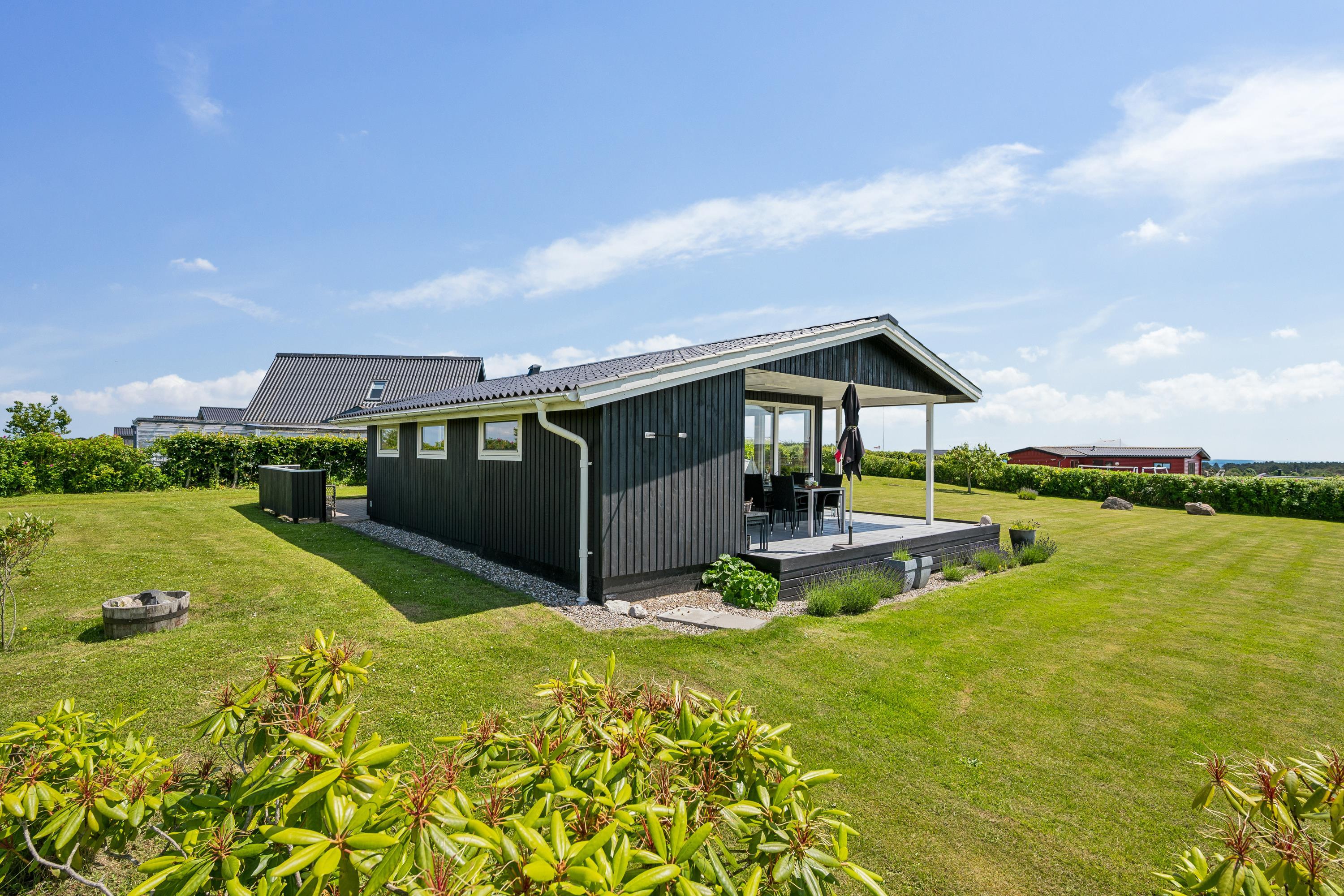 Older, modernized, and very well-maintained holiday home located close to a child-friendly beach with a beautiful view of the Kattegat. Lovely, partially covered southwest-facing wooden/terrace with garden furniture, sun loungers, parasol, and grill. Additionally, there is a bonfire area, sandbox, and play equipment on the property.