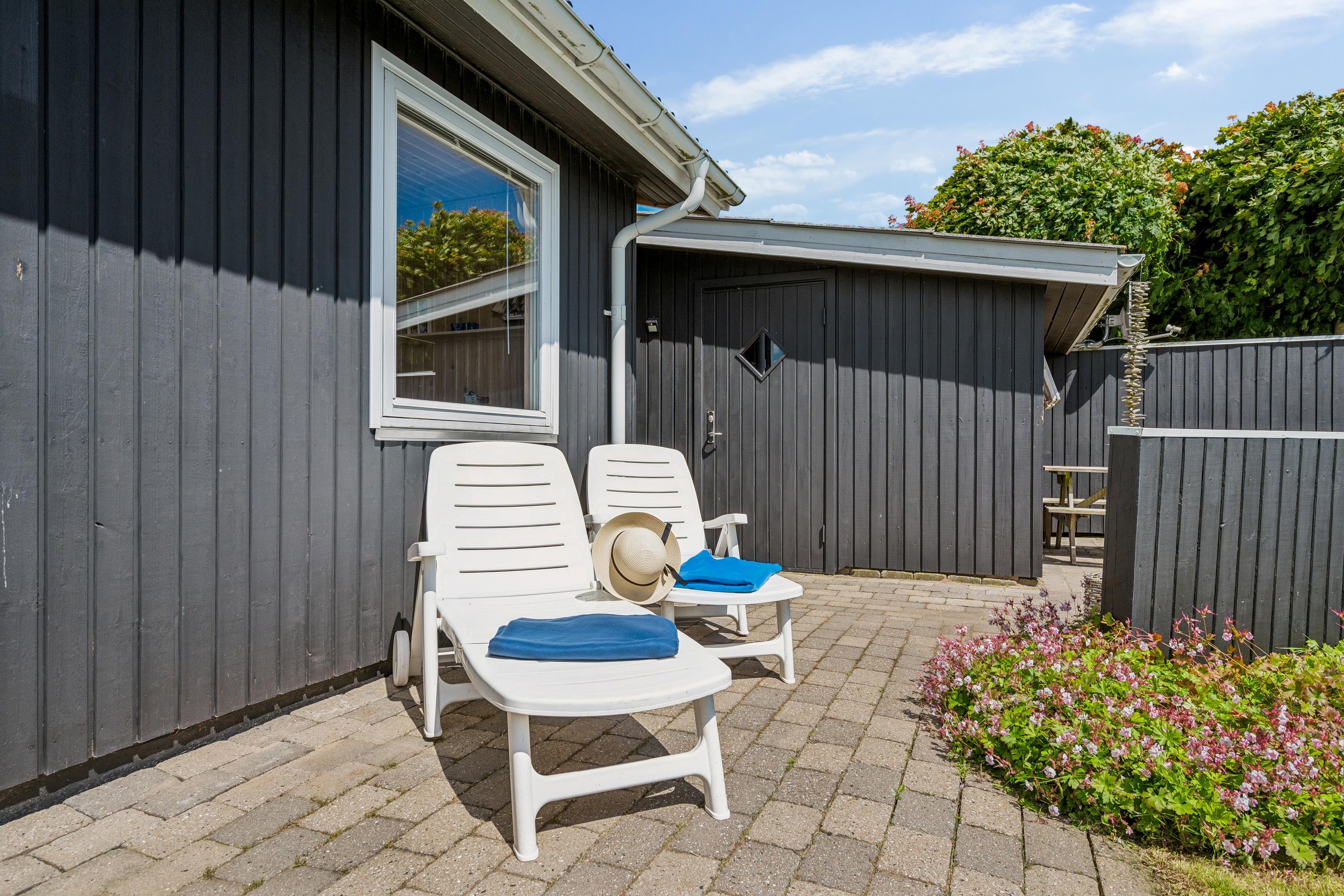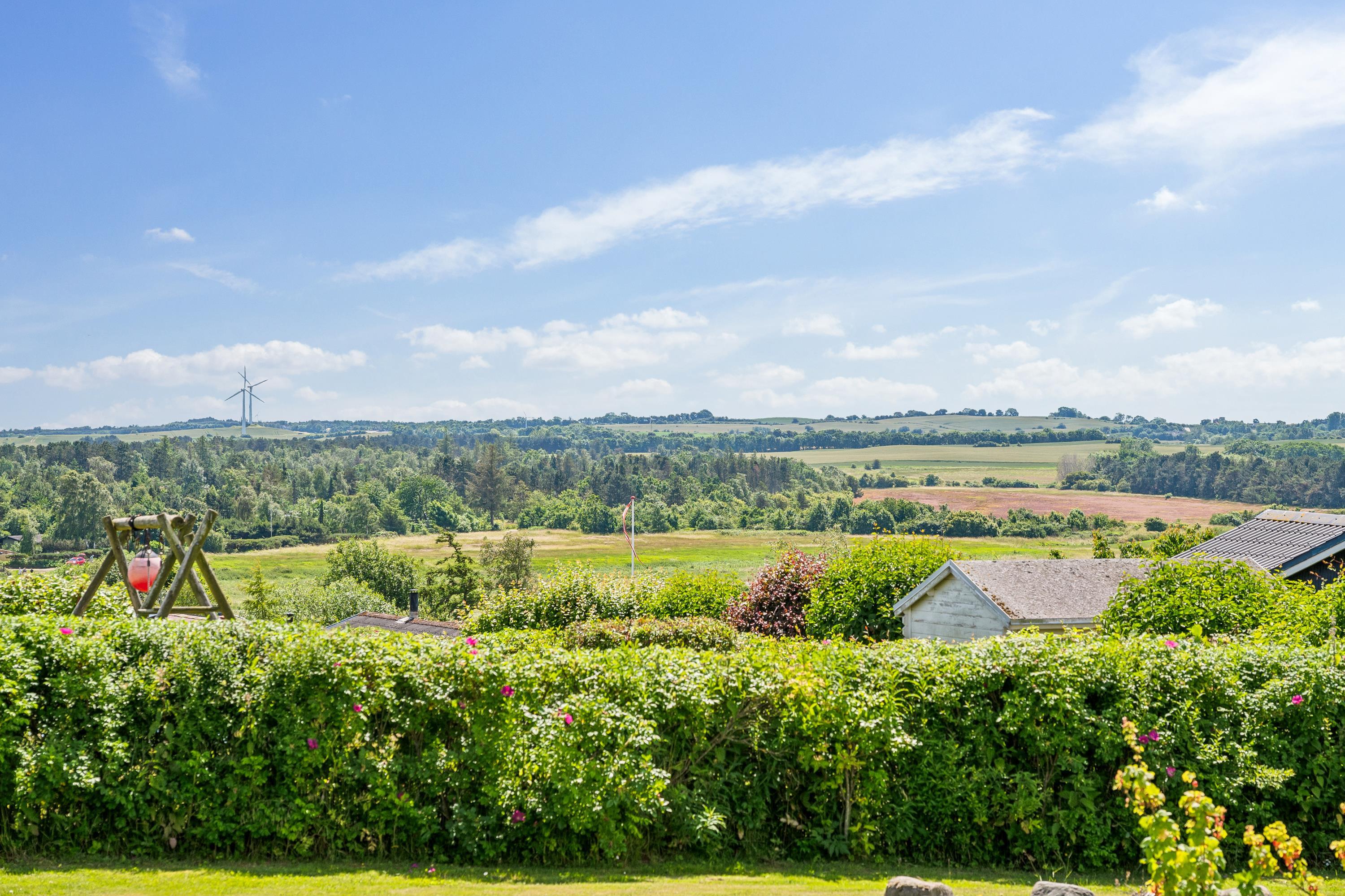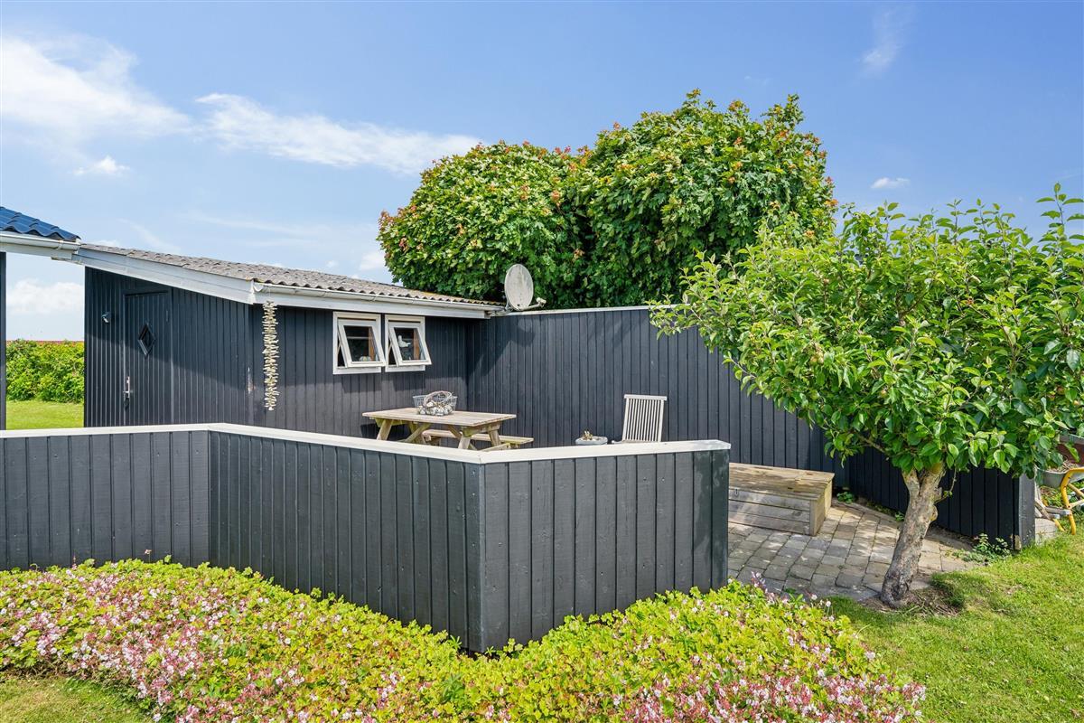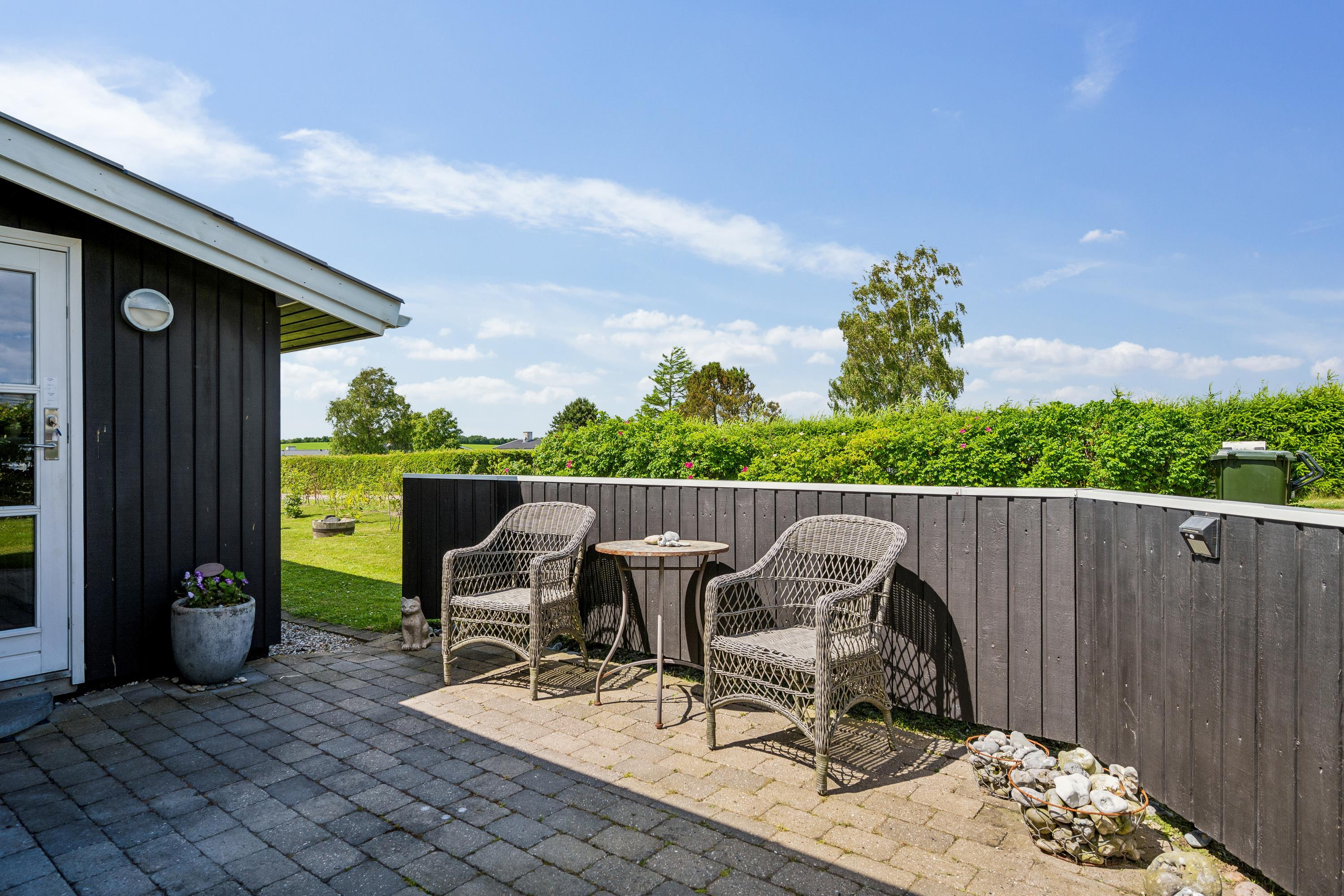 Older, modernized, and very well-maintained holiday home located close to a child-friendly beach with a beautiful view of the Kattegat. Lovely, partially covered southwest-facing wooden/terrace with garden furniture, sun loungers, parasol, and grill. Additionally, there is a bonfire area, sandbox, and play equipment on the property.