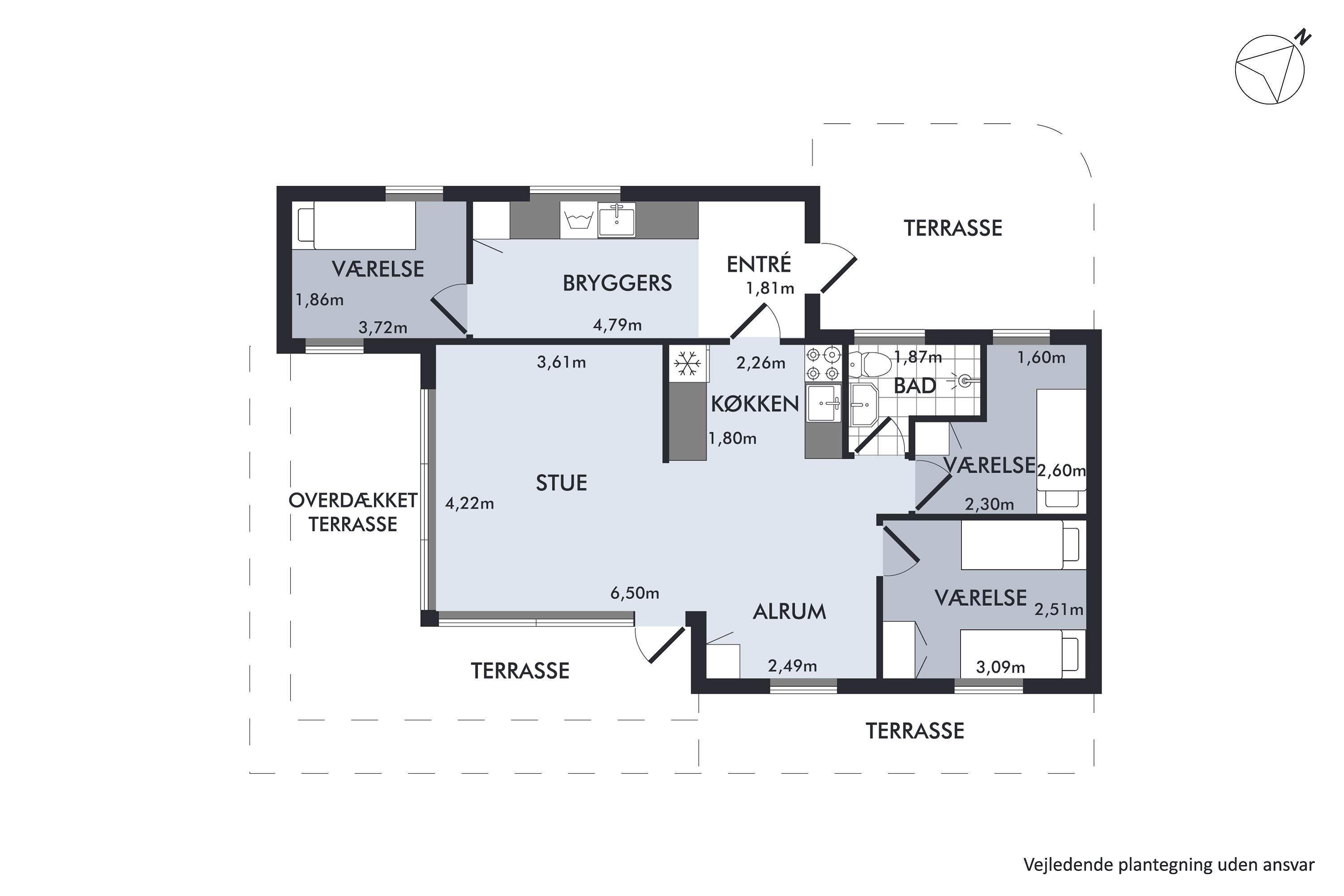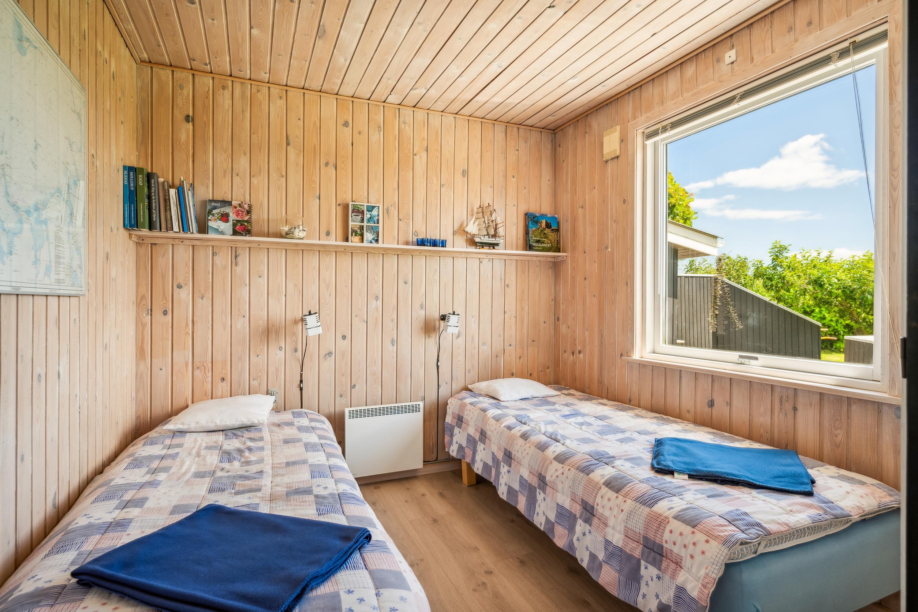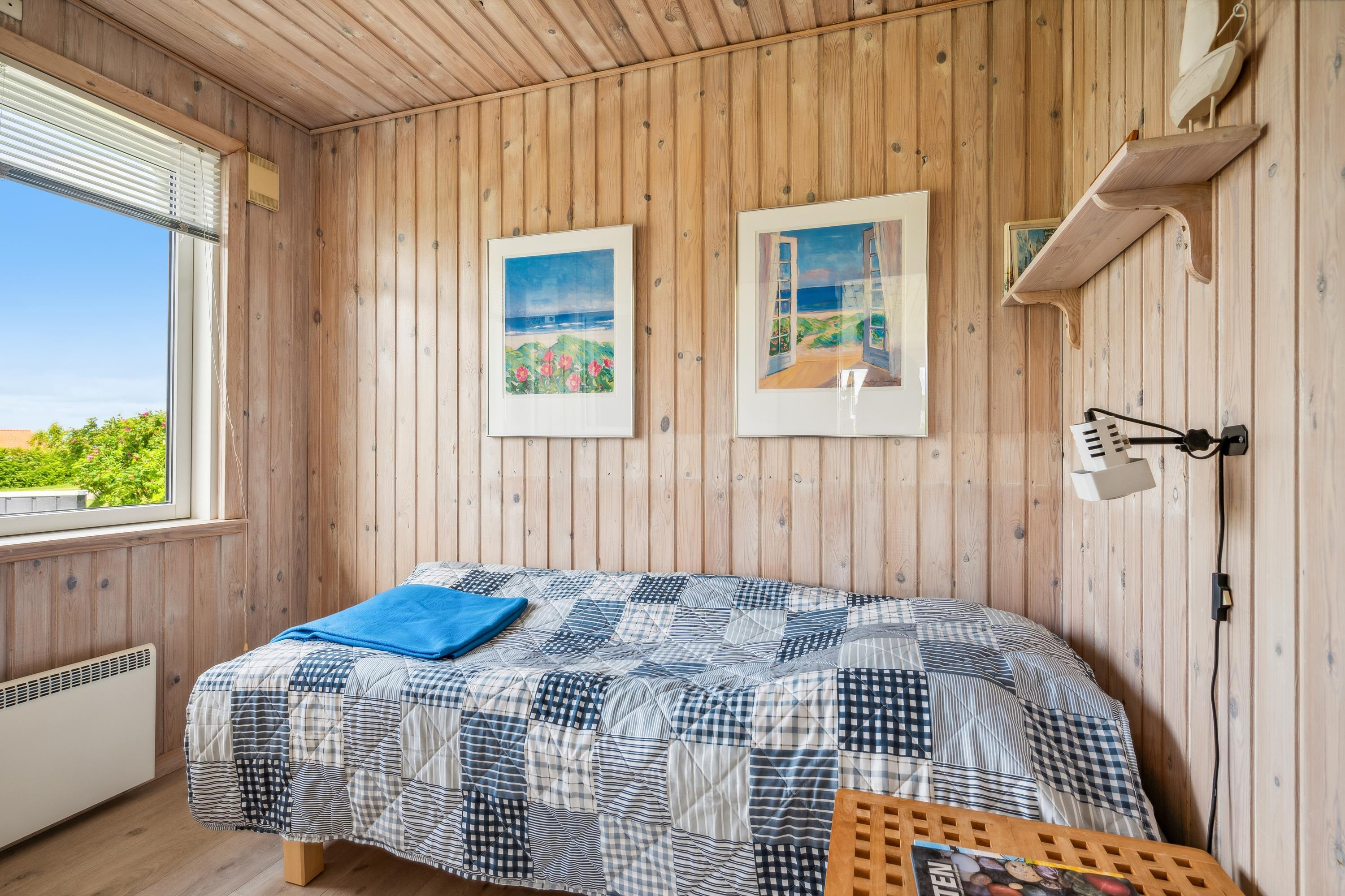 Cozy and well-furnished living room with a good dining area for 4 people, TV with Danish and German channels, stereo system with CD and radio. In open connection with the living room, there is a well-equipped kitchen with ceramic stove with oven, microwave, and a refrigerator with a small separate freezer. Newer bathroom with shower and underfloor heating. Practical, large entrance hall with a washing machine and the possibility to store shoes and outerwear. The sleeping accommodations in the house are distributed among 3 good bedrooms: 1 with 2 single beds and 2 with 1 single bed each. Internet access.