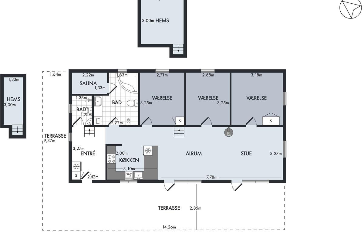 Truly lovely, well-appointed, and exceptionally well-maintained cottage situated on an open natural plot close to Holme Beach. On the large lawn, there's plenty of opportunity for play and games, with both a swing and a sandbox. The house boasts a spacious, open terrace with garden furniture and a grill. Cozy living room with a bright and friendly decor; here, there's dining space for 10 people, a wood-burning stove, TV with Danish (including TV2) and many German channels, as well as a stereo system with a CD player. The house features underfloor heating. Beautiful kitchen with induction stove, refrigerator with freezer, microwave, and dishwasher. Two lovely bathrooms with shower and underfloor heating; in one bathroom, there's also a spa, sauna, washing machine, and dryer. The house's sleeping accommodations are distributed among 3 bedrooms: 2 with double beds, 1 with a single bed, and 2 lofts with 2 sleeping places in one and 1 sleeping place in the other. The house is best suited for a maximum of 6 adults and 4 children. For the little holiday guests, there's a crib, 2 high chairs, and 2 junior chairs. There's a large countertop near the sink that can be used as a changing table.