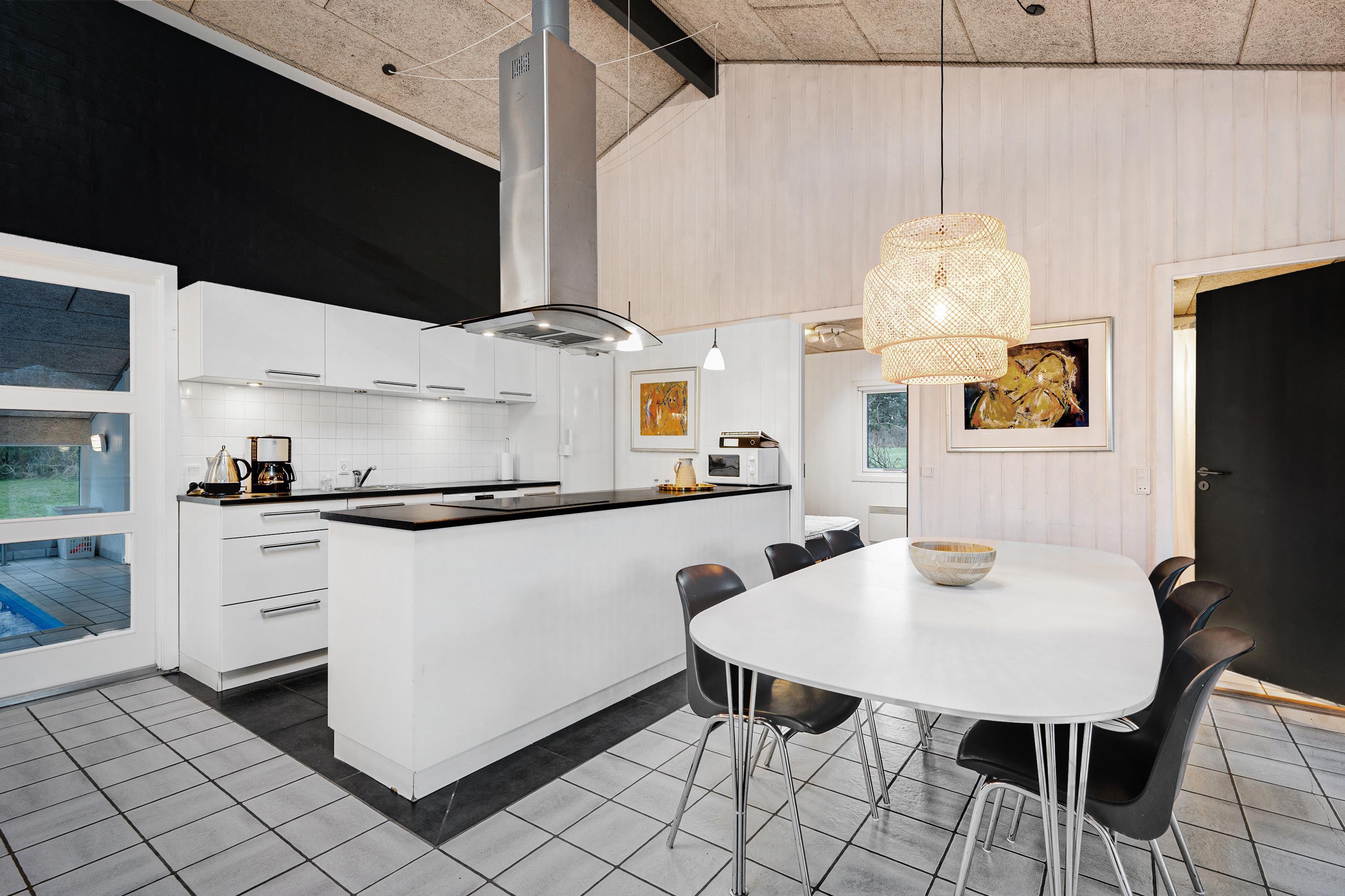 Close to one of Djursland's best beaches, you'll find this lovely pool holiday home situated on a natural lot without neighbors to the west and with an unobstructed view over the landscape and cornfields. Beautiful, large, south-facing sun terrace with garden furniture and a grill. Bright and friendly interior with good furnishings. Cozy living room with a wood-burning stove, satellite TV (including TV2), DVD, and stereo system. Lovely, spacious kitchen with a good dining area, ceramic stove, refrigerator, microwave, and dishwasher. 2 good bathrooms with shower, underfloor heating, washing machine, and dryer. In the center of the house, there is a delightful pool room with a large pool (3.5 x 5 x 1.5 m) and a sauna, as well as a cozy corner with furniture. The sleeping accommodations in the house are distributed among 4 good bedrooms: 3 with double beds and 1 with 2 bunk beds. For the little holiday guests, there is a crib, high chair, and a swing. Internet access. Storage room with an extra refrigerator/freezer.