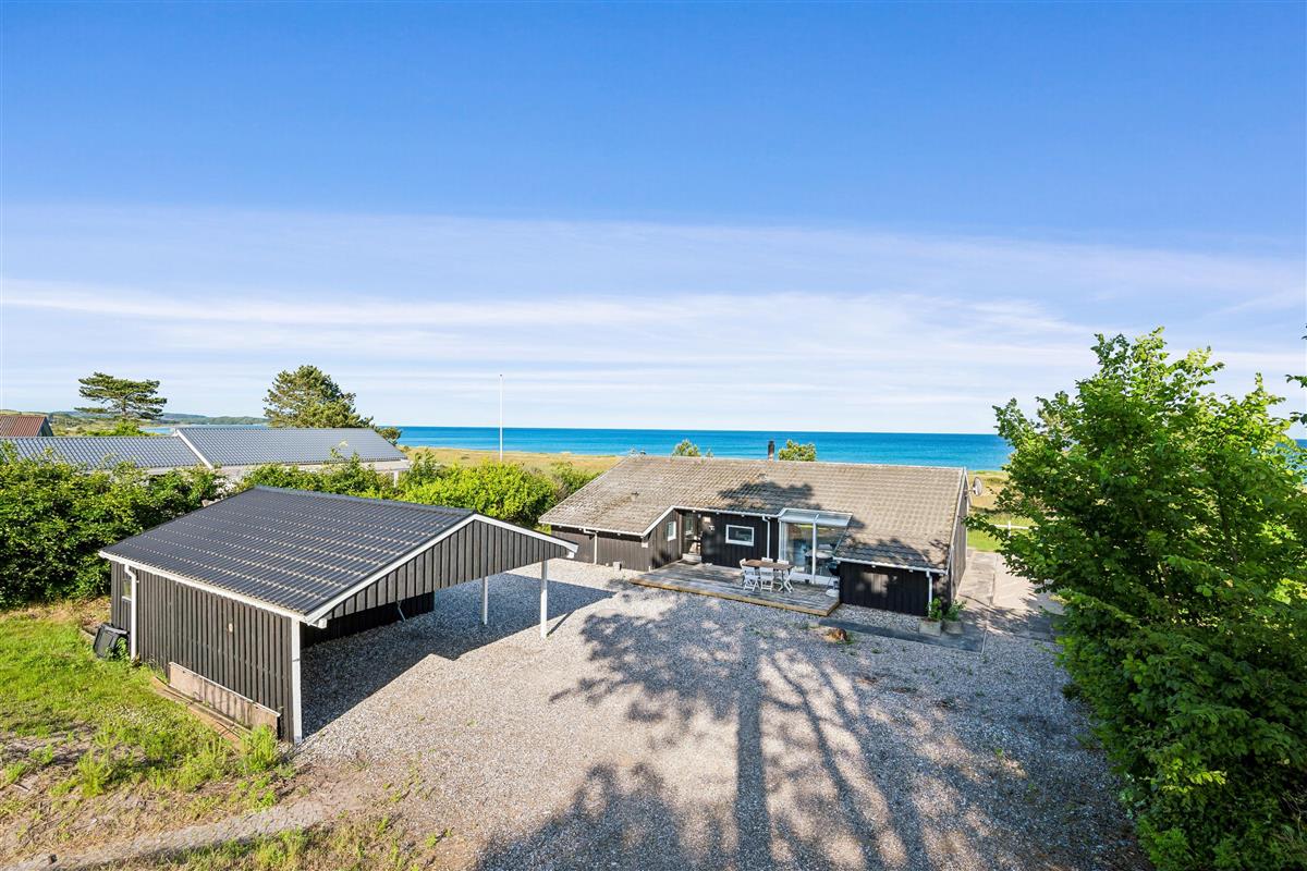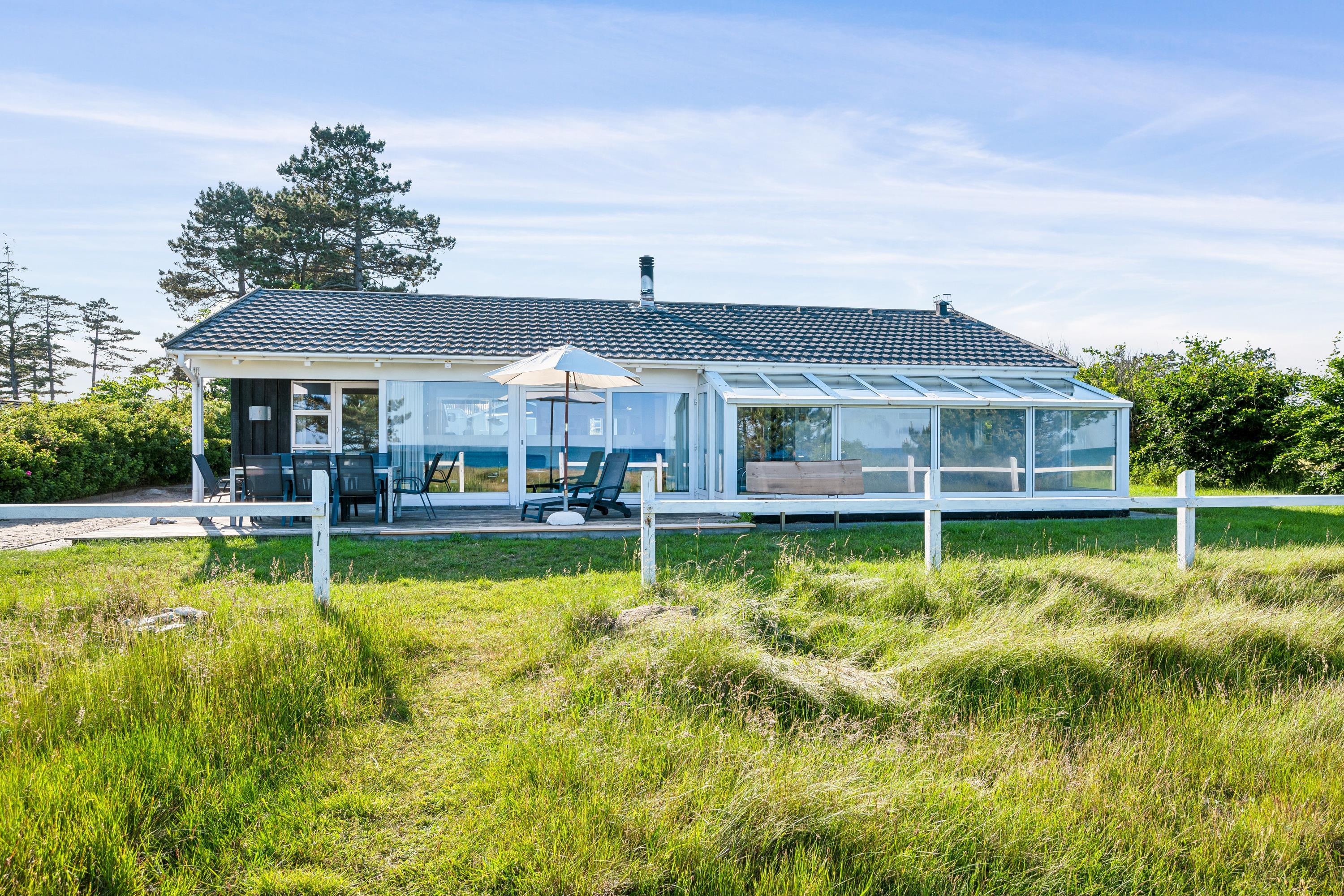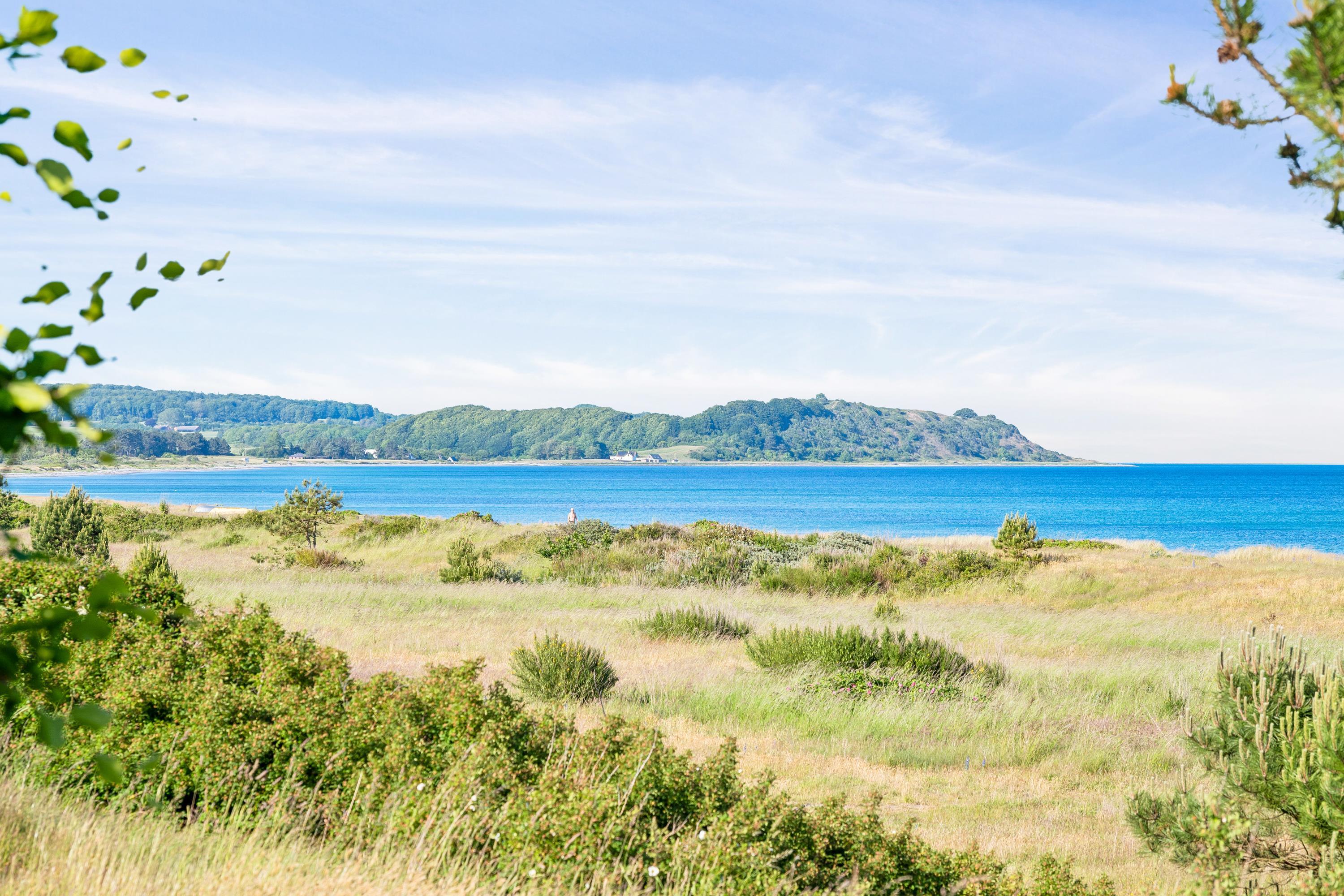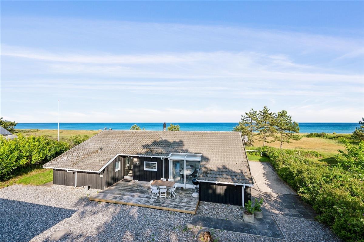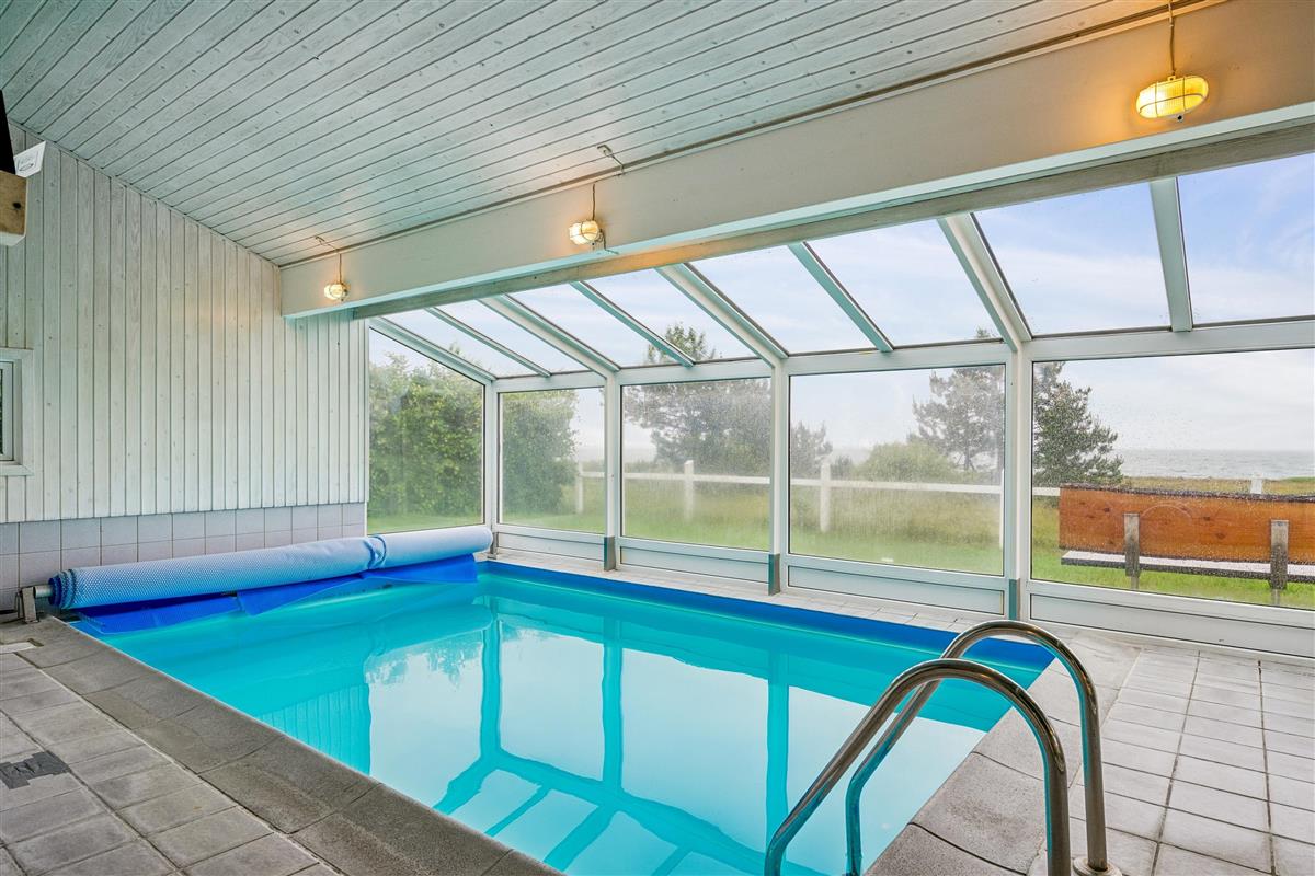On a large natural plot close to Dråby Beach, you'll find this lovely pool cottage in the first row from the sea with unobstructed views over the Kattegat and Jernhatten. Several open terraces to the east and west with garden furniture, a grill, and a bonfire area. Cozy living room with a wood-burning stove, satellite TV, stereo system with CD and DVD player. Good, functional kitchen with ceramic stove, refrigerator with a small freezer, microwave, and dishwasher. 2 good bathrooms with shower and underfloor heating. Additionally, there's a sauna, washing machine, and dryer. Centrally located in the house is the lovely pool room (4.8 x 3.5 x 1.5 m - 15 sqm) with underfloor heating. The house's sleeping arrangements are distributed across 4 bedrooms: 3 with double beds and 1 with bunk beds, plus a large loft that is open to the living room with 2 sleeping places. Rowboat without motor, which can be used in calm weather at your own risk and insurance. Fish cleaning area and additional freezer in the shed. For the little holiday guests, there's a crib, high chair, sandbox, and swing. Additionally, there's a petanque court. Internet is available.