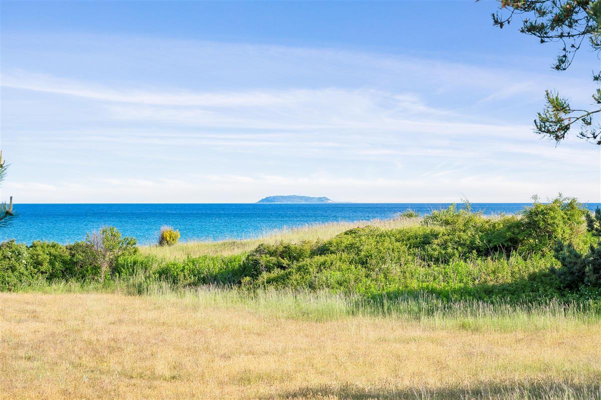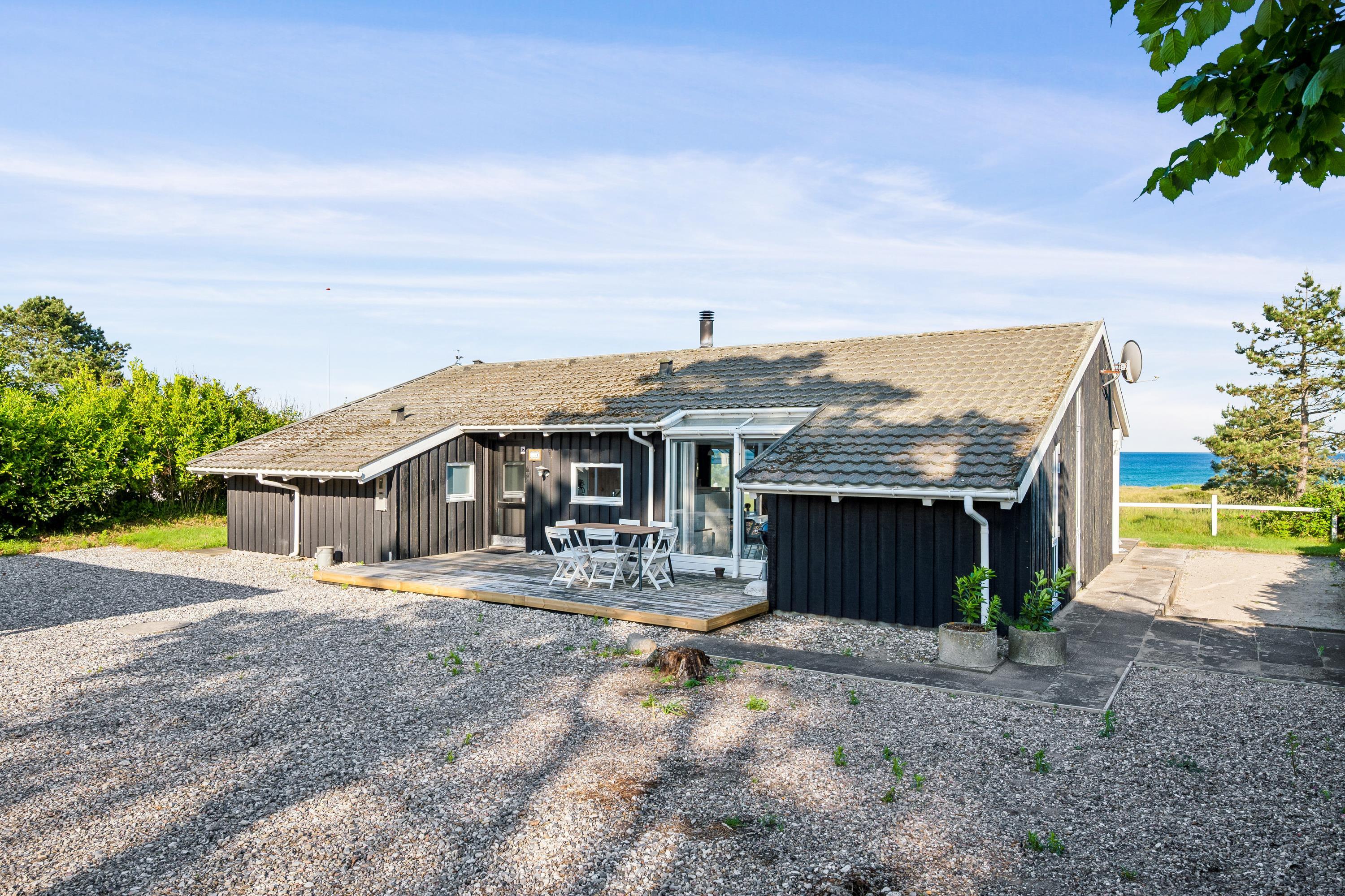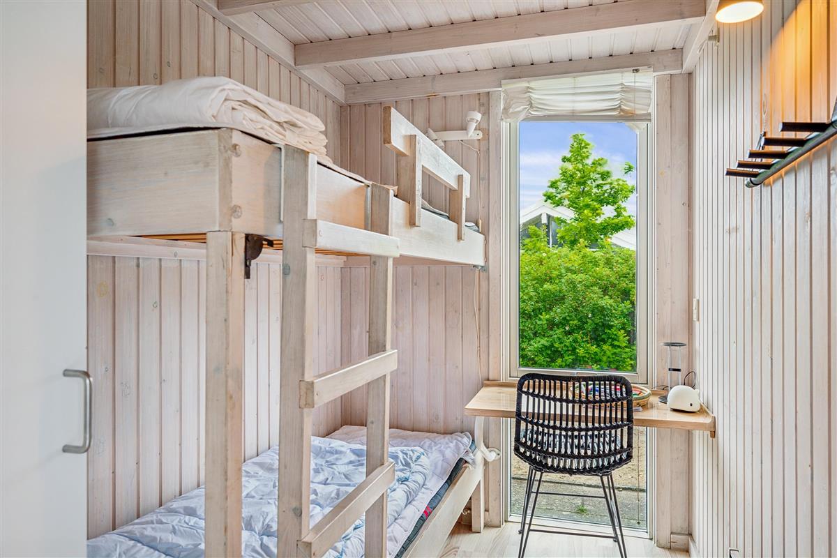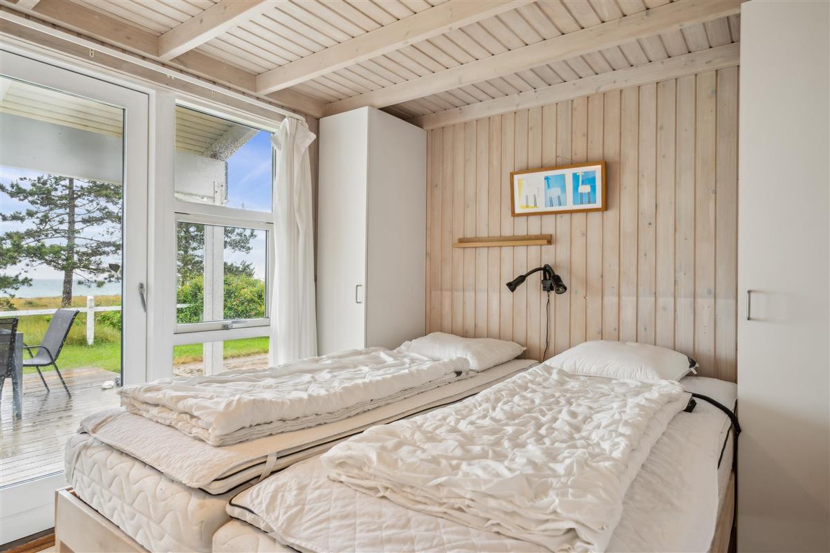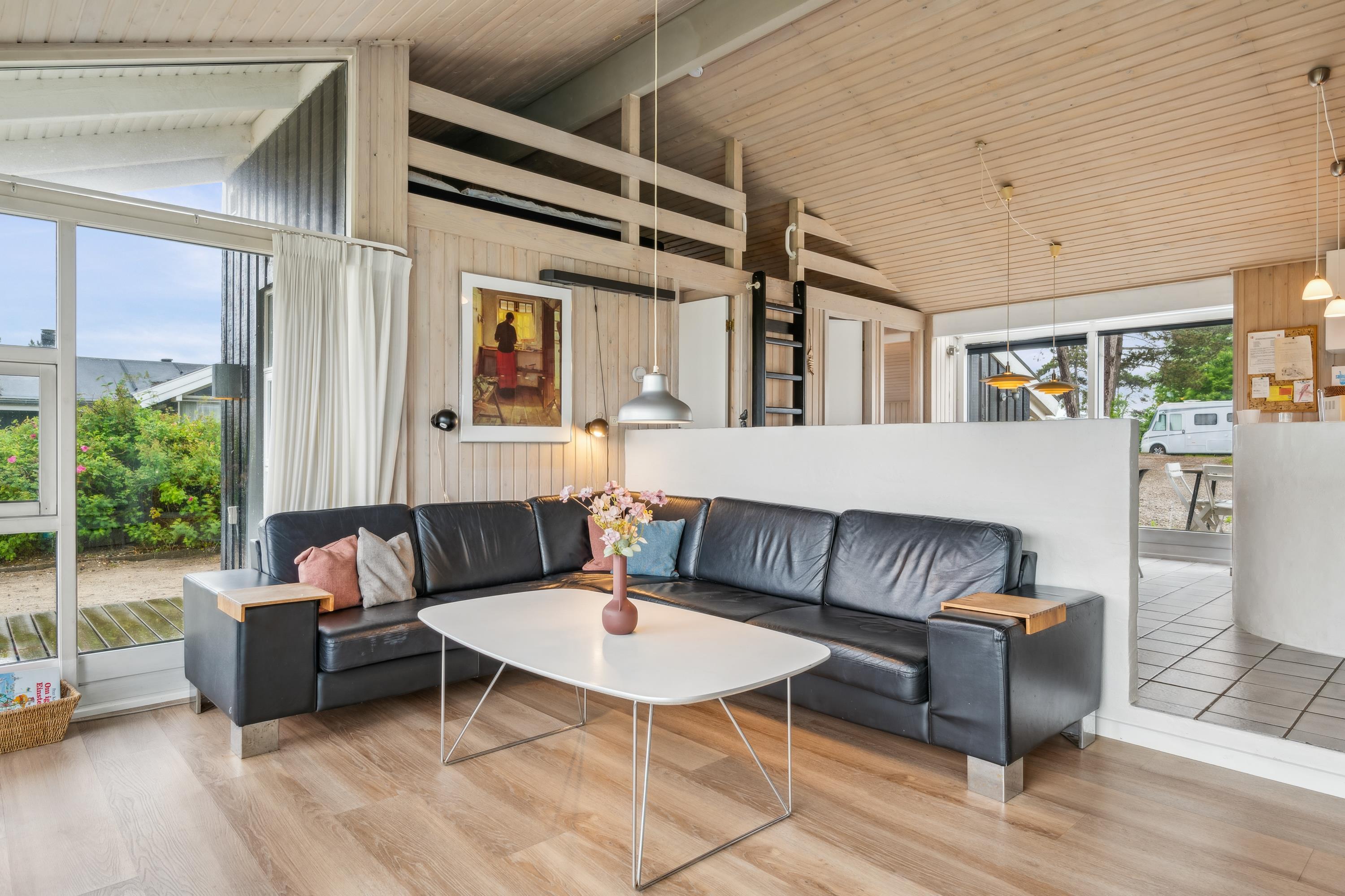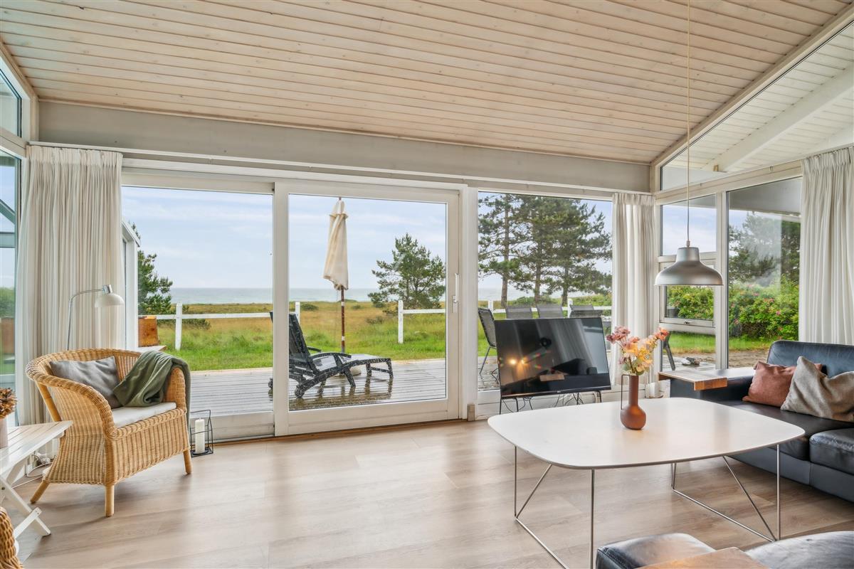 On a large natural plot close to Dråby Beach, you'll find this lovely pool cottage in the first row from the sea with unobstructed views over the Kattegat and Jernhatten. Several open terraces to the east and west with garden furniture, a grill, and a bonfire area. Cozy living room with a wood-burning stove, satellite TV, stereo system with CD and DVD player. Good, functional kitchen with ceramic stove, refrigerator with a small freezer, microwave, and dishwasher. 2 good bathrooms with shower and underfloor heating. Additionally, there's a sauna, washing machine, and dryer. Centrally located in the house is the lovely pool room (4.8 x 3.5 x 1.5 m - 15 sqm) with underfloor heating. The house's sleeping arrangements are distributed across 4 bedrooms: 3 with double beds and 1 with bunk beds, plus a large loft that is open to the living room with 2 sleeping places. Rowboat without motor, which can be used in calm weather at your own risk and insurance. Fish cleaning area and additional freezer in the shed. For the little holiday guests, there's a crib, high chair, sandbox, and swing. Additionally, there's a petanque court. Internet is available.