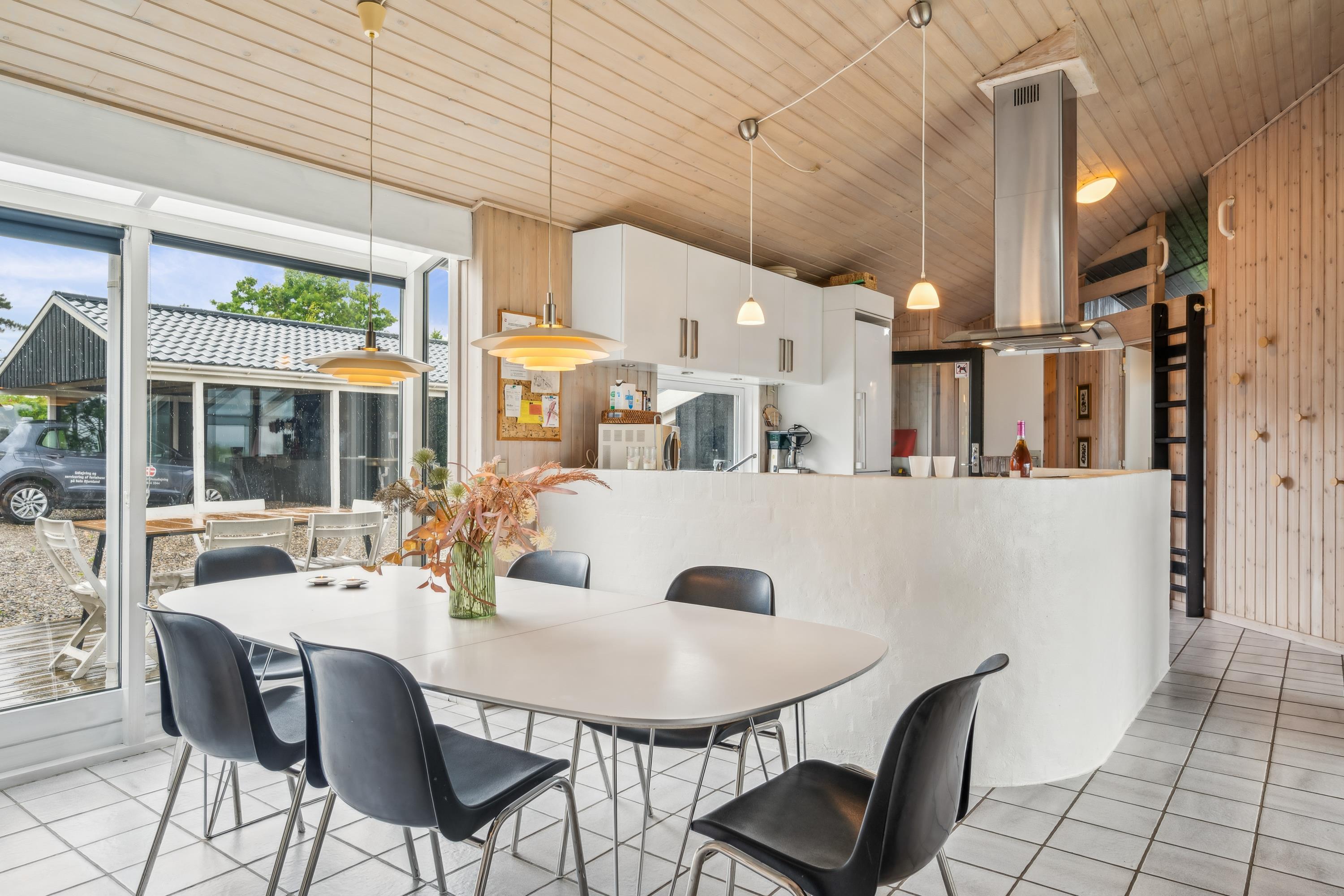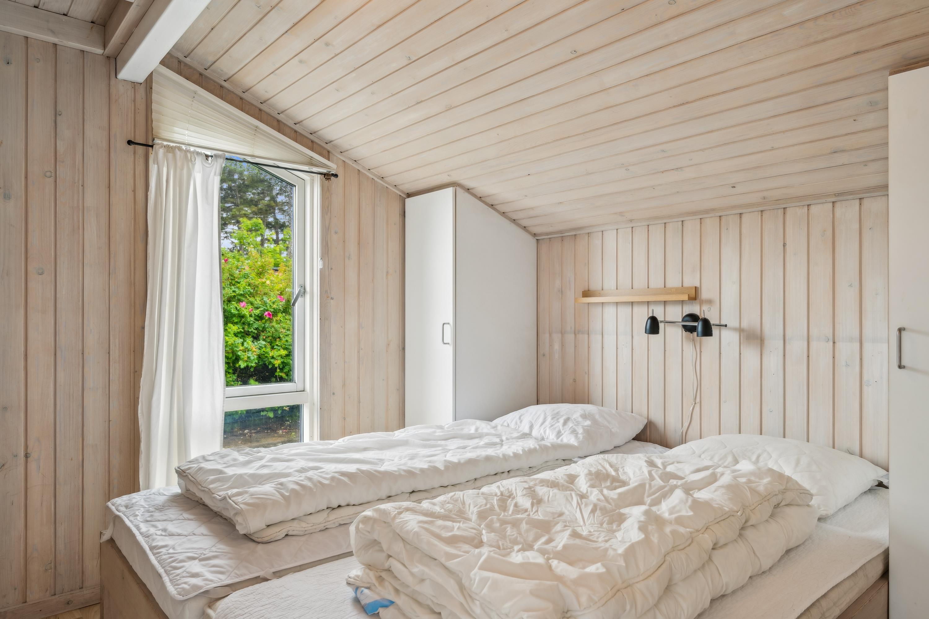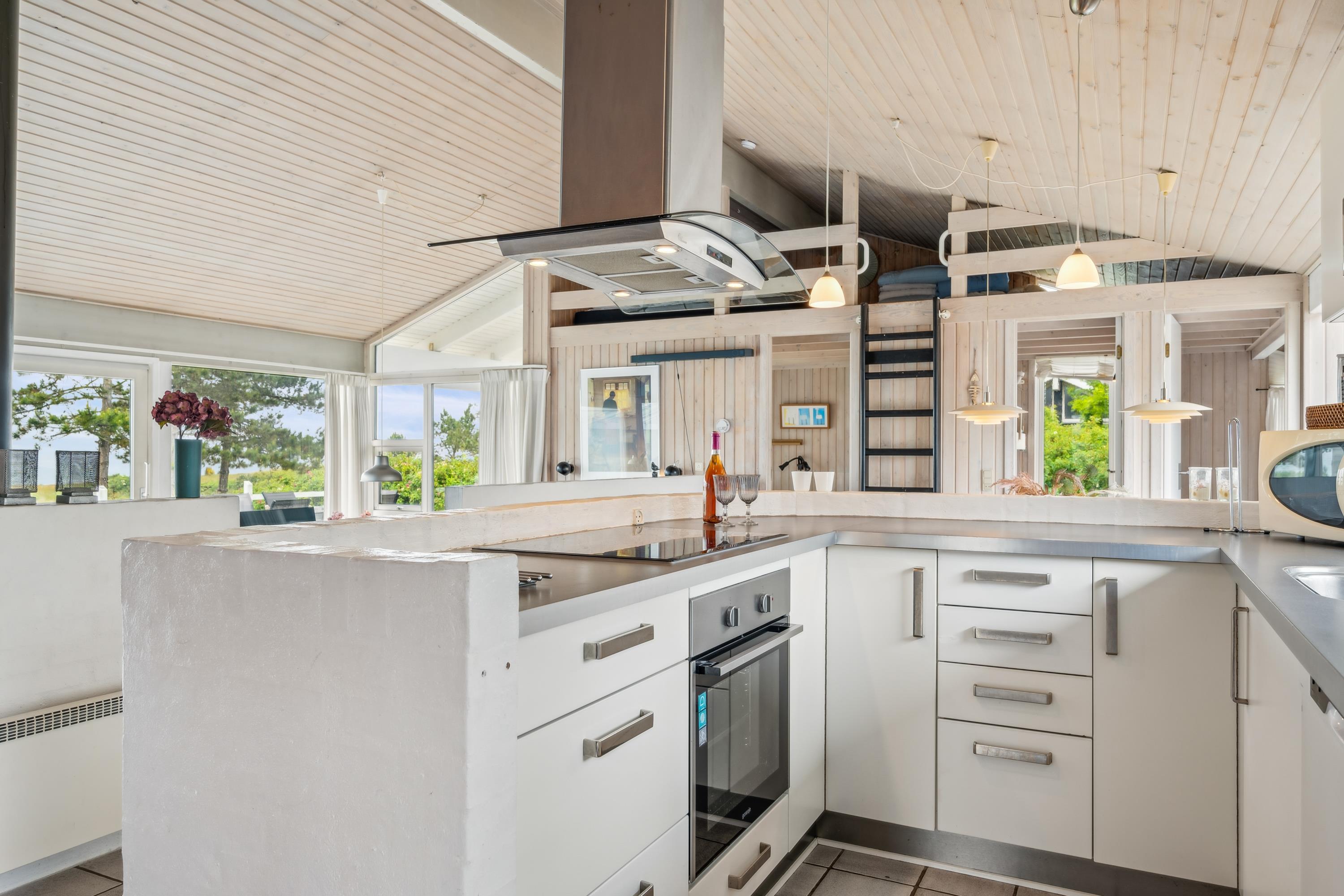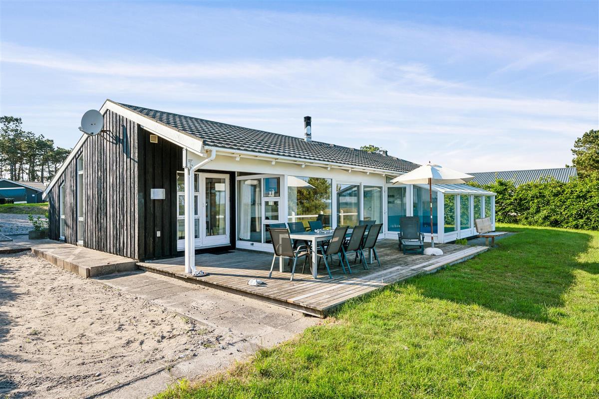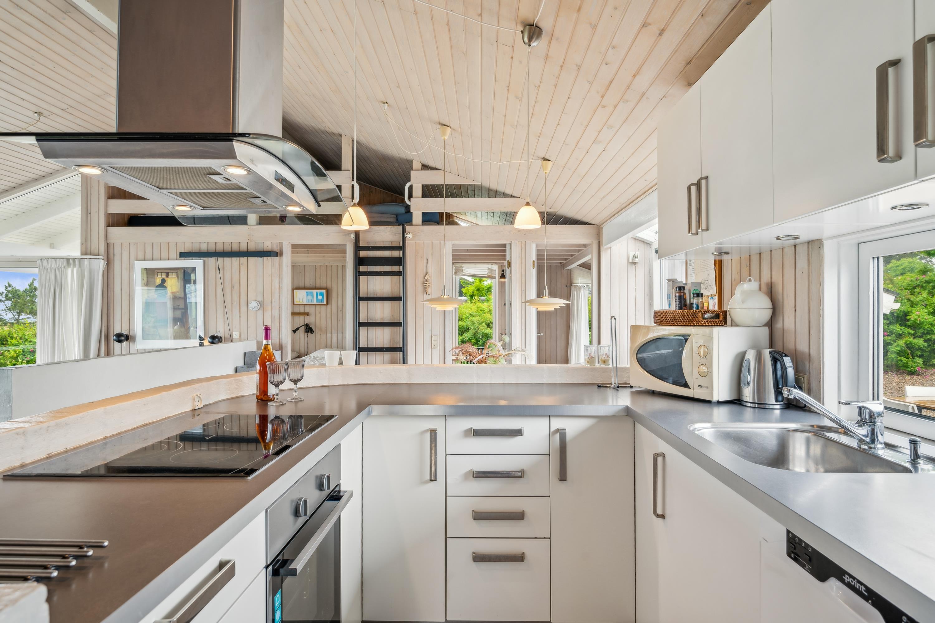 On a large natural plot close to Dråby Beach, you'll find this lovely pool cottage in the first row from the sea with unobstructed views over the Kattegat and Jernhatten. Several open terraces to the east and west with garden furniture, a grill, and a bonfire area. Cozy living room with a wood-burning stove, satellite TV, stereo system with CD and DVD player. Good, functional kitchen with ceramic stove, refrigerator with a small freezer, microwave, and dishwasher. 2 good bathrooms with shower and underfloor heating. Additionally, there's a sauna, washing machine, and dryer. Centrally located in the house is the lovely pool room (4.8 x 3.5 x 1.5 m - 15 sqm) with underfloor heating. The house's sleeping arrangements are distributed across 4 bedrooms: 3 with double beds and 1 with bunk beds, plus a large loft that is open to the living room with 2 sleeping places. Rowboat without motor, which can be used in calm weather at your own risk and insurance. Fish cleaning area and additional freezer in the shed. For the little holiday guests, there's a crib, high chair, sandbox, and swing. Additionally, there's a petanque court. Internet is available.