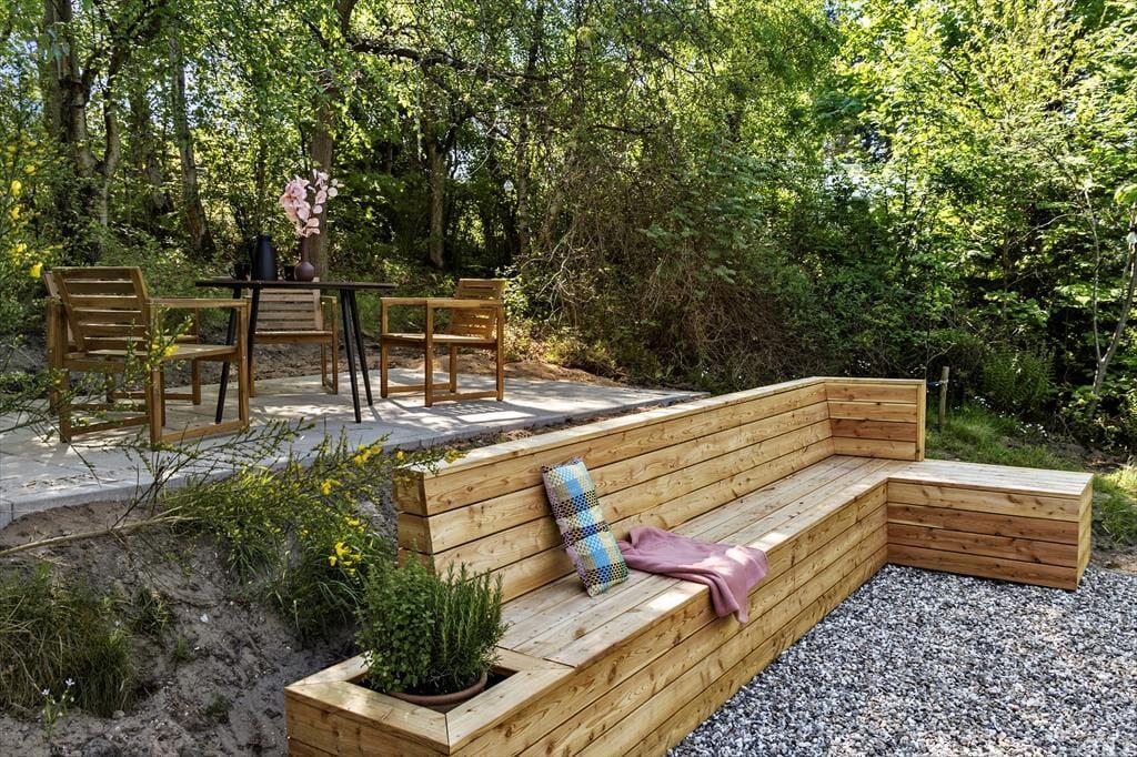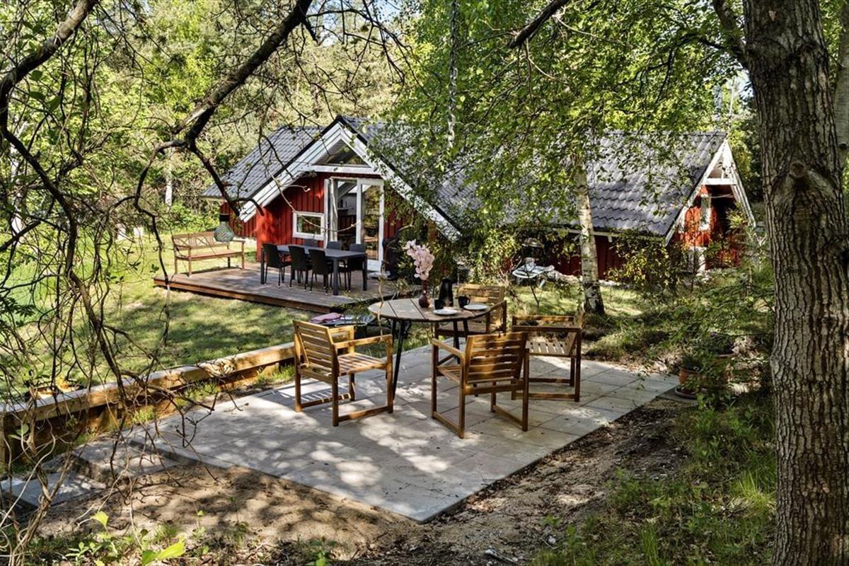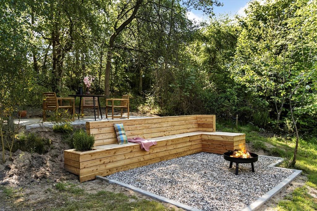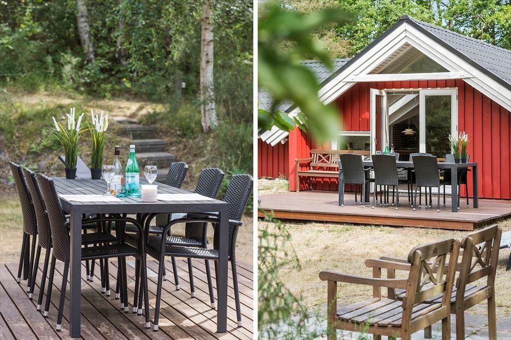 Draußen entfaltet sich das Urlaubsleben auf der schönen Terrasse, auf der Gartenmöbel und Grill bereitstehen, damit du deine Mahlzeiten unter freiem Himmel genießen kannst. Das Grundstück lädt zu Spiel, Entspannung und kleinen Momenten in der Sonne ein – ein Ort, an dem die Kinder toben können, während du dich mit einem guten Buch oder einer Tasse Kaffee zurücklehnst. Hier findest du Raum für Ruhe und gemütliche Stunden in grüner Umgebung.