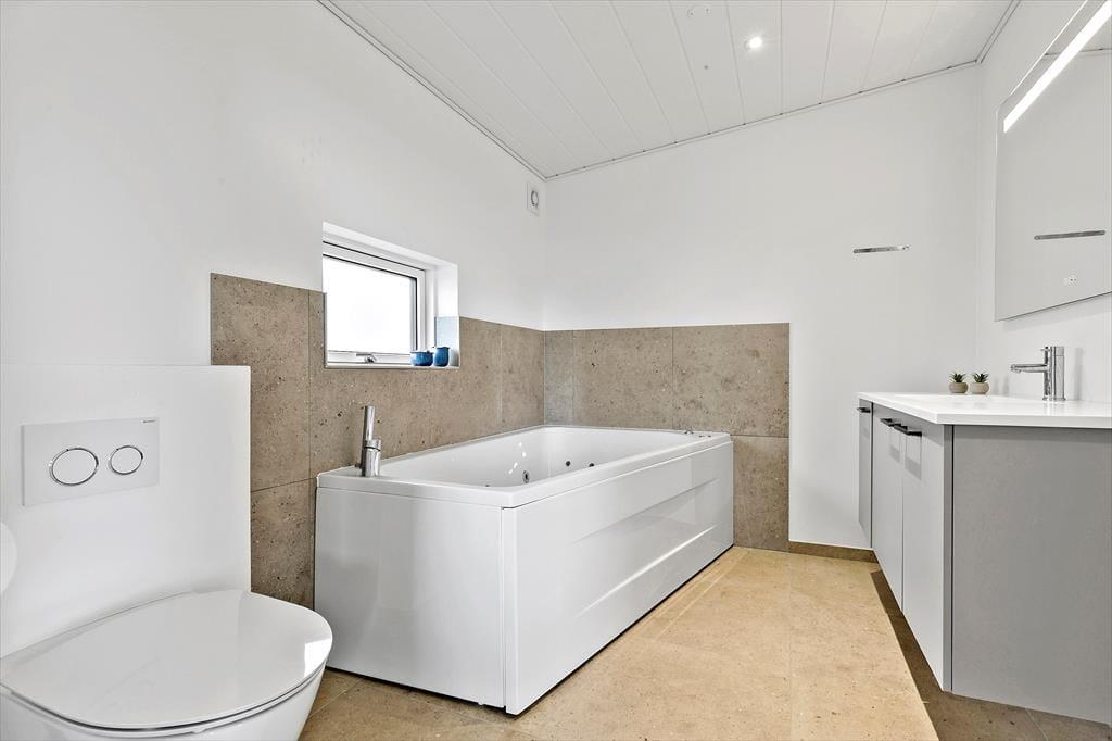 Mit der schönsten Lage in der Nähe von Strand, Wald und Feldern findest du dieses neu errichtete (2024) Ferienhaus. Das Haus verfügt über ein helles und gut eingerichtetes Wohnzimmer mit ansprechenden Möbeln, Kaminofen, TV mit deutschen und dänischen Kanälen. Die Küche ist offen mit dem Wohnzimmer verbunden, so können sich alle entspannt unterhalten, während gutes Essen zubereitet wird. Die beiden Badezimmer sind mit Duschkabine und Fußbodenheizung ausgestattet. Außerdem verfügt eines der Badezimmer über einen herrlichen Innen-Whirlpool, der deine Muskeln nach einem langen Spaziergang durch die Umgebung lockern wird. Die Schlafplätze des Hauses verteilen sich auf drei gemütliche Zimmer. In diesem Haus fällt es wahrlich schwer, sich nicht zusammen zu entspannen und die Nähe zur Natur mit all ihren Eindrücken von morgens bis abends zu genießen.