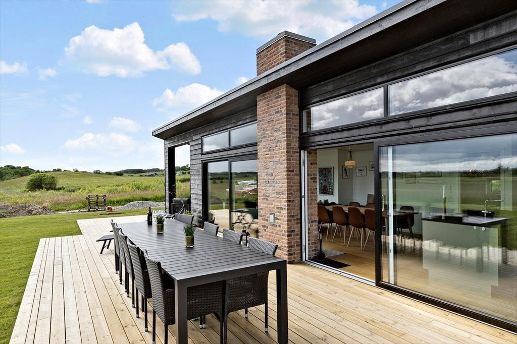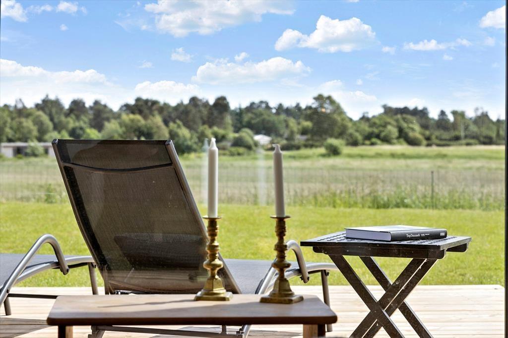 Das Haus liegt am Ende einer ruhigen Straße und bietet einen Blick über Felder und Wald. Es sind nur 500 Meter bis zum Meer, also kann der Abendspaziergang leicht in diese Richtung führen. Es gibt sowohl eine überdachte Terrasse als auch offene Terrassen, sodass auch hier die Rahmenbedingungen für einen schönen Urlaub gegeben sind. Und sobald die Kohle im Grill knistert, wird auch das zur abendlichen Gemütlichkeit im Freien beitragen. 200 Meter vom Haus entfernt gibt es ein Frühstücks- und Mittagscafé. Sie können dort auch Frühstück zum Mitnehmen und Eis kaufen - wenn Sie mögen.