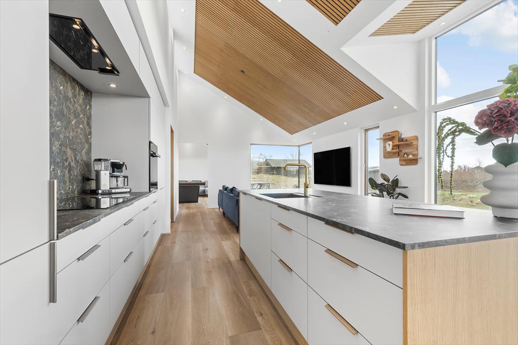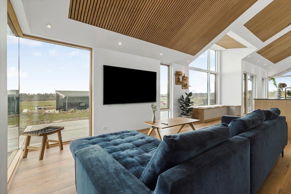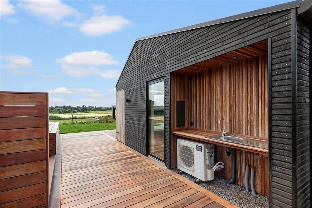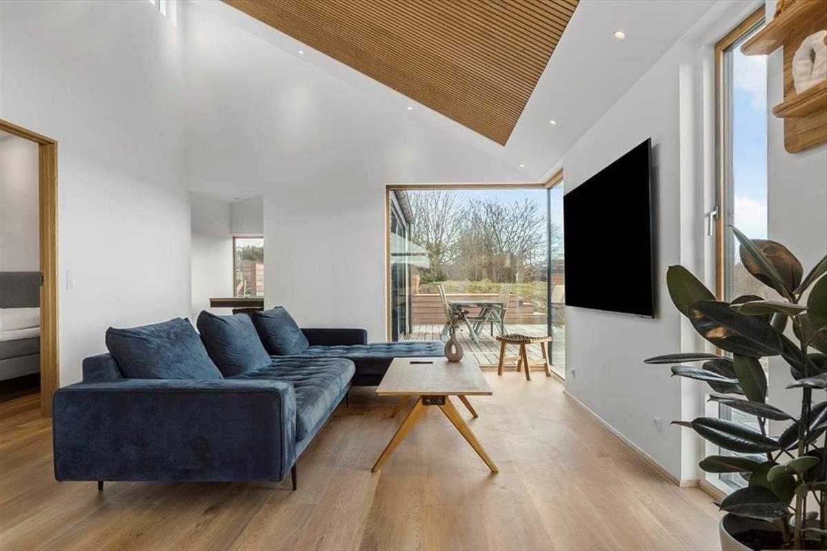 Freue dich bereits jetzt auf fantastische Urlaubstage in diesem ganz neuen, modernen Ferienhaus für sechs Personen, das nur 500 Meter vom schönen Dråby Strand trennen. Dein Ferienhaus bietet viel Platz für erholsame Stunden und das wertvolle Beisammensein mit deinen Liebsten - ganz gleich, ob ihr eine gemeinsame Mahlzeit am Esstisch genießen, euch im Aktivitätsraum vergnügen oder entspannte Stunden in der Sonne auf der Terrasse verleben möchtet.