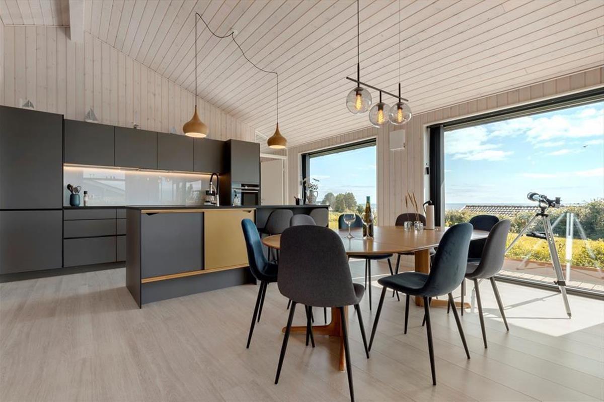 Dieses neuere Ferienhaus (2020) ist wirklich ein Genuss. Das Haus liegt hoch und bietet eine sehr schöne und ungehinderte Aussicht auf das Wasser. Es ist möglich, die Ostsee von allen Räumen im Haus zu sehen, mit Ausnahme von einem der drei Schlafzimmer. Im Hauptschlafzimmer jedoch erwachst du mit einem herrlichen Blick auf das Meer. Das Wohnzimmer und die Küche sind offen miteinander verbunden, sodass alle zusammen sein können, egal ob du gerade kochst oder jemand ein Spiel spielen möchte. Die Küche enthält alles, was du dir zum Kochen, Backen oder für andere Indoor-Aktivitäten wünschen könntest.