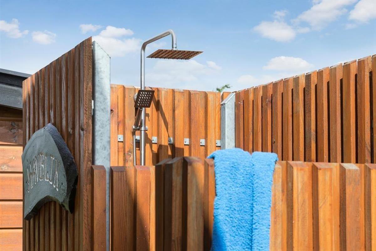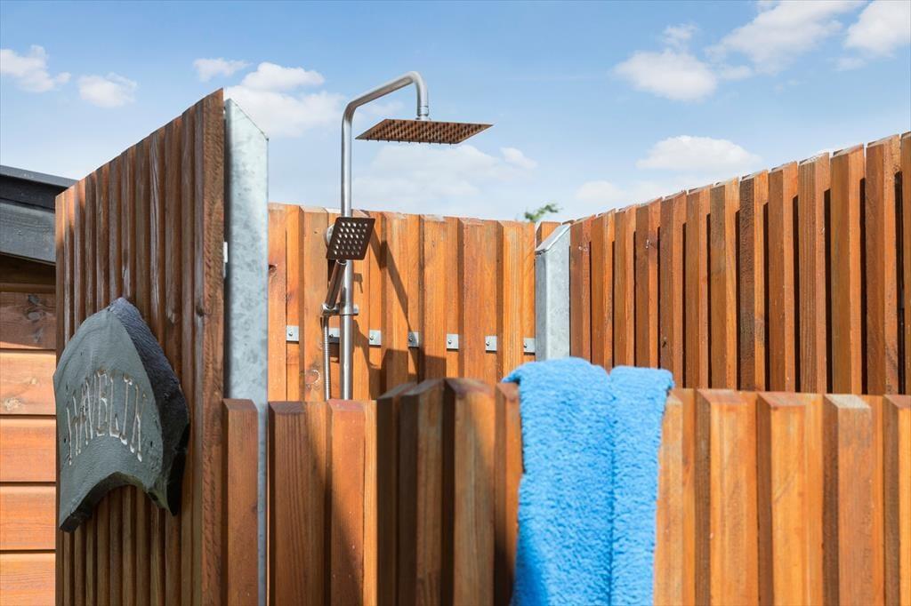 Das Haus ist wunderschön hoch gelegen am Ende einer ruhigen Straße mit fantastischer Aussicht. Etwa 20 m² der Terrasse sind überdacht, sodass du hier gemütlich sitzen kannst, auch, wenn das Wetter sich nicht von seiner besten Seite zeigen sollte. Der Grill ermöglicht es, draußen leckeres Essen zuzubereiten. Die ganze Familie kann hier gemütlich essen, sowohl drinnen als auch draußen. Solltest du Lust haben, an der frischen Luft zu duschen, so ist das hier möglich.