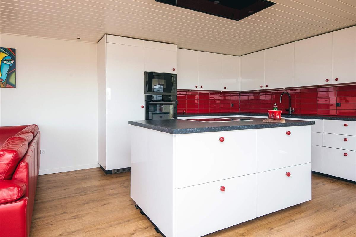 Küche: Ofen, Kühlschr., Mikrow., induktionskomfur, Kaffeem., Spülm.