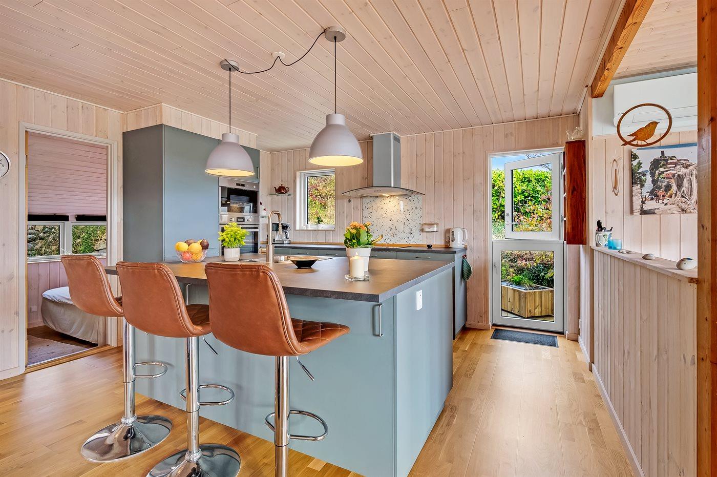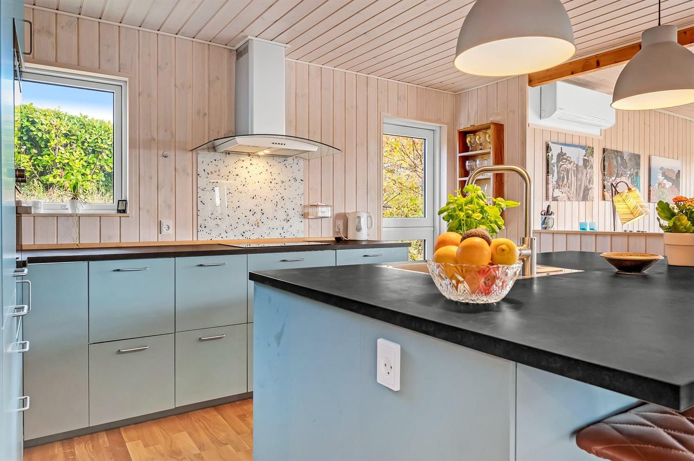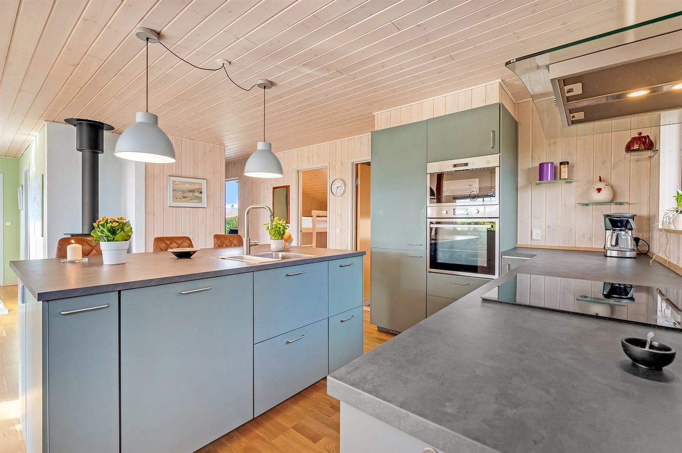 De keuken is uitgerust met koelkast Er is 4 inductiekookplaten, heteluchtoven, magnetron en vaatwasser.