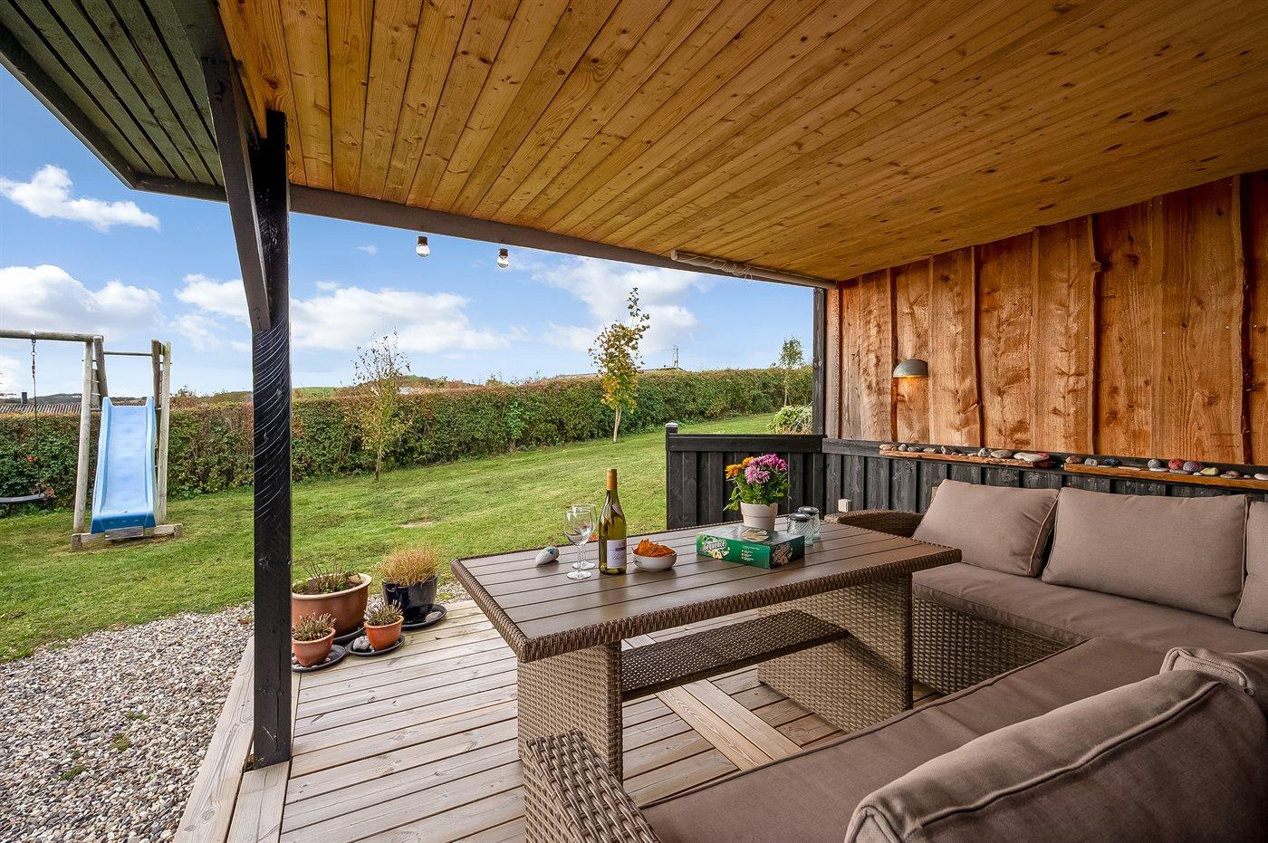 Gezellig vakantiehuis in Dråby, Denemarken, met tuin, terras en speeltoestellen vlakbij zee.