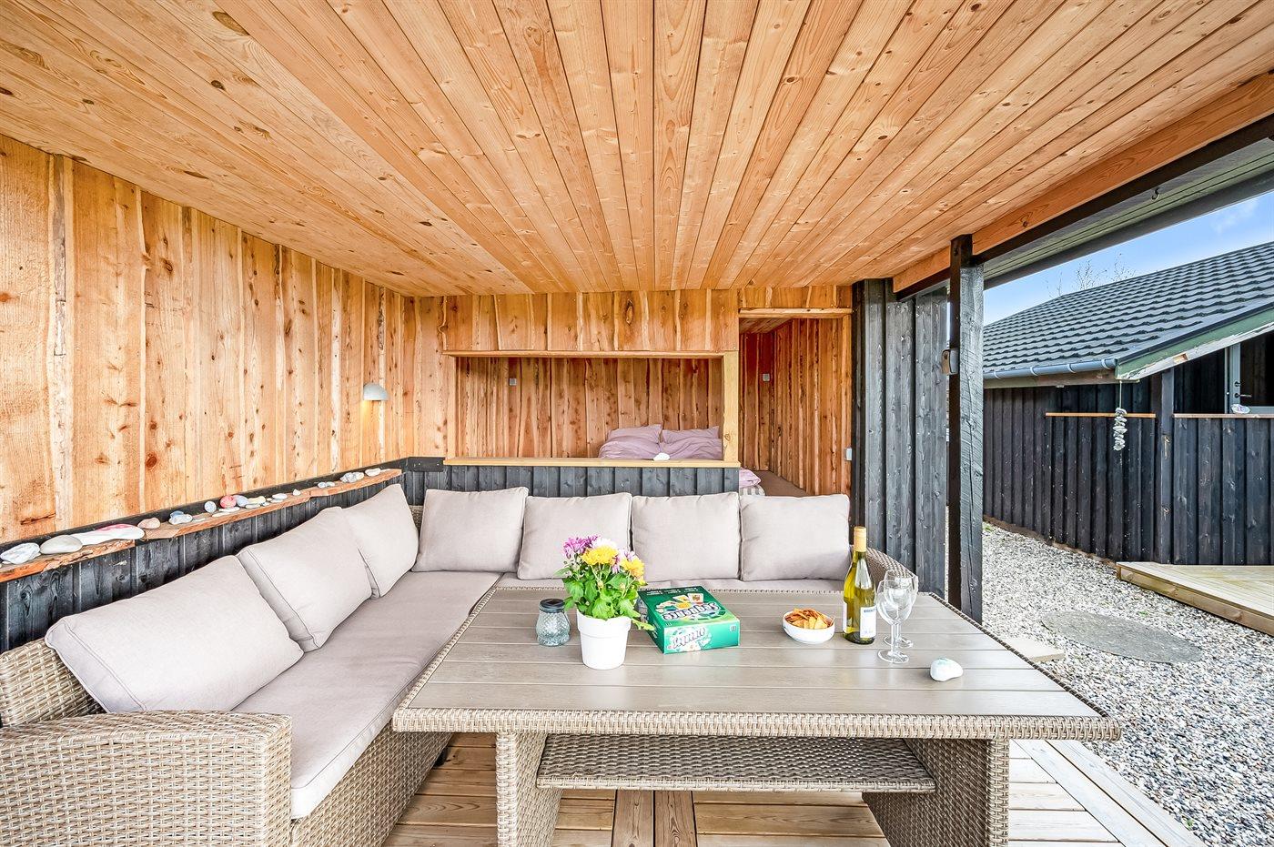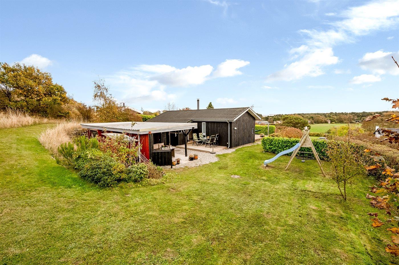 De vakantiewoning is gelegen op een 1400 m² groot aangelegde tuin. Afstand tot de zee 600 m. Dichtstbijzijnde winkel 3500 m. Bij de vakantiewoning hoort terras. Daarnaast is er een overdekt terras. Schommel. Trampoline. Glijbaan. Shelter. Barbecue. Parkeerplaats bij het huis.