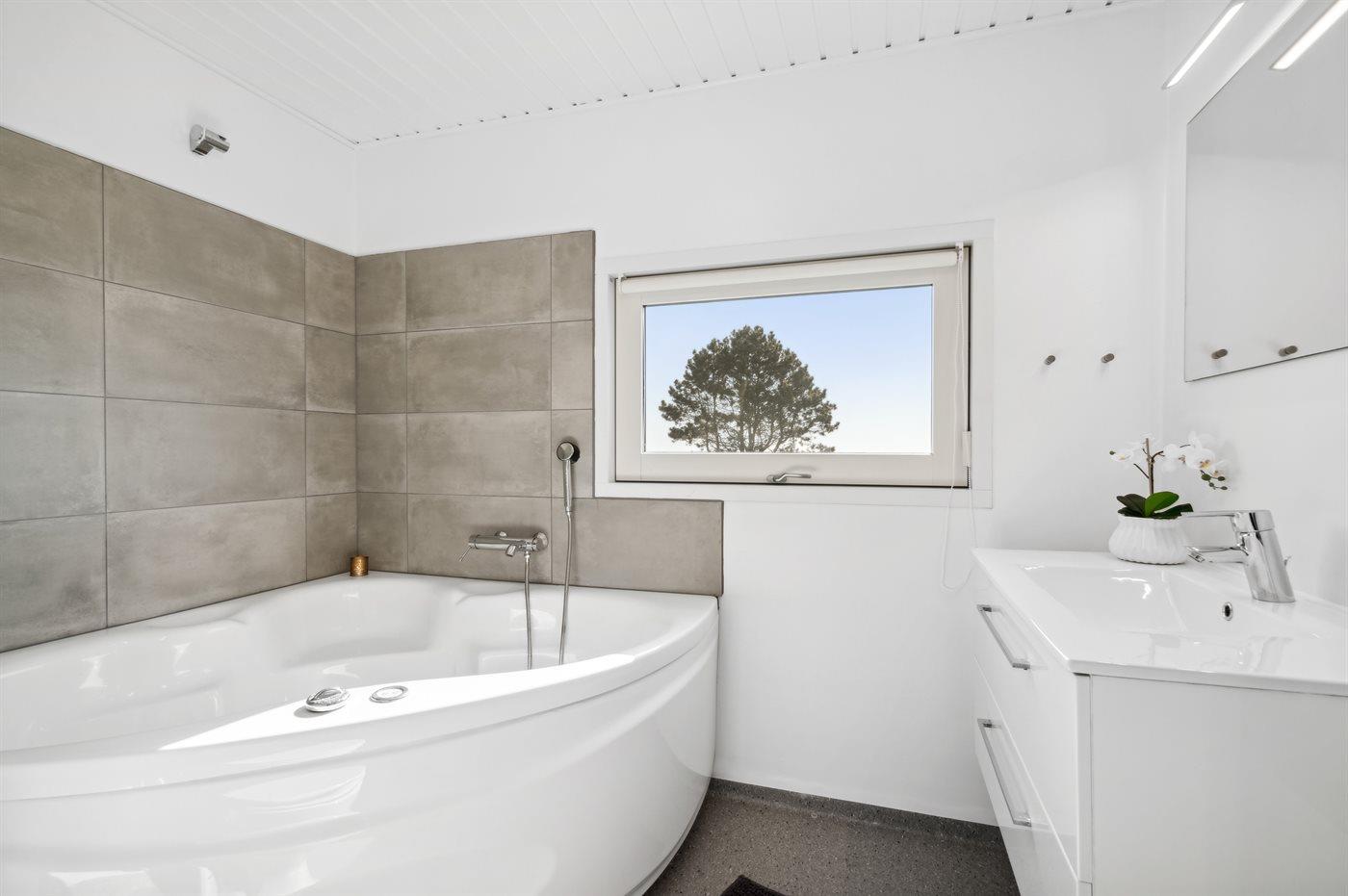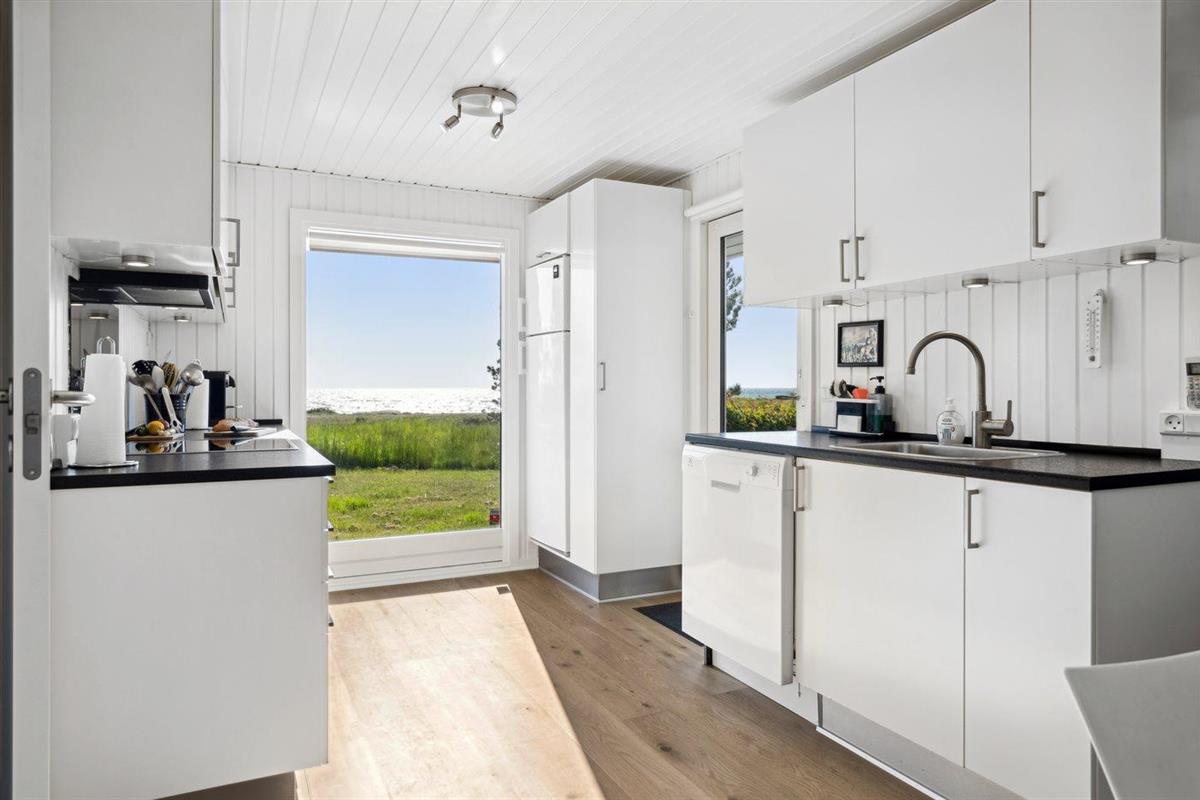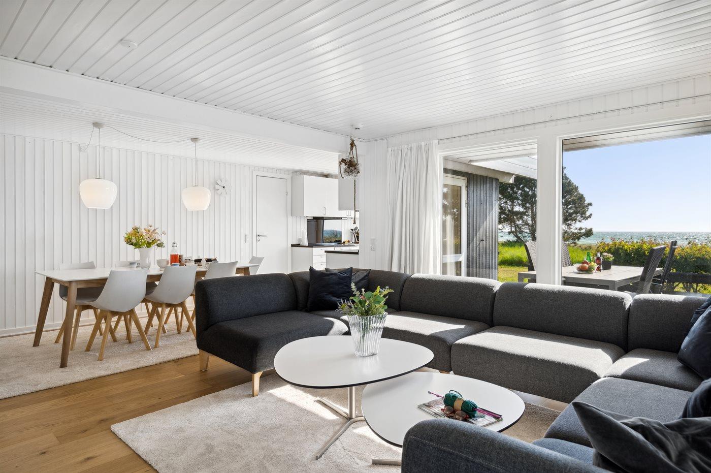 Modern vakantiehuis met zeezicht, bubbelbad, en elektrische laadpaal in Ebeltoft, Denemarken.