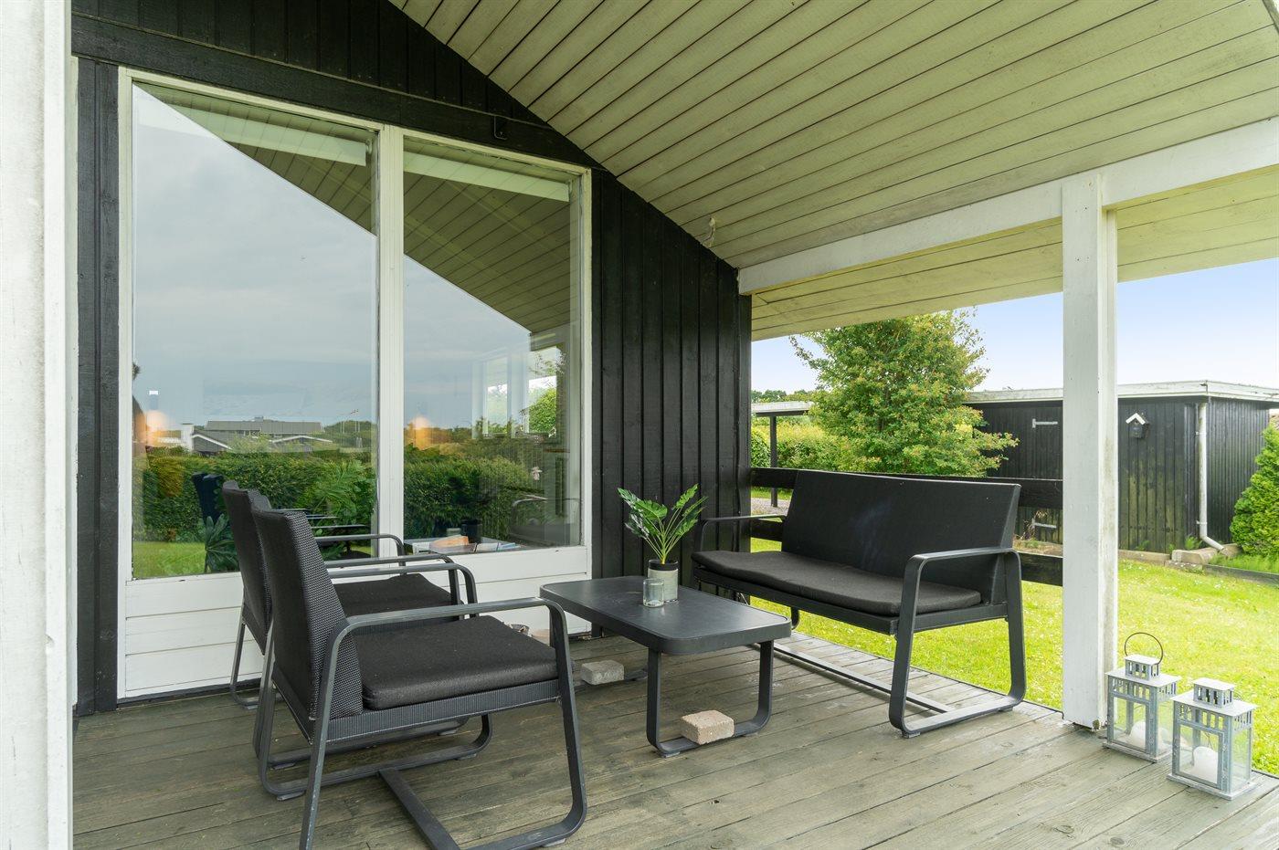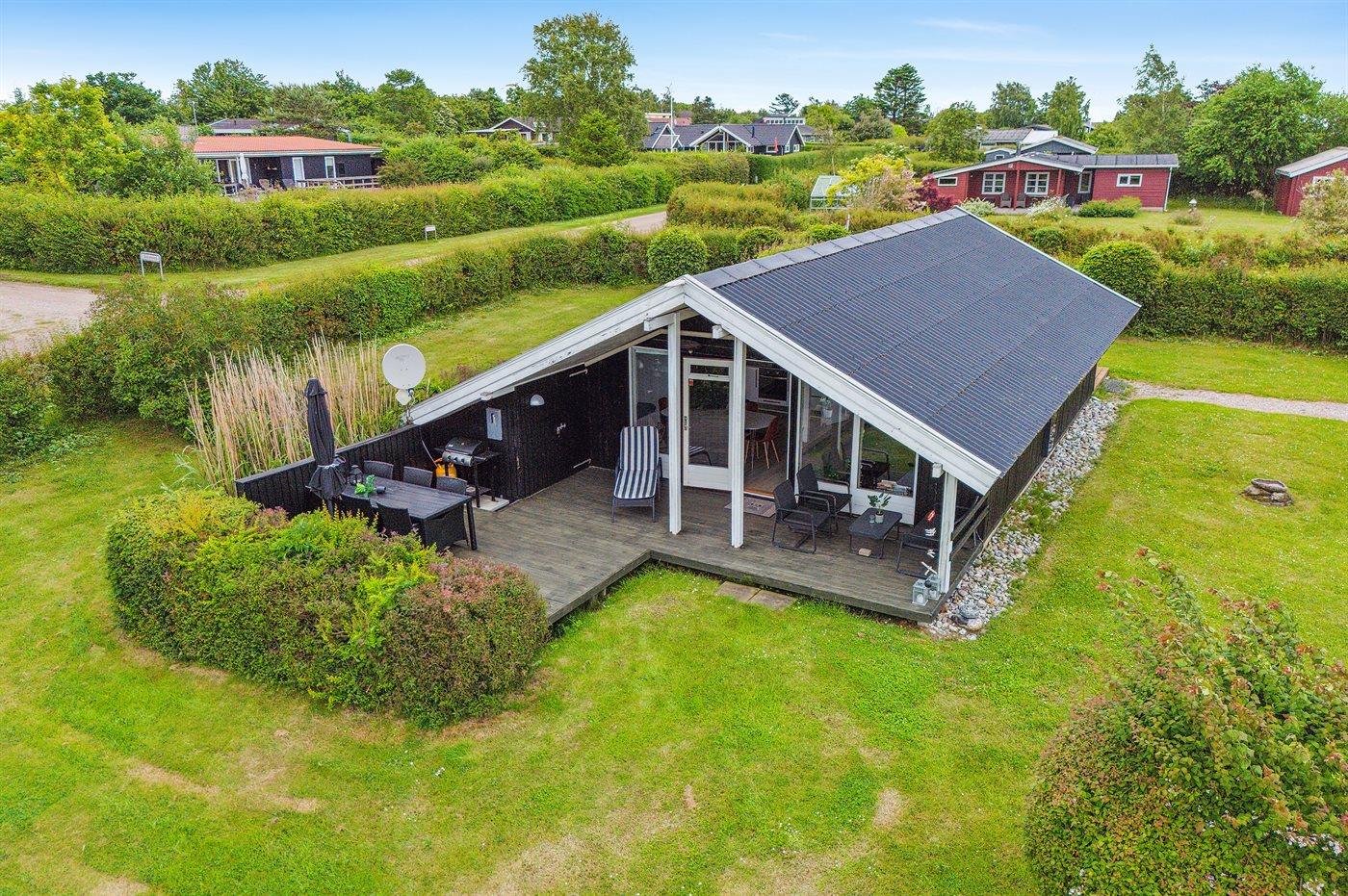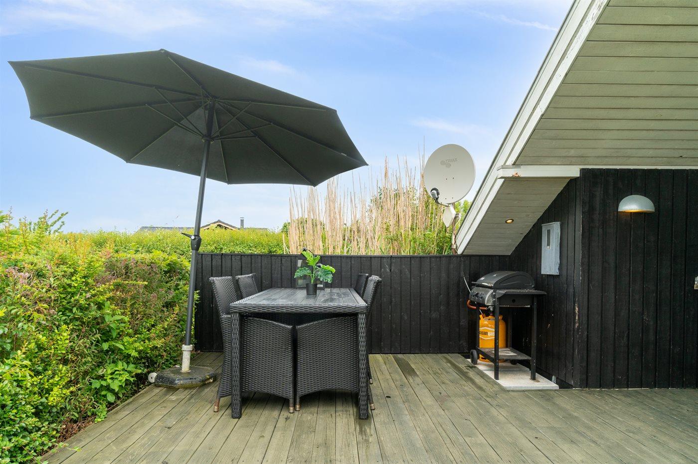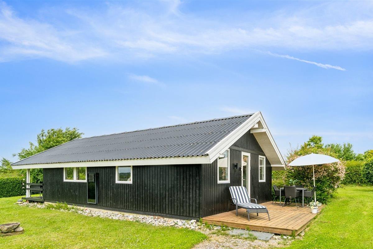 Modern vakantiehuis in Ebeltoft met 3 slaapkamers, dichtbij zee en voorzien van terras, trampoline en barbecue.