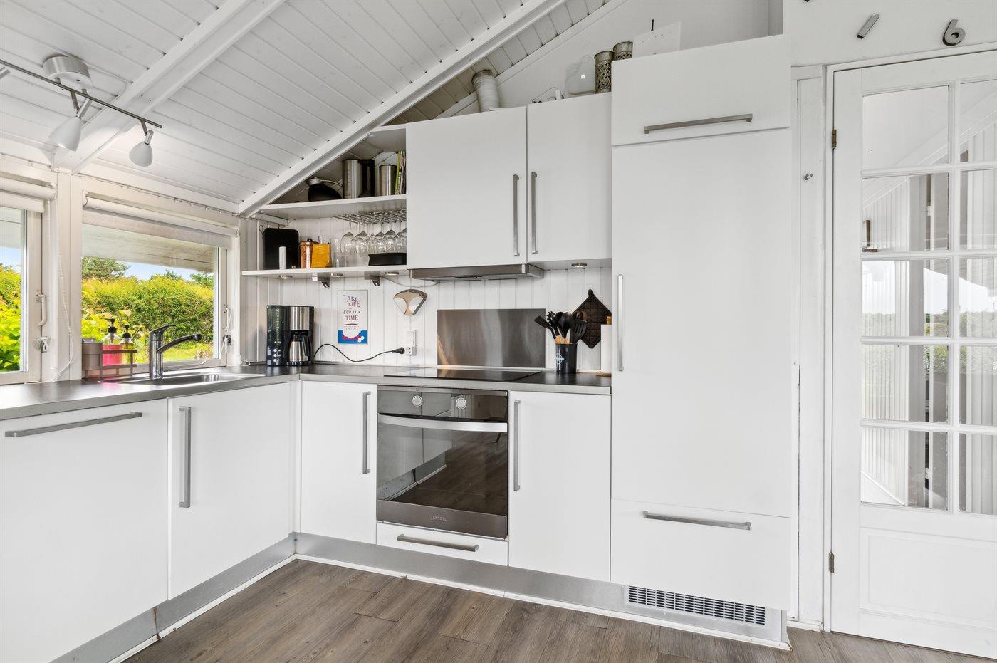 De keuken is uitgerust met koelkast Er zijn 4 keramische kookplaten, heteluchtoven, magnetron en vaatwasser.