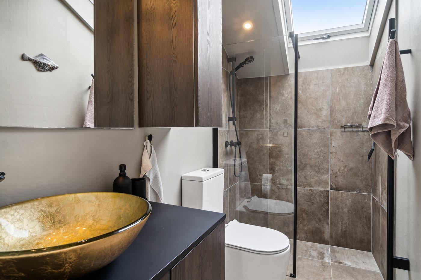 Er is 1 badkamer met douchehok en 1 toilet.. Er is vloerverwarming in 1 badkamer.