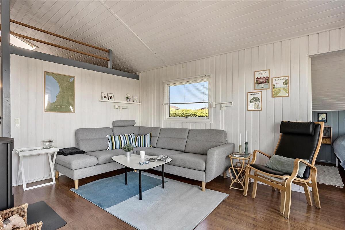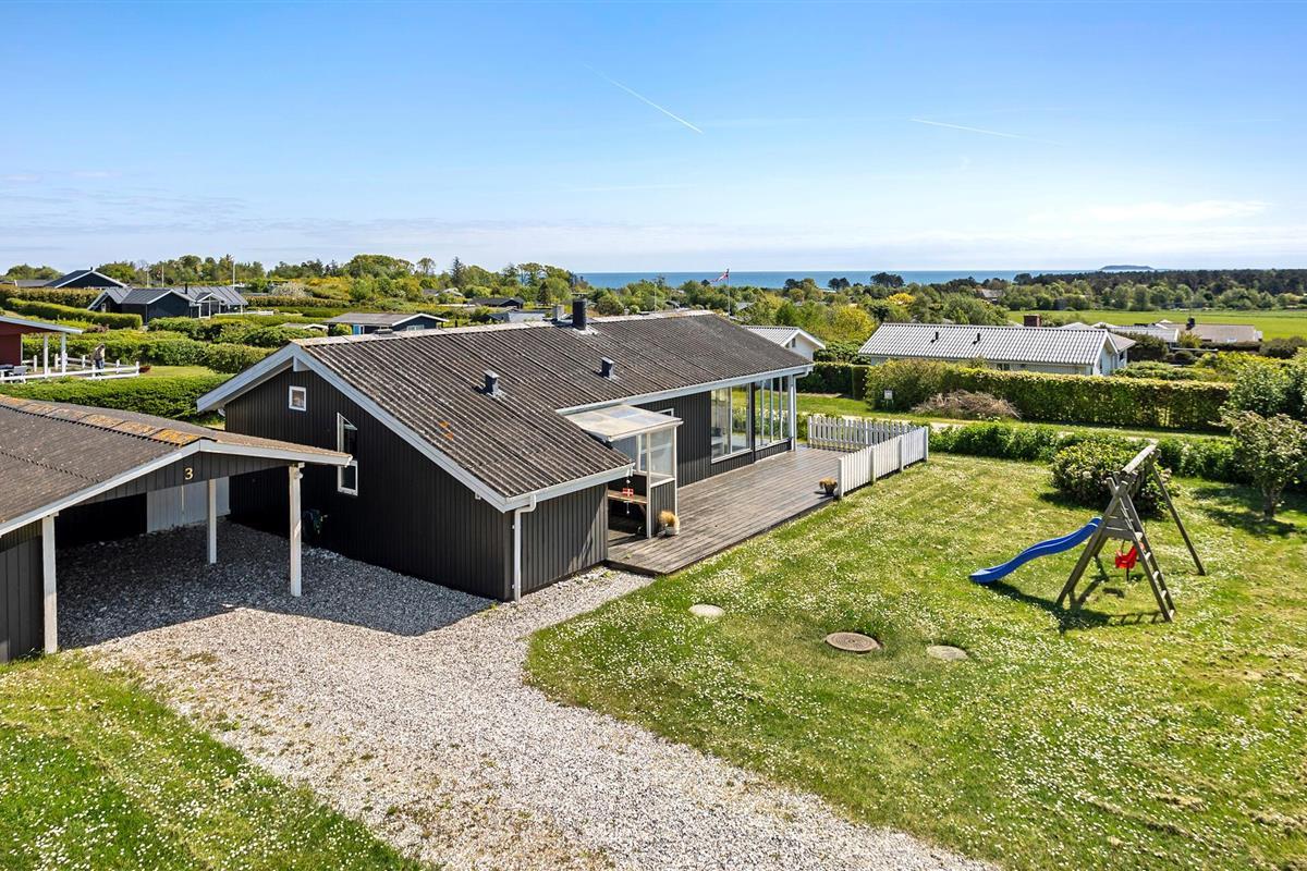 Mooie houten vakantiewoning met zeezicht, sauna en moderne keuken nabij Dråby Strand.