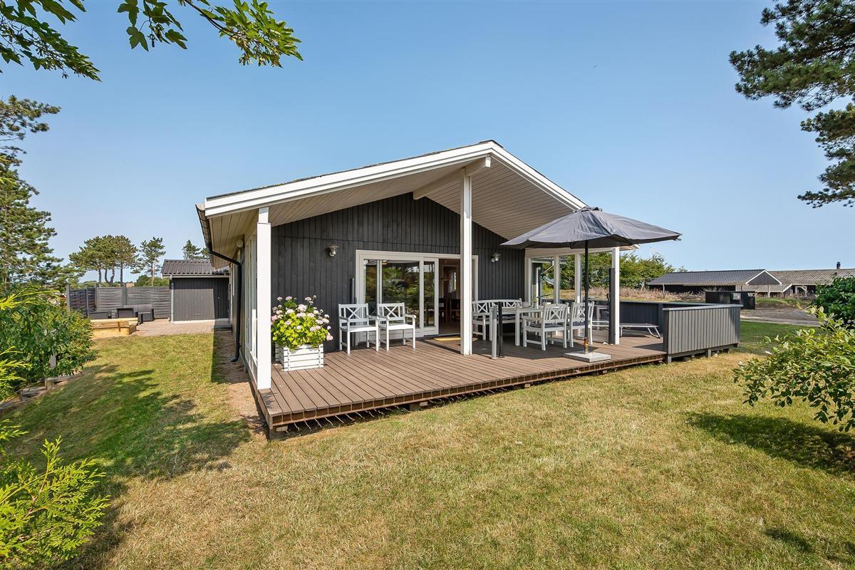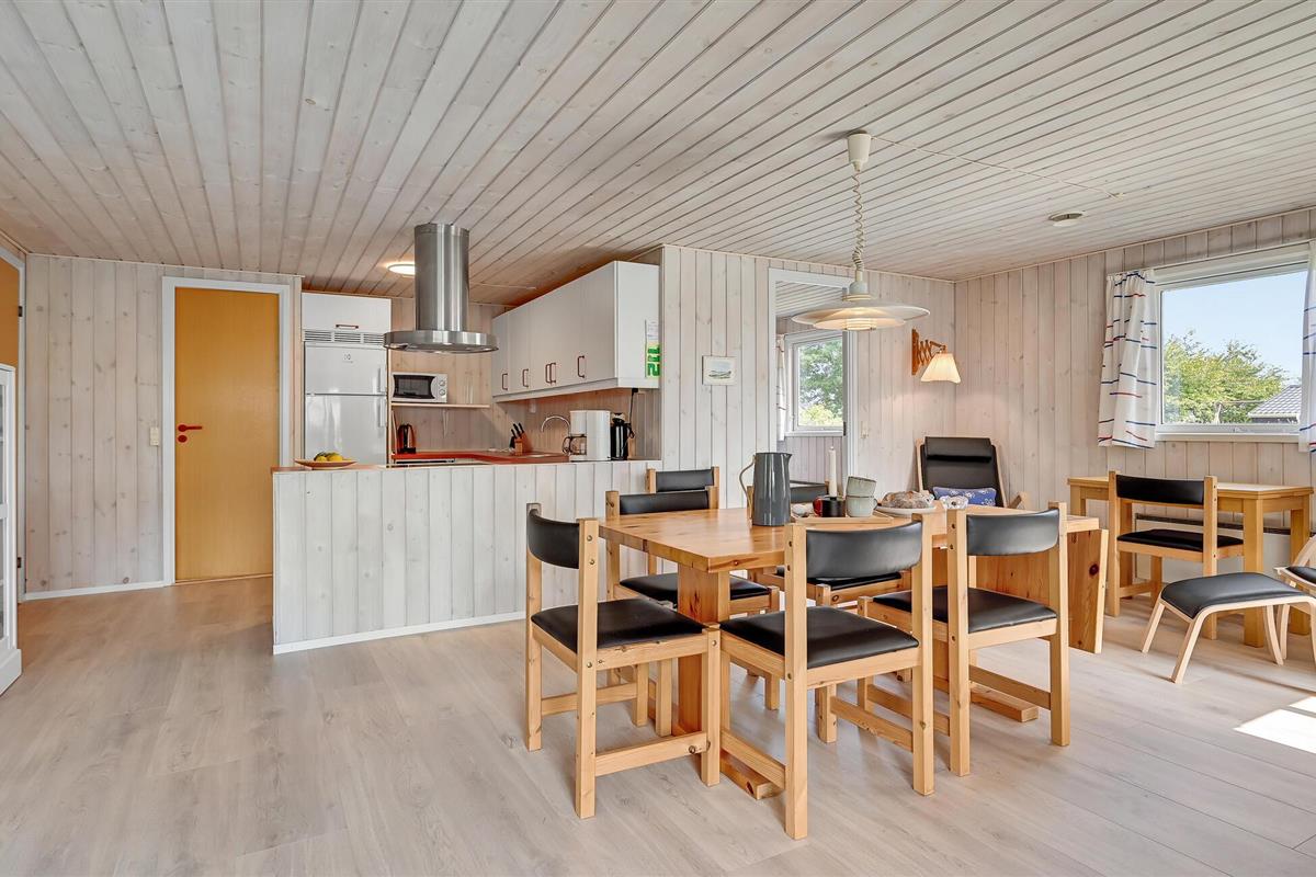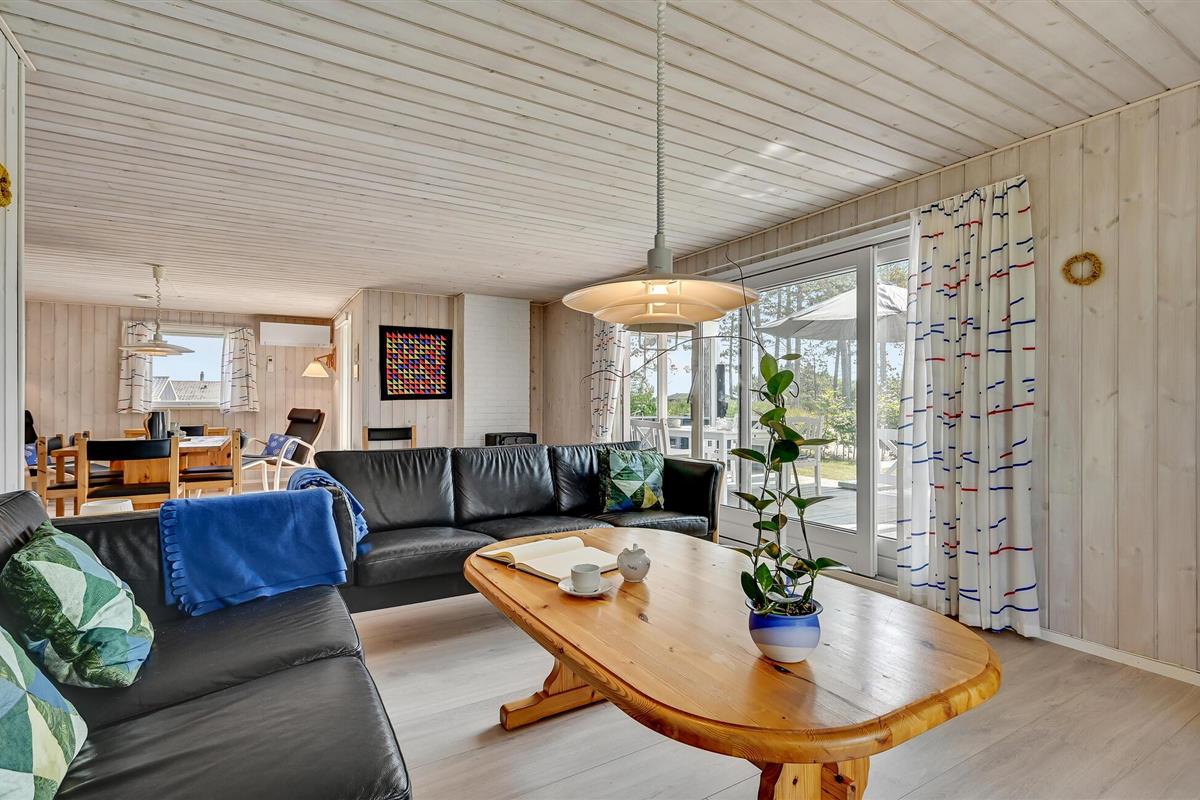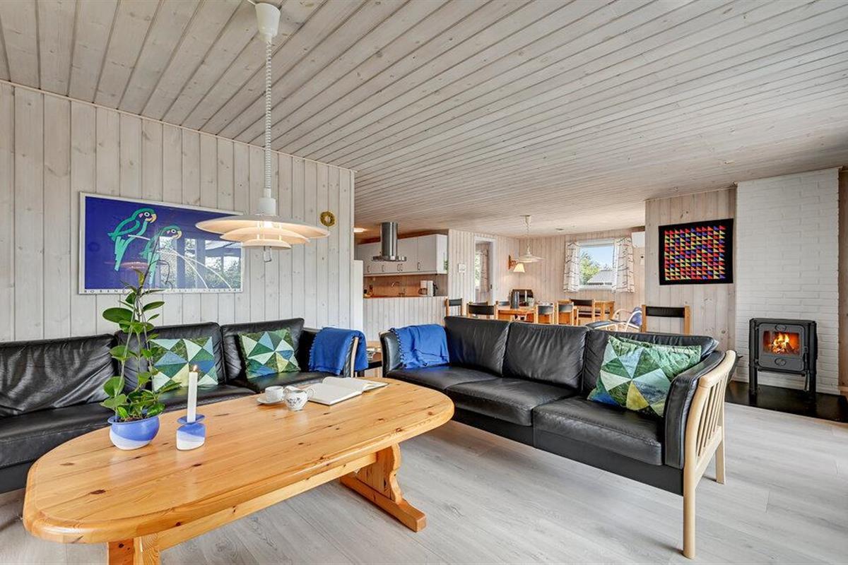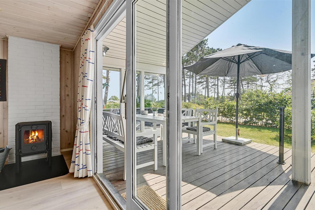Welkom in dit mooie vakantiehuis bij de zee en fantastische natuur. Vanaf het grote houten terras heeft u een prachtig uitzicht over het water, waar u in de verte het eiland Hjelmen kunt zien liggen. Het hart van het huis is de mooie woonkamer met open keuken, eethoek en open haard, waar u gezellige avonden samen kunt doorbrengen. Voor vermaak op dagen met koelere temperaturen is het vakantiehuis uitgerust met een snelle glasvezelverbinding (50/50 mbit).