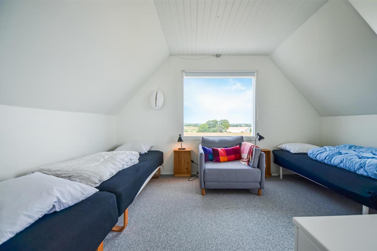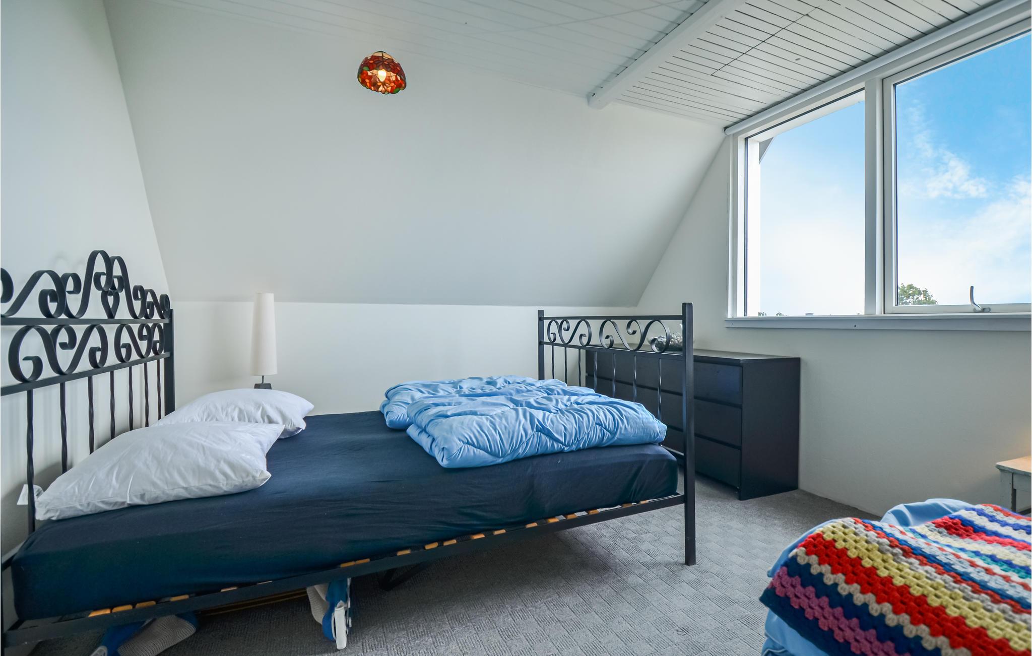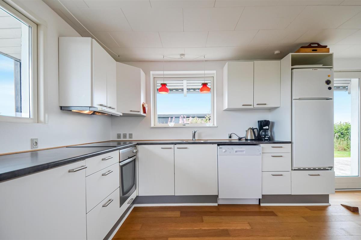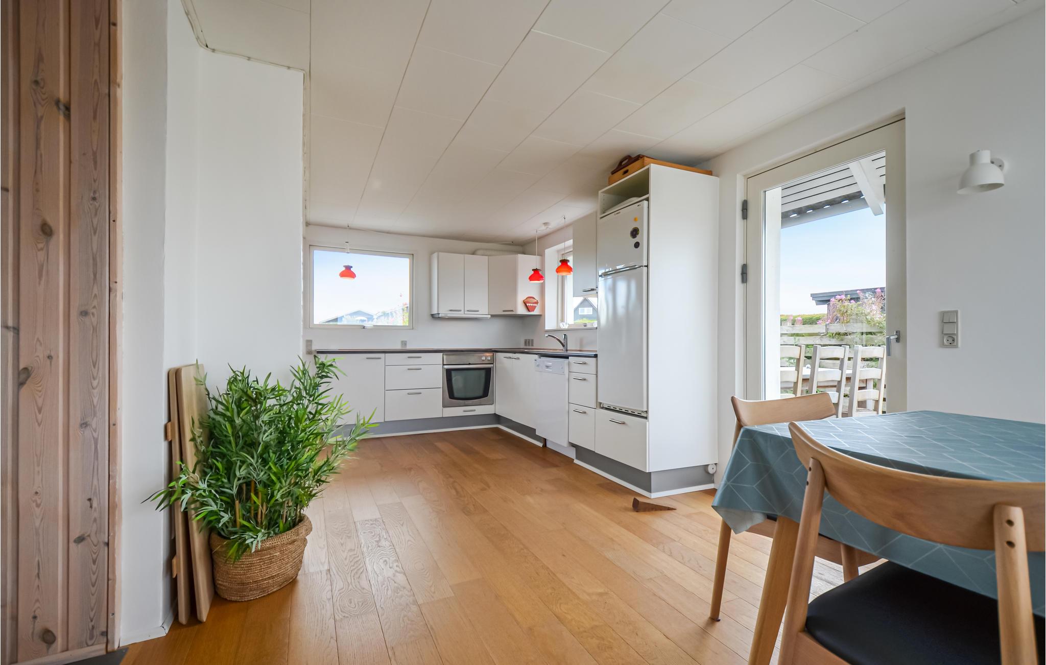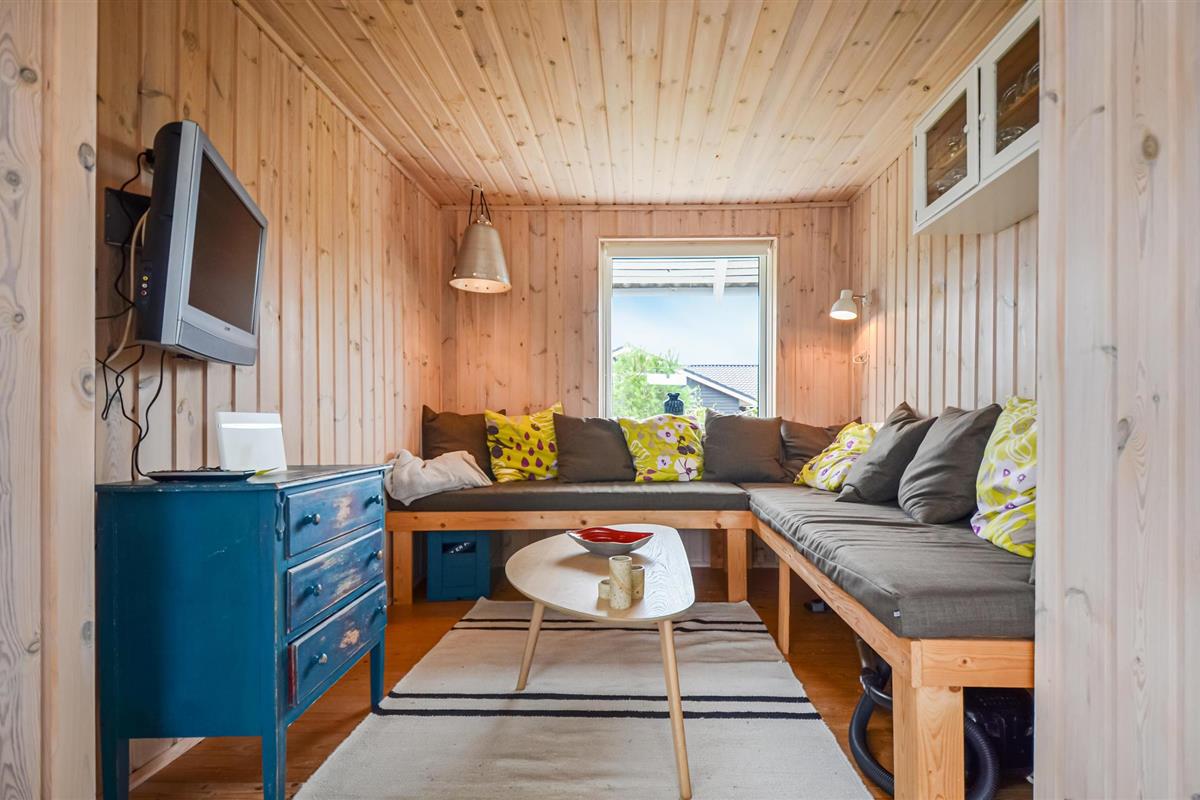 Het vakantiehuis op twee niveaus ligt in de buurt van het strand van Dråby, dat bekend staat als goed vis- en zwemwater. Op de eerste verdieping zijn er twee lichte kamers met uitzicht op de velden, de zee en de Jernhatten. Op de begane grond is een natuurlijke ontmoetingsplek met een open verbinding tussen de keuken, eethoek en kleine tv-lounge. Het grote gevelraam laat het licht binnen en biedt uitzicht op zee en op de prachtige natuur die kronkelt in het klassieke heuvellandschap. De charmante houtkachel verspreidt warmte en gezelligheid.