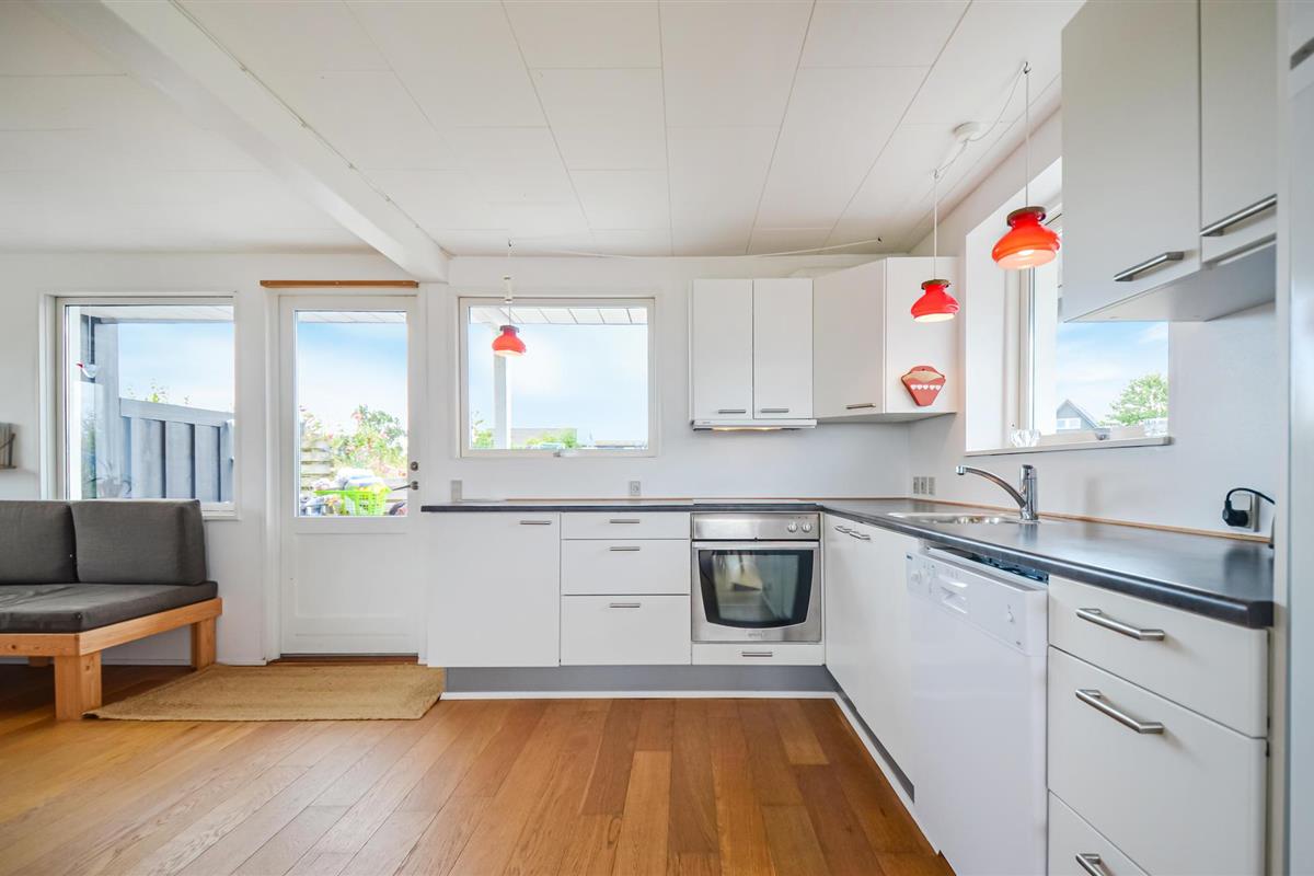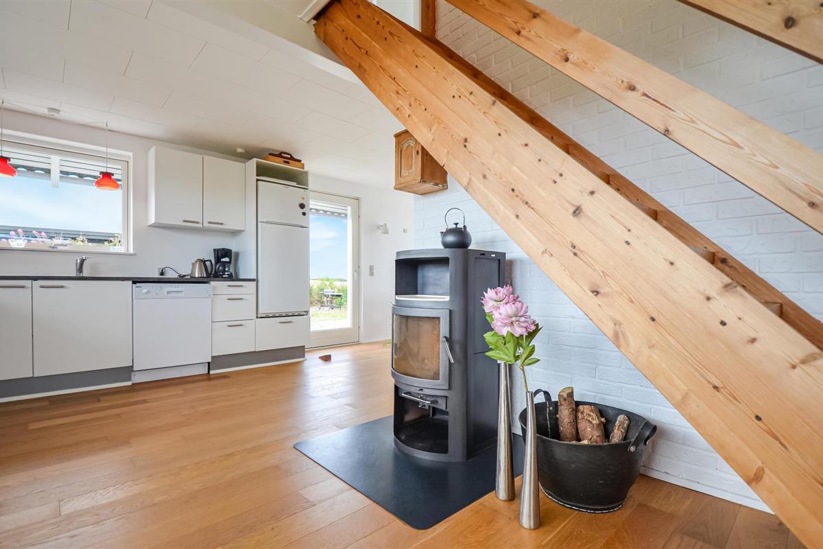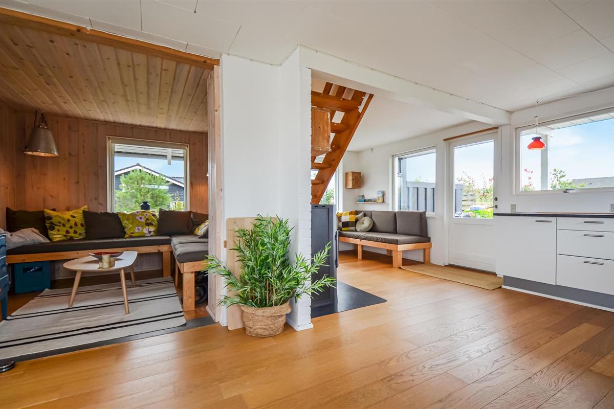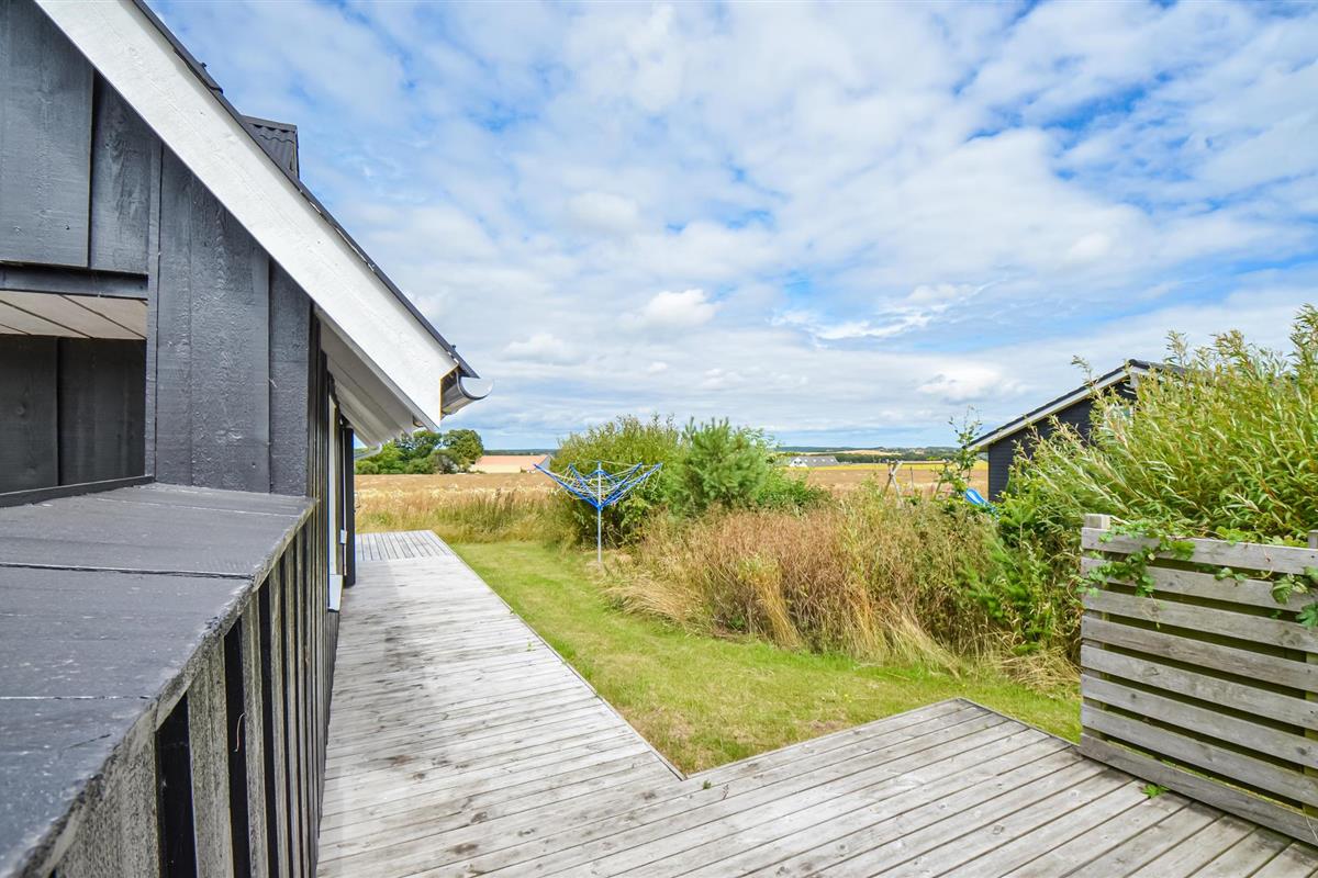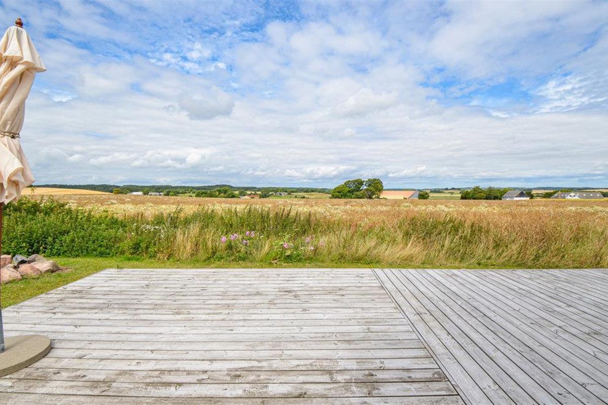Charmant vakantiehuis nabij Dråby Strand met zeezicht, houten terras en volop natuur- en recreatiemogelijkheden.
