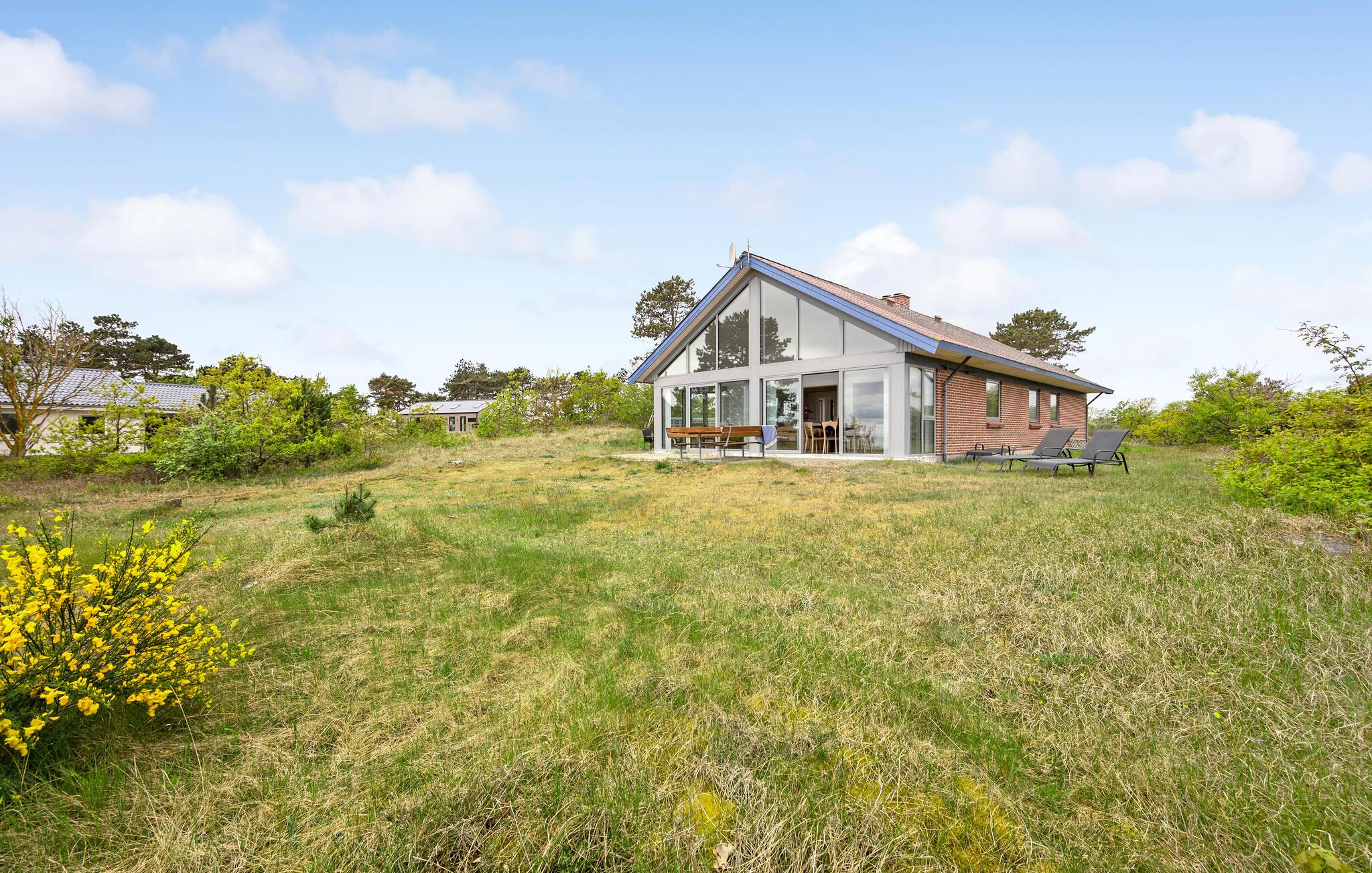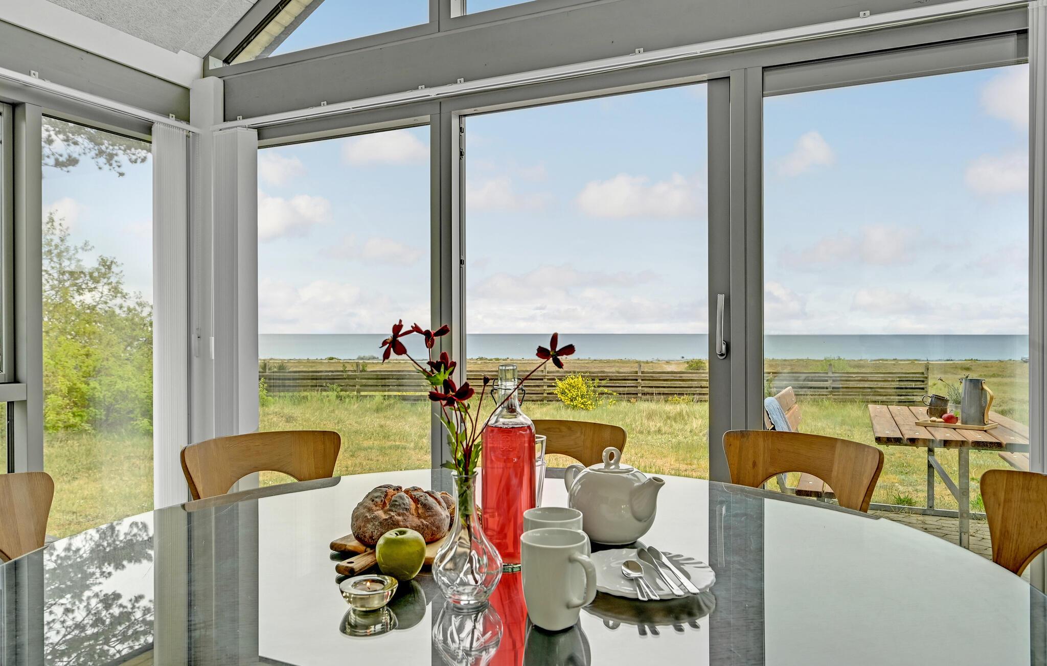 Geniet van een modern vakantiehuis met panoramisch uitzicht aan Dråby Strand, direct aan zee en dicht bij natuur en charmante stadjes.