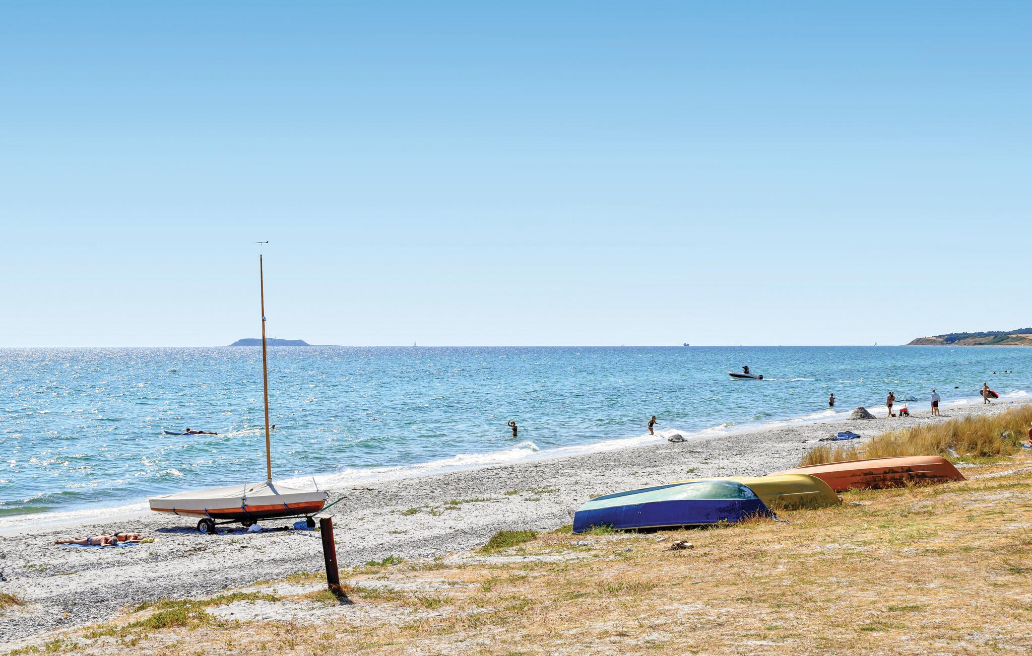 Het huis ligt dicht bij het strand, in een gebied dat bekend staat om zijn wilde natuur, heldere water en zandstranden. De kust biedt uitstekende mogelijkheden voor vissers, en je kunt direct vanuit het huis het water in voor een verfrissende duik wanneer je maar wilt. Als je zin hebt in een dagje uit, ben je vlakbij Ebeltoft, een charmant oud handelsstadje waarvan de belangrijkste attractie het fregat Jylland is. Verder naar het noorden nodigt Grenå je uit om de fascinerende onderwaterwereld te verkennen in het spannende Kattegat Centrum.