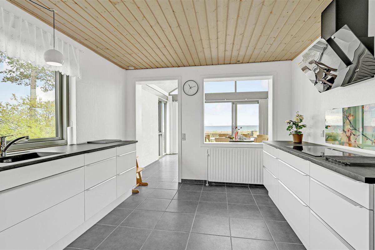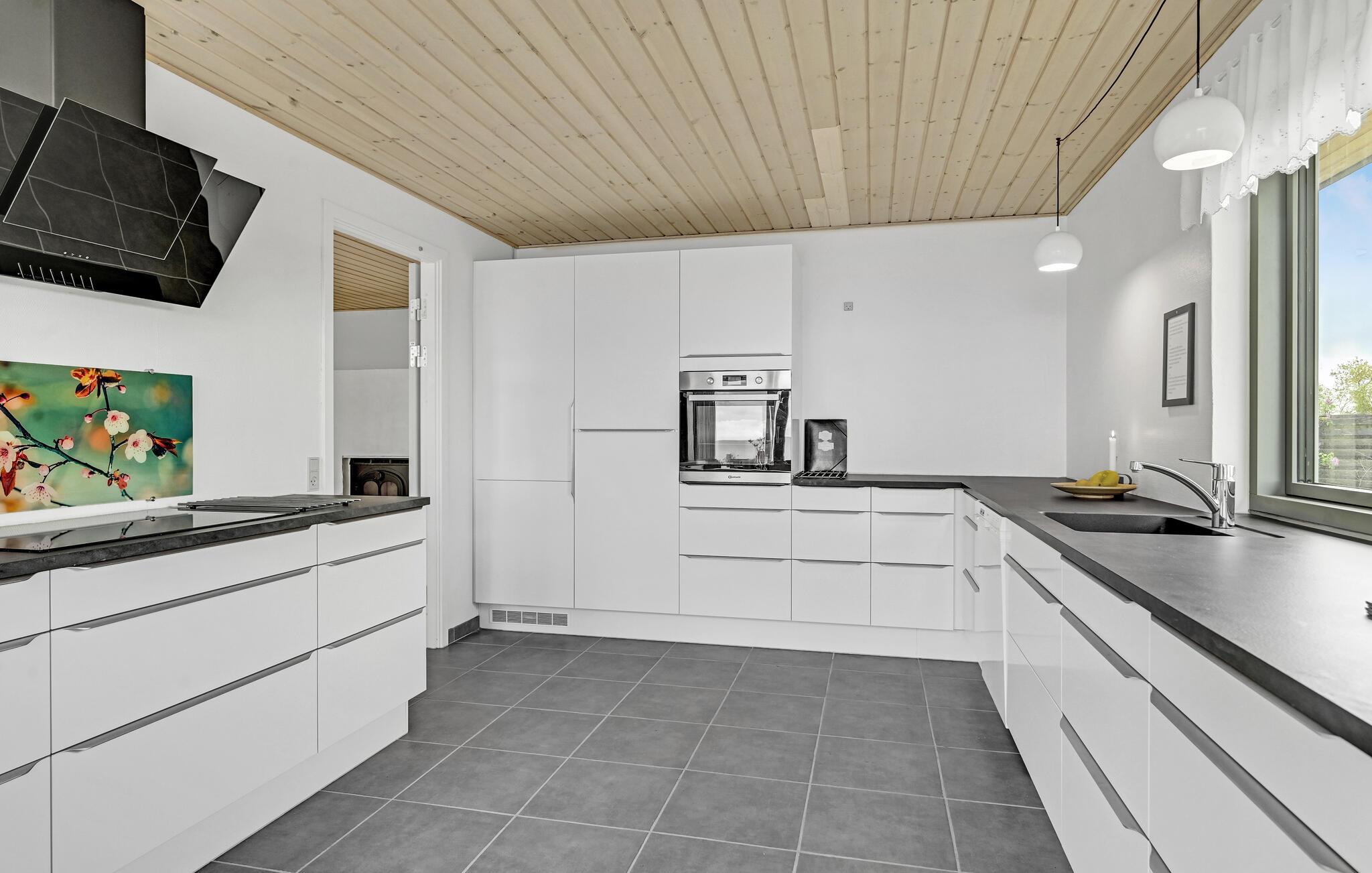 Verheug je op een heerlijke vakantie in dit uitnodigende vakantiehuis aan Dråby Strand met een modern, open interieur en heldere kleuren. Vanuit de woonkamer kun je genieten van een fantastisch uitzicht door de grote ramen. Je kunt ook genieten van het uitzicht op de golven terwijl je kookt in de goed uitgeruste keuken. s Avonds nodigt de gezellige zithoek je uit om je voeten omhoog te leggen en een film te kijken terwijl het vuur knettert in de houtkachel.