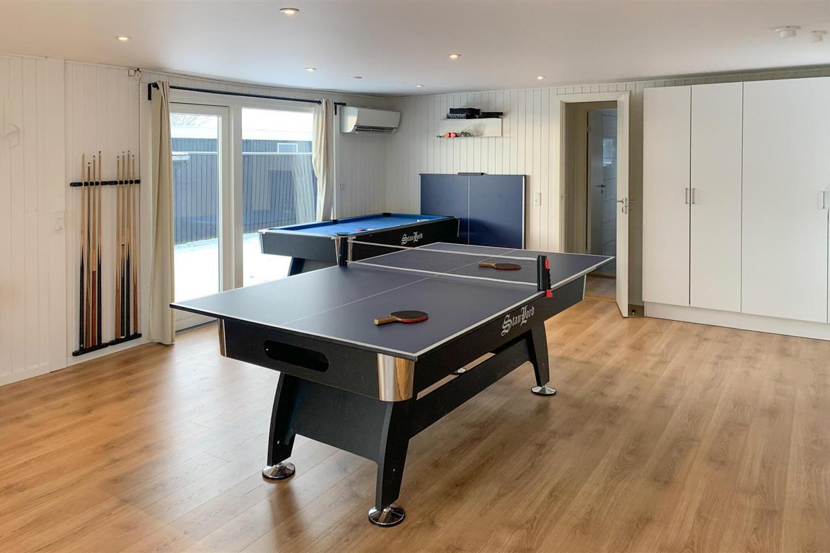 Vanuit de woonkamer heeft u toegang tot het terras, waar u 's ochtends kunt genieten van uw koffie met een prachtig uitzicht op zee of 's avonds kunt ontspannen in het Finse houten bad. Ook buiten vinden de kleintjes veel ruimte en verschillende kindvriendelijke faciliteiten voor plezier en spelletjes.