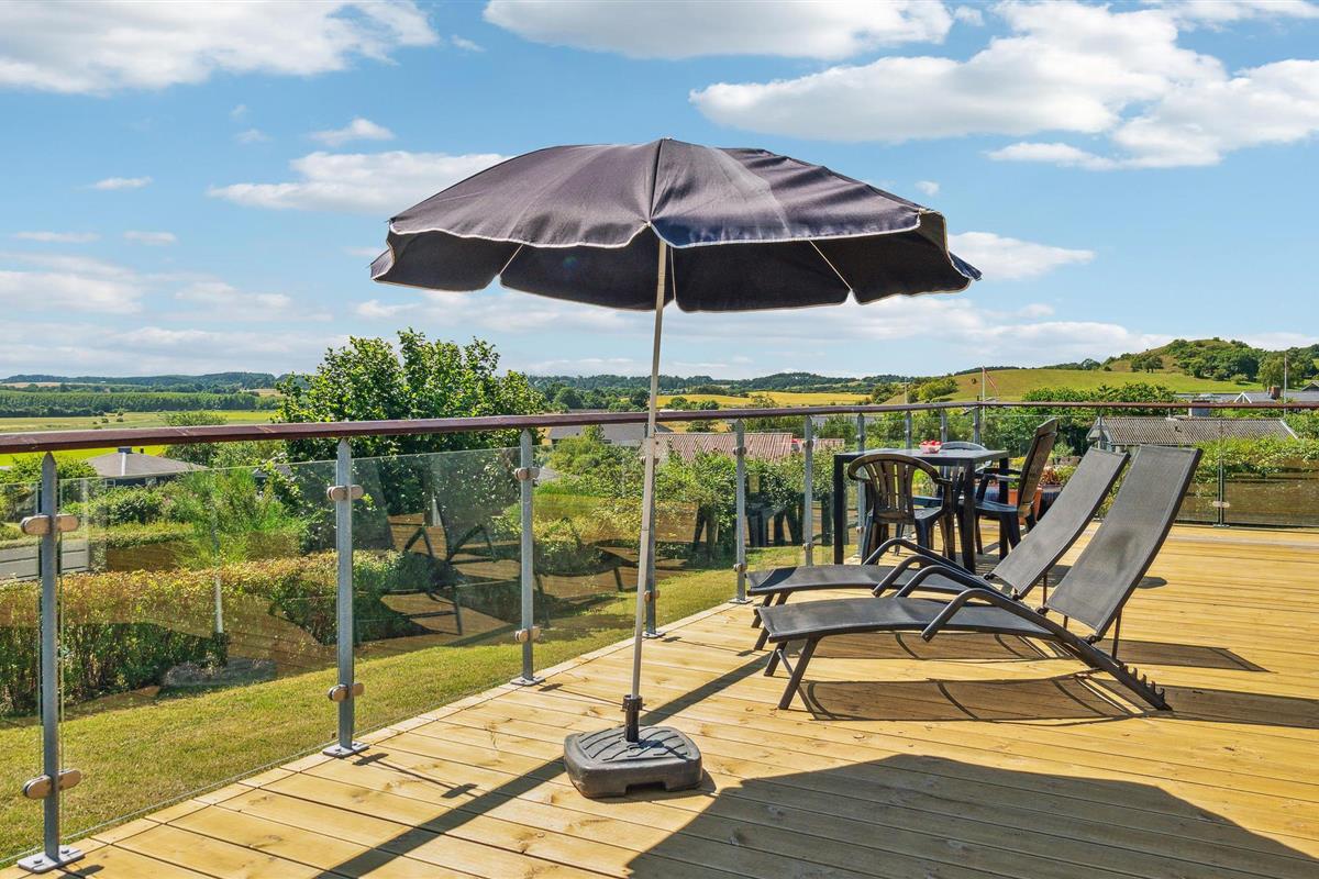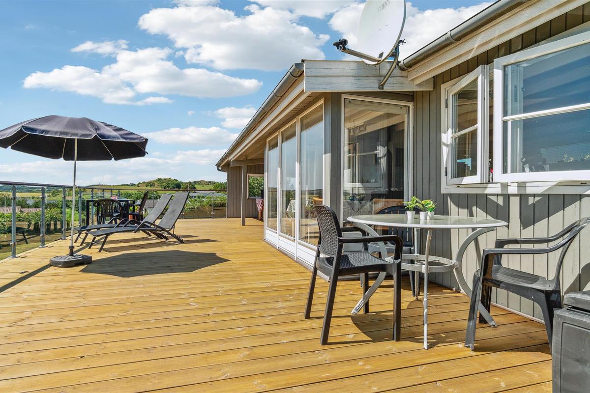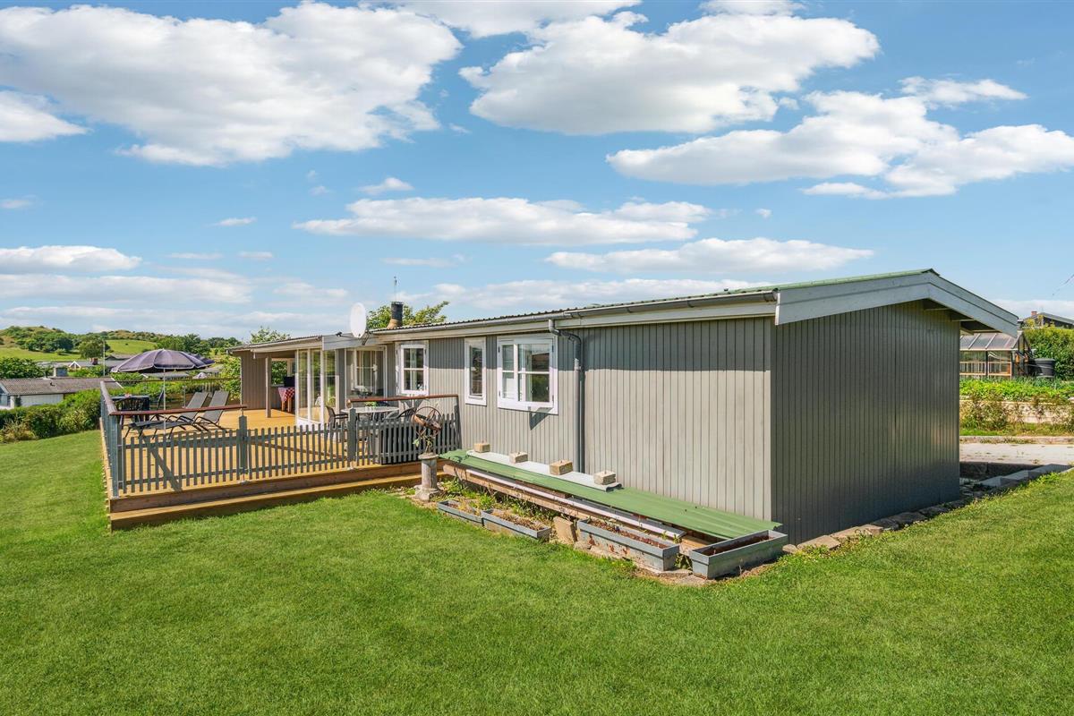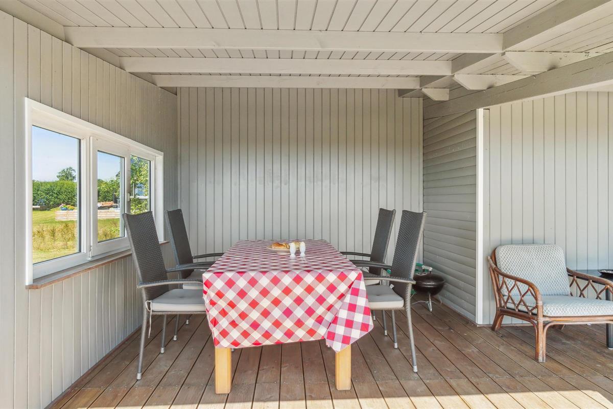 Modern en comfortabel vakantiehuis nabij het strand van Dråby met overdekt terras en veel ruimte voor het gezin.