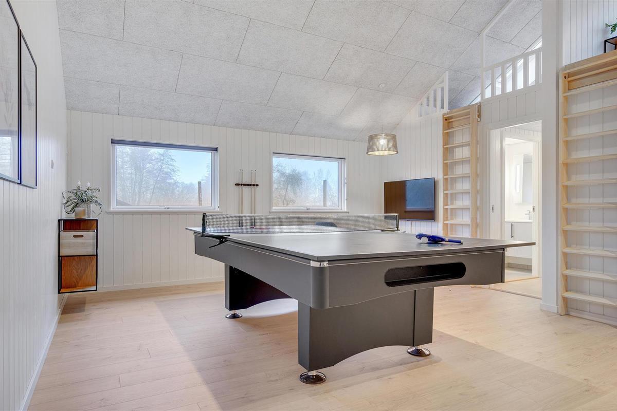 Buiten Jægerspris, in het dorp Over Dråby, vind je dit geweldige vakantiehuis met ruimte en comfort voor meerdere gezinnen. Veel plezier met tafelvoetbal, Playstation4 of daag elkaar uit voor een potje tafeltennis. Geniet van wellness in de sauna of buitenjacuzzi na een dag vol belevenissen.