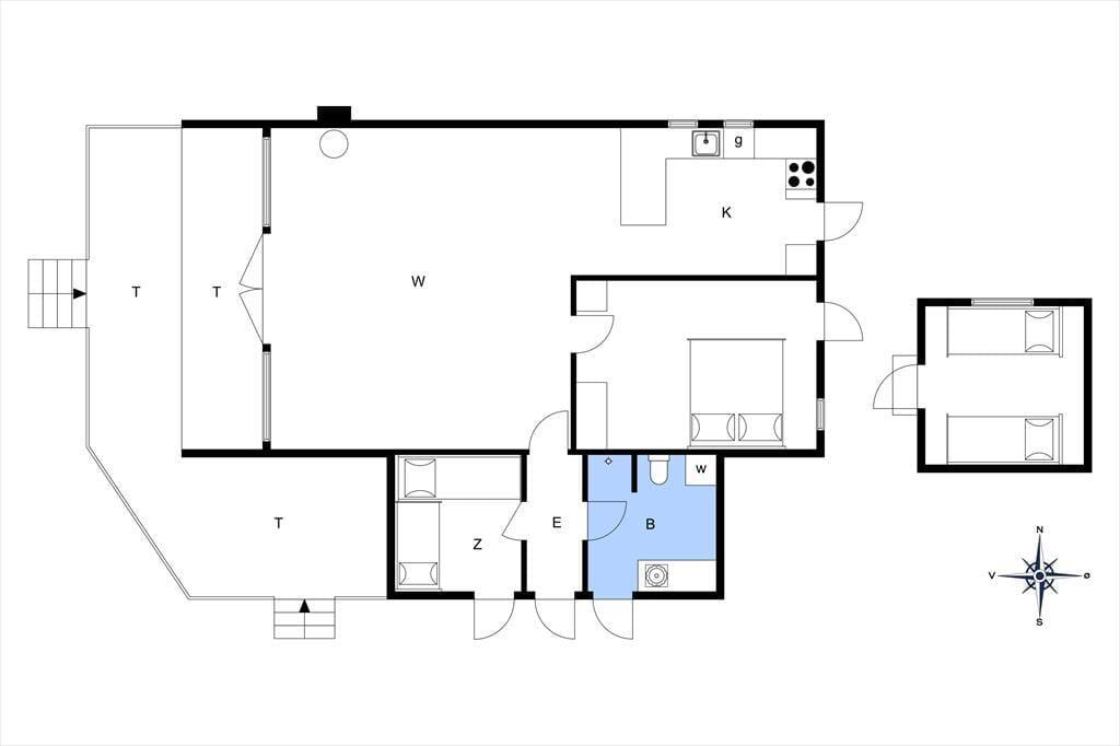 Das Ferienhaus begrüßt Sie mit einem offen kombinierten Küchen- und Wohnbereich. Die Küche beinhaltet einen Ceranfeldherd, einen Geschirrspüler und einen Kühlschrank mit Gefriermöglichkeit. Der schöne, helle Wohnraum verwöhnt mit hohen Decken und weißen Deckenbalken, mit einem Kaminofen, einem guten Essplatz, einem Sofa und Lehnstühlen sowie mit einem Fernseher, der dänische Sender und vier deutsche Programme empfängt. Der Fernseher ist mit Chromecast ausgerüstet und ermöglicht Ihnen das Streamen Ihrer eigenen privaten Streamingdienste. Das mit einem Fliesenboden versehene Badezimmer umfasst eine Duschnische und eine Waschmaschine. Ihnen stehen ein Schlafraum mit einem Doppelbett sowie ein Schlafraum mit zwei Einzelbetten zur Verfügung. Das Nebengebäude bietet zwei weitere Einzelbetten (NUR nutzbar in der Zeit vom 01.05. bis 03.09.). Im Wohnraum steht ein doppeltes Schlafsofa bereit.