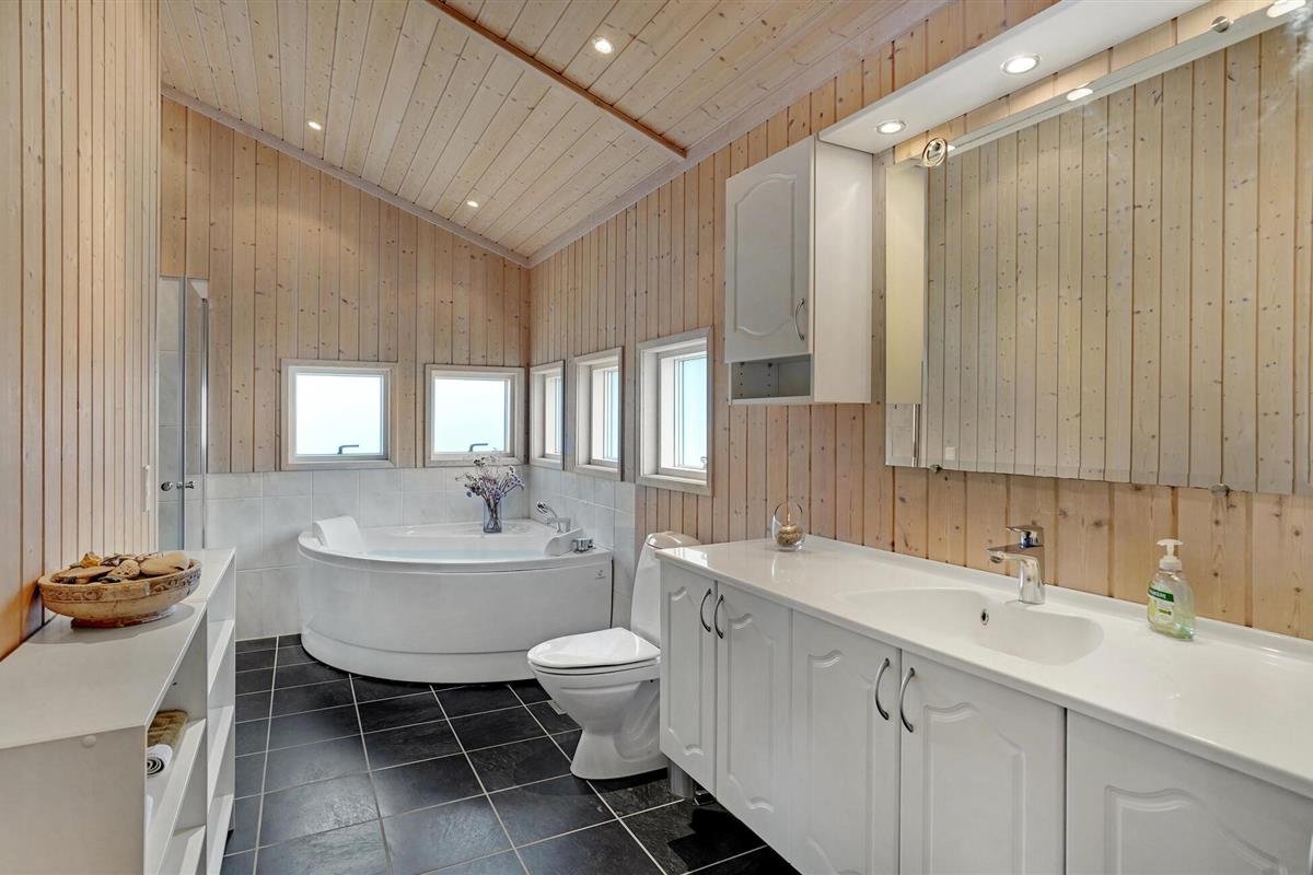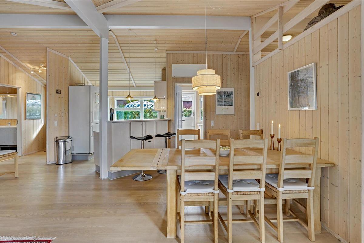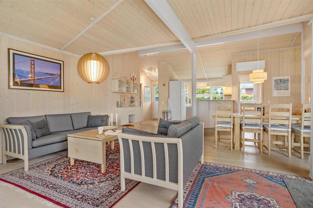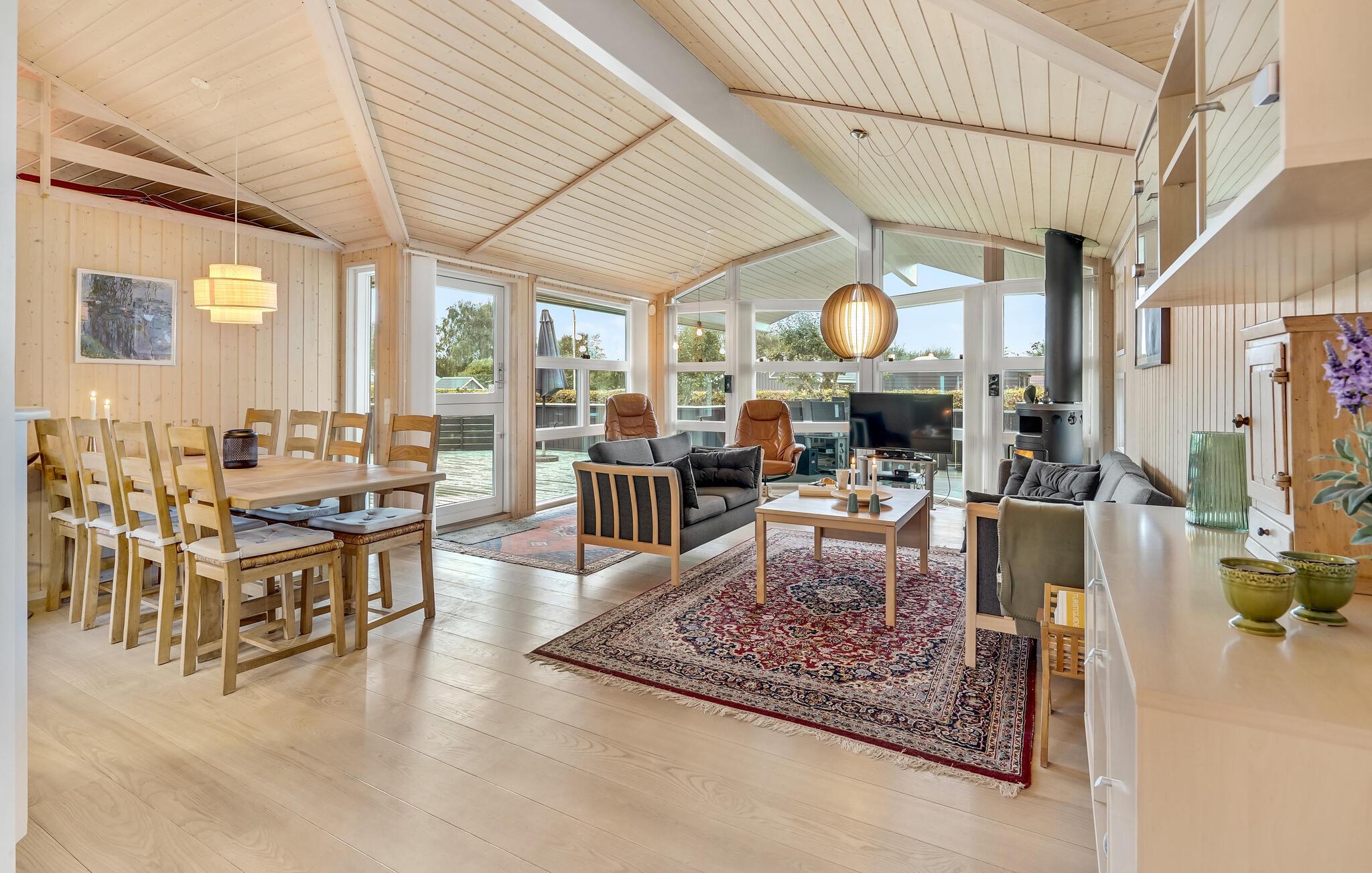 Dit mooie vakantiehuis op Drøsselbjerg Strand nodigt u uit voor een ontspannen vakantie. Hier kunt u zich volledig concentreren op uw uitgebreide familie en gezellige familietijd doorbrengen in de ruime woonkamer. Het grote raam aan de voorkant verlicht de kamer met natuurlijk licht, terwijl de open haard een gezellige warmte verspreidt. Vanaf hier heb je toegang tot het grootste van twee terrassen. De ideale plek om te genieten van de zon of van je vakantiemaaltijden.