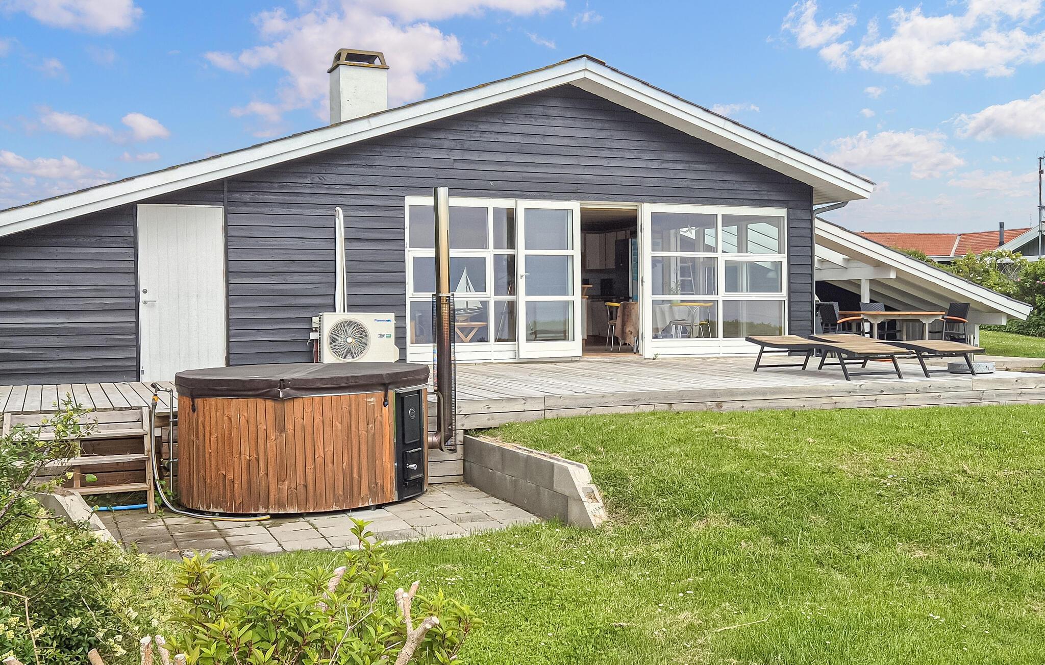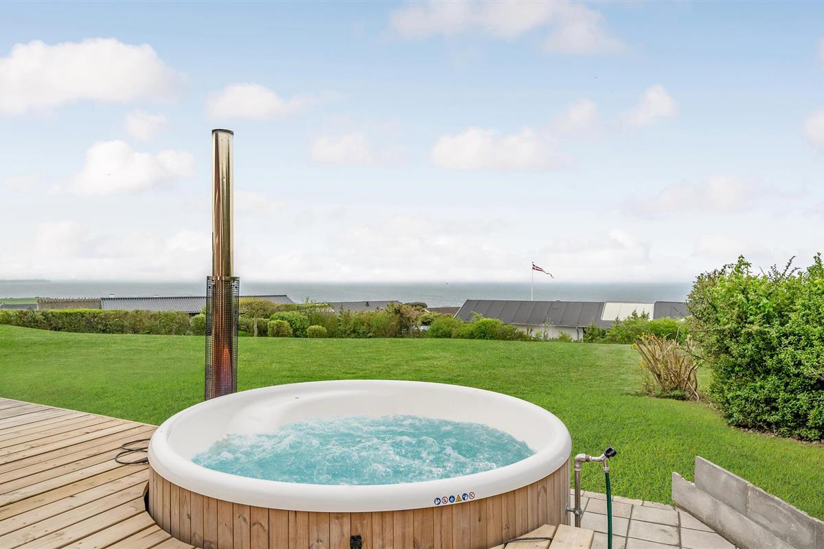 Geniet van een panoramisch uitzicht op de Grote Belt vanuit dit sfeervolle vakantiehuis met hot tub en open terrassen.