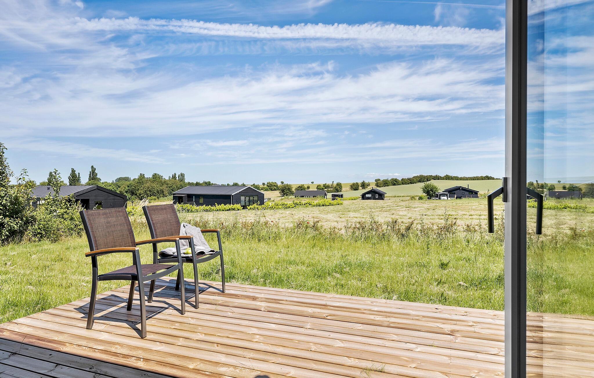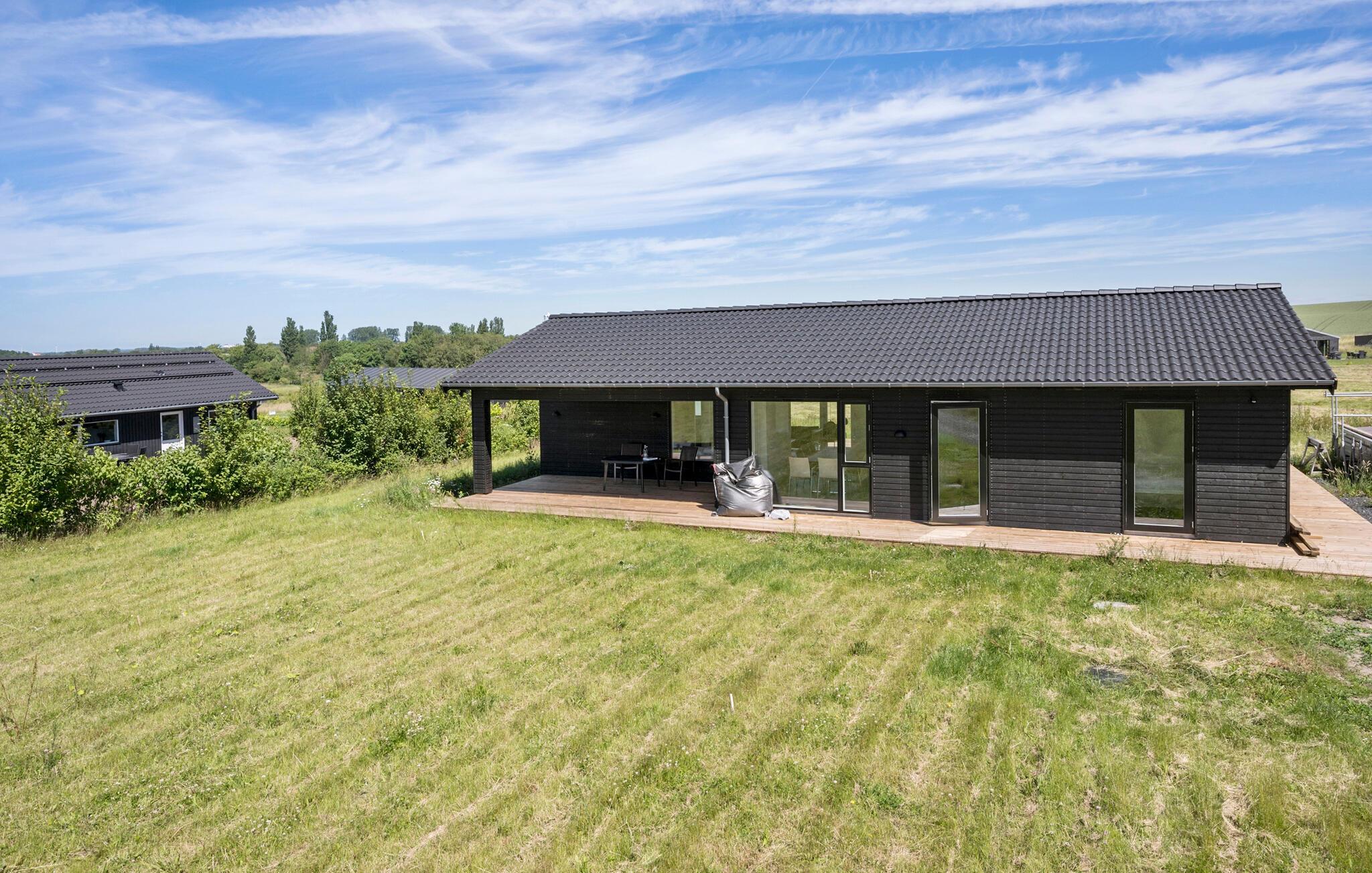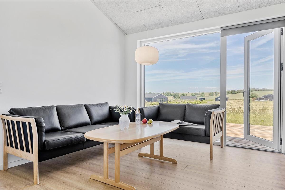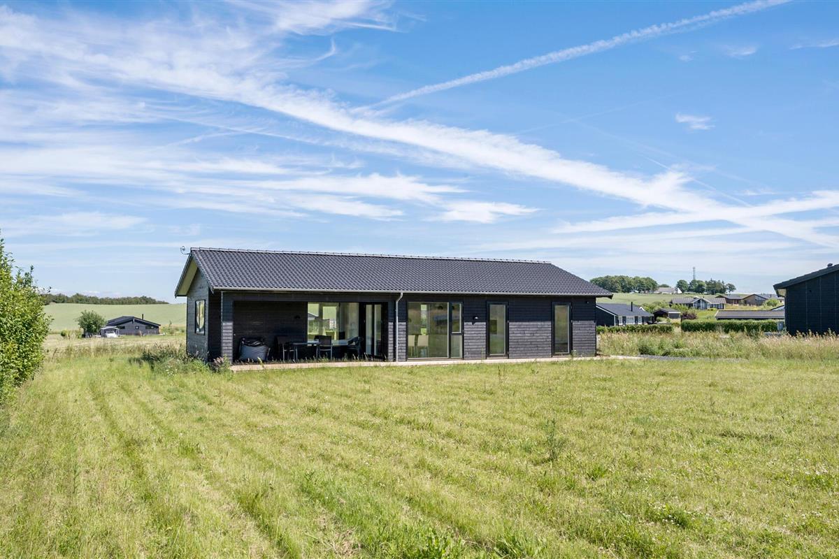 Ontspan in een modern vakantiehuis met prachtig uitzicht en ruime tuin bij Drøsselbjerg strand.