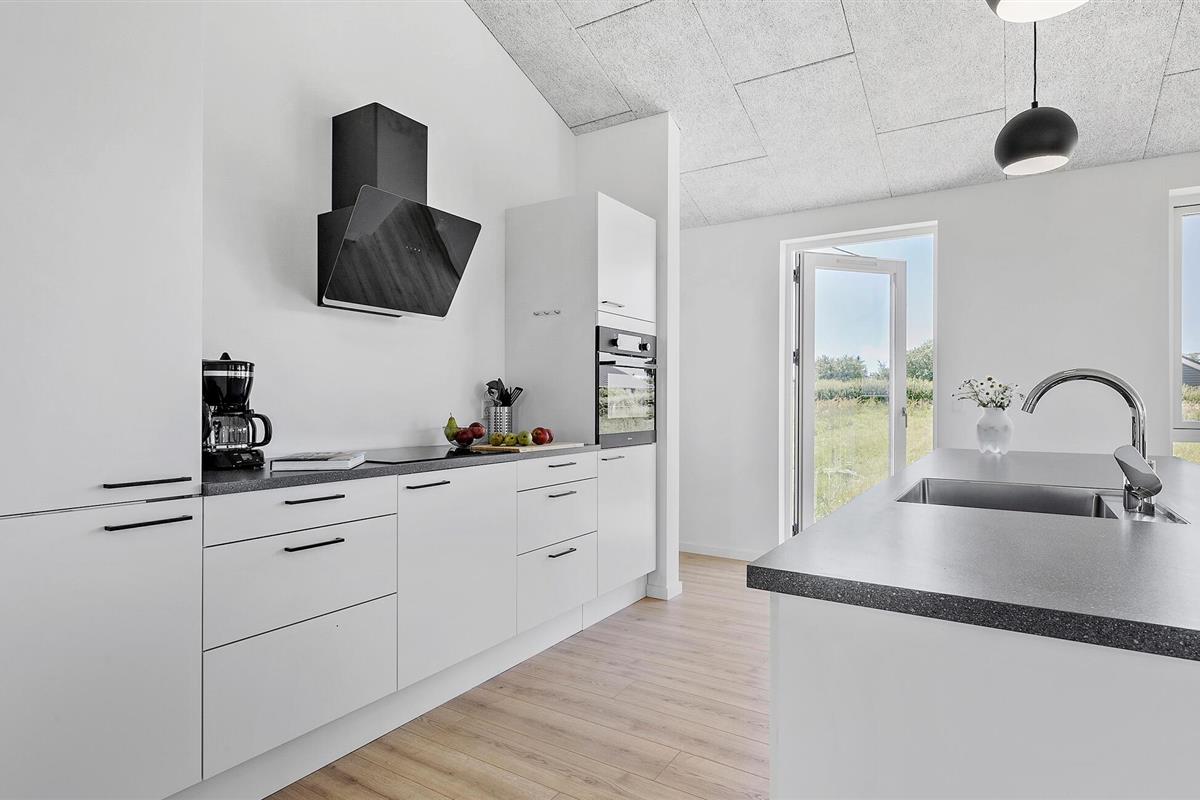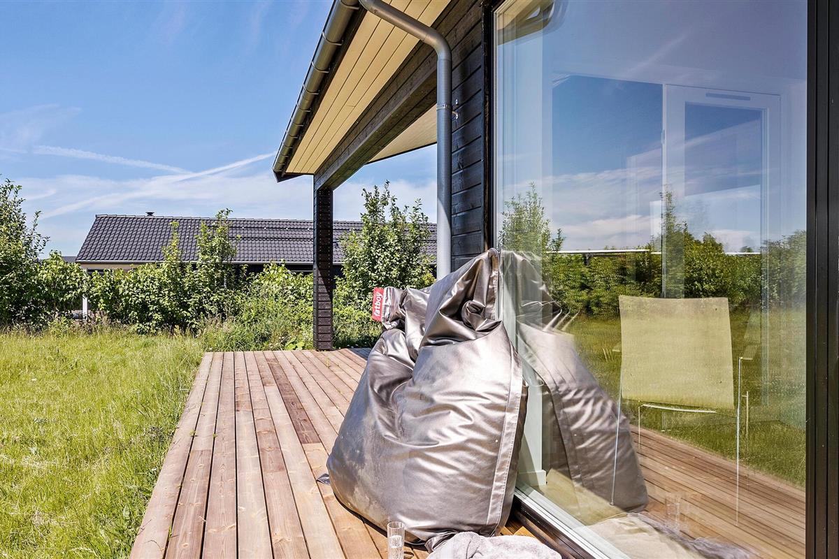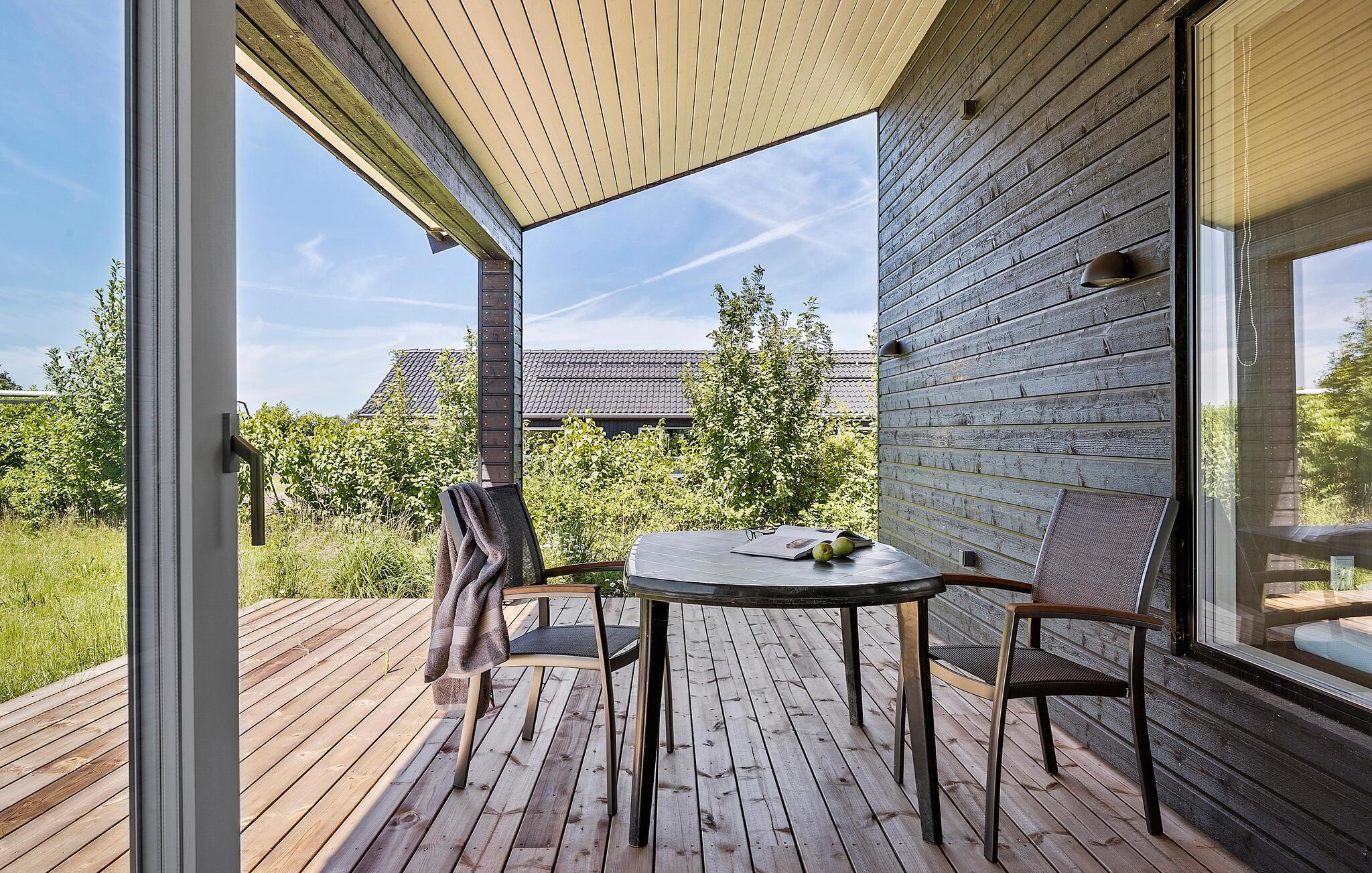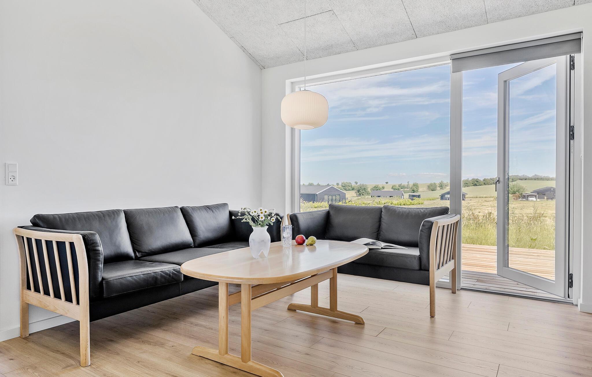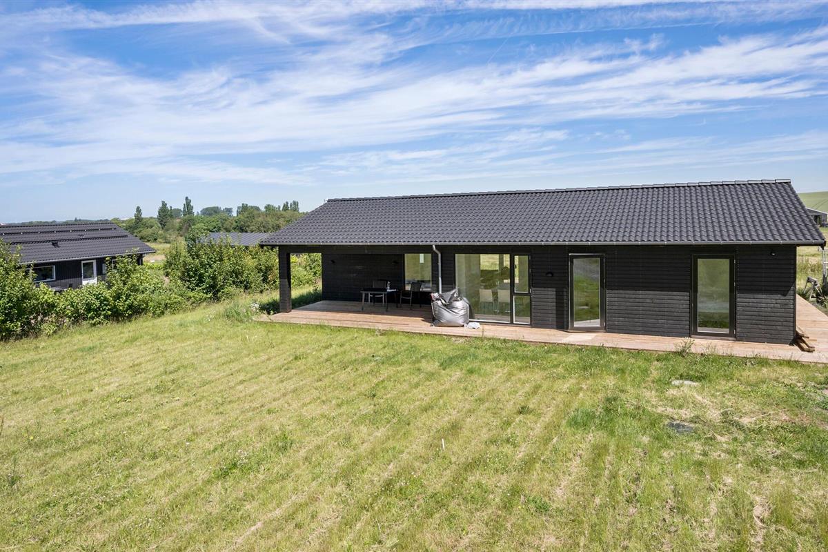 Ontspan in een modern vakantiehuis met prachtig uitzicht en ruime tuin bij Drøsselbjerg strand.