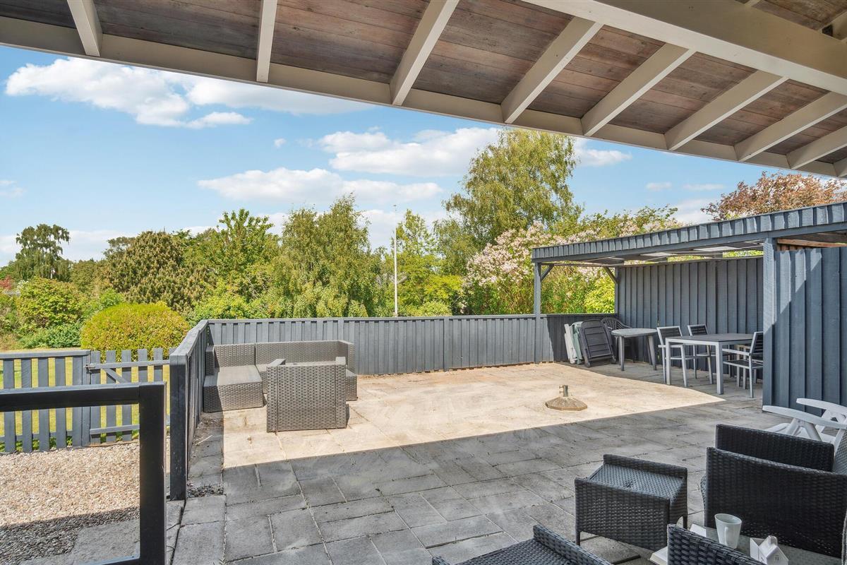 Dit gezellige vakantiehuis met een groot terras verwelkomt je in Drøsselbjerg Strand.