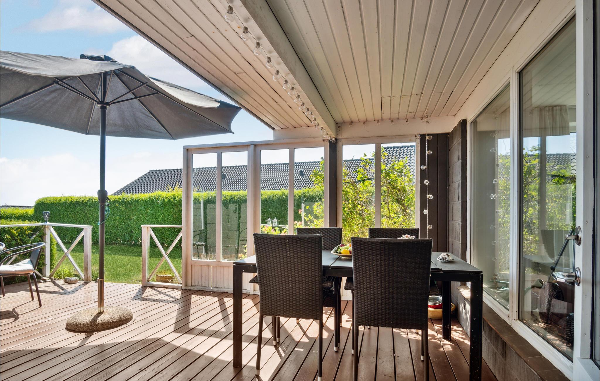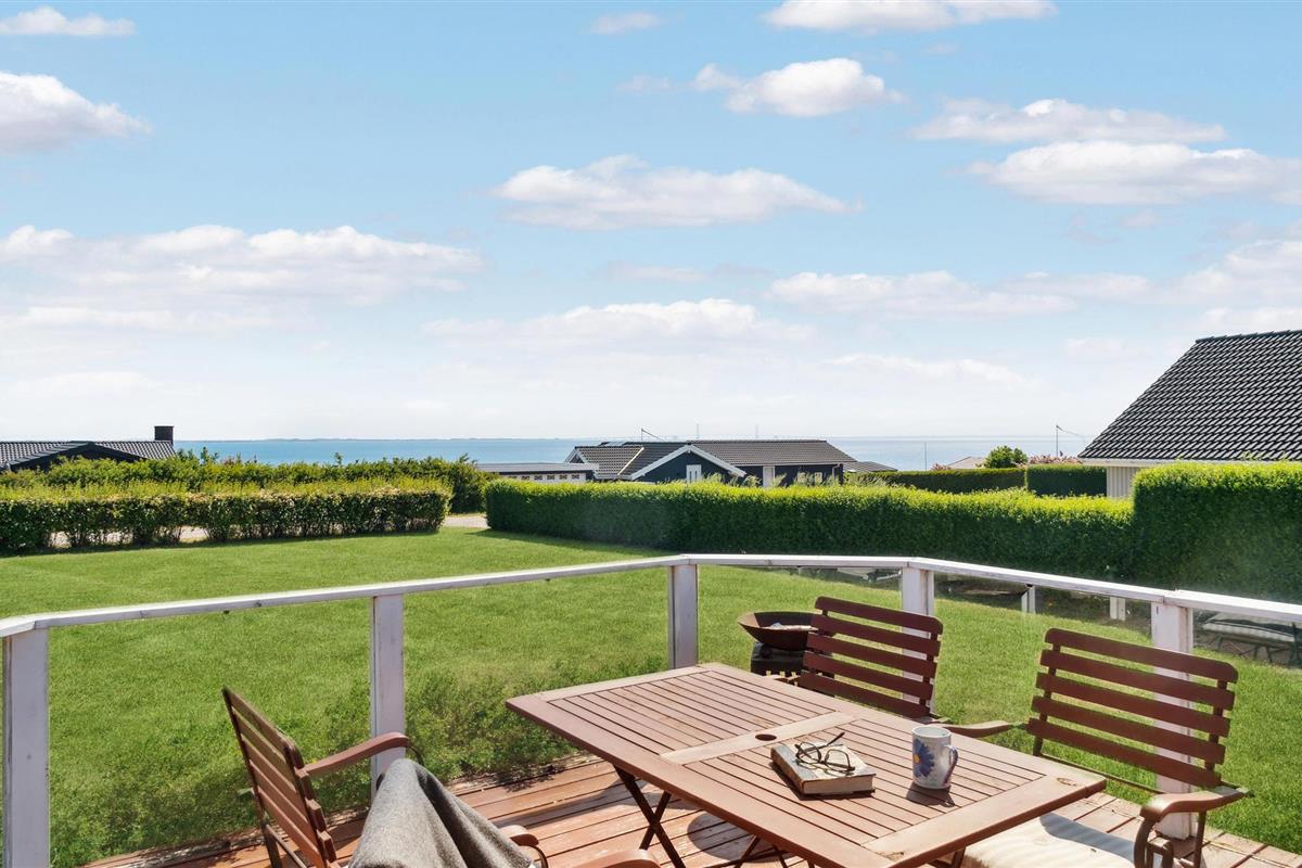 Verheug je op een vakantie in dit uitnodigende vakantiehuis met uitzicht op zee vanaf het terras.