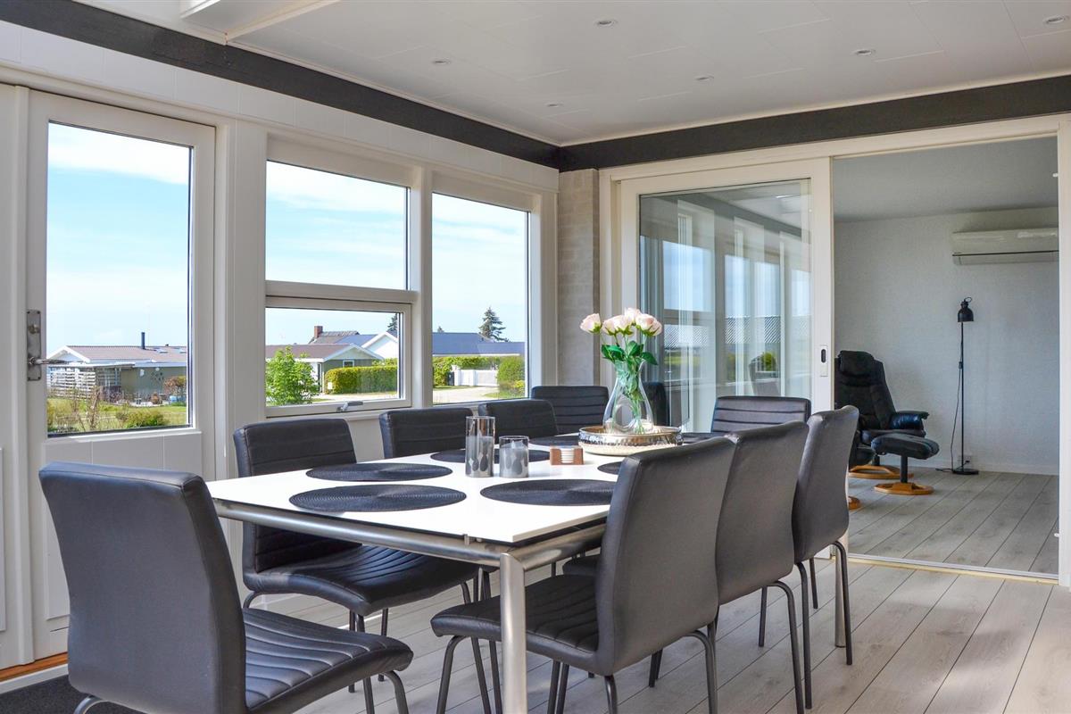 Ruim vakantiehuis in Slagelse met zeezicht, serre en speelvoorzieningen voor kinderen, vlakbij strand en haven.